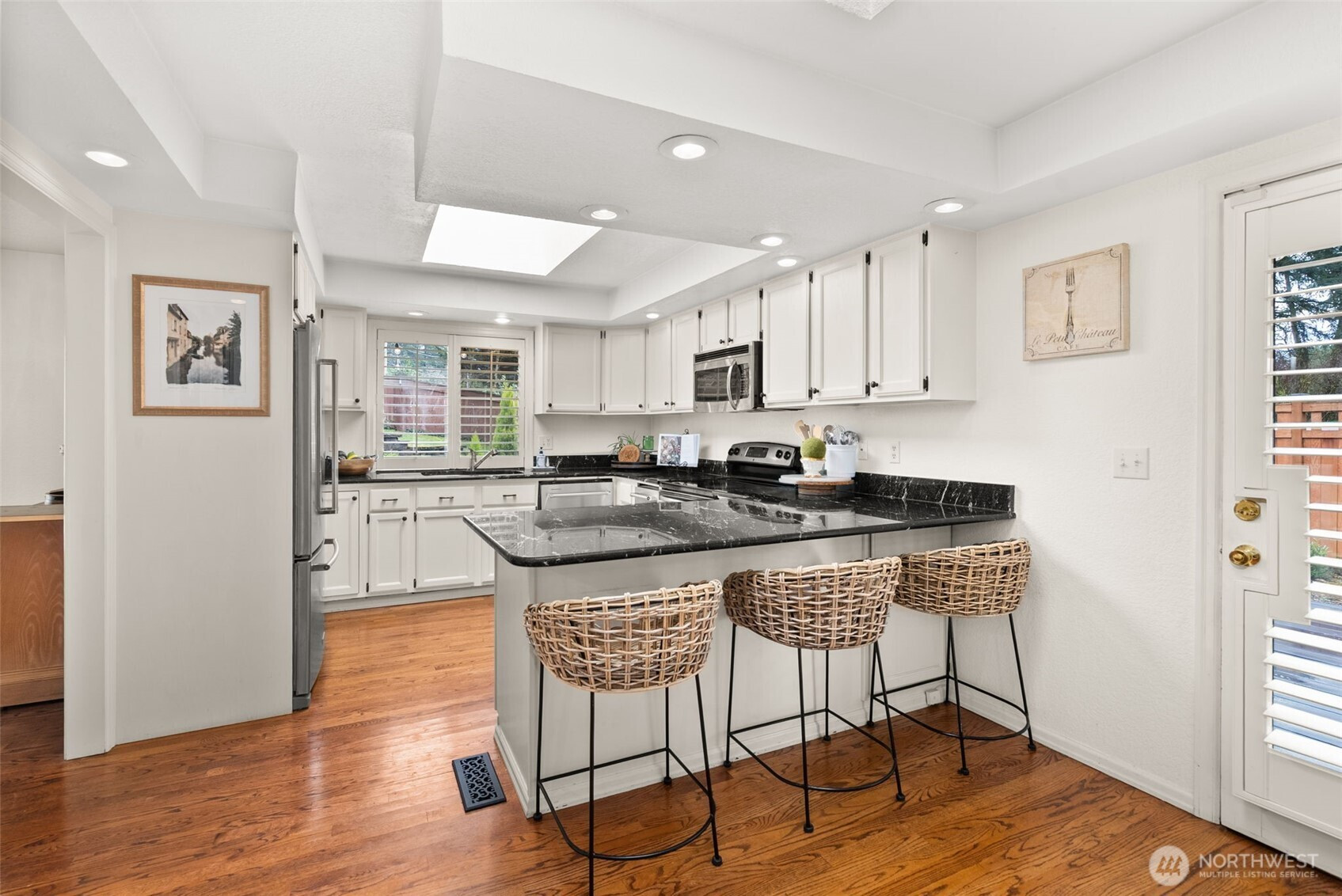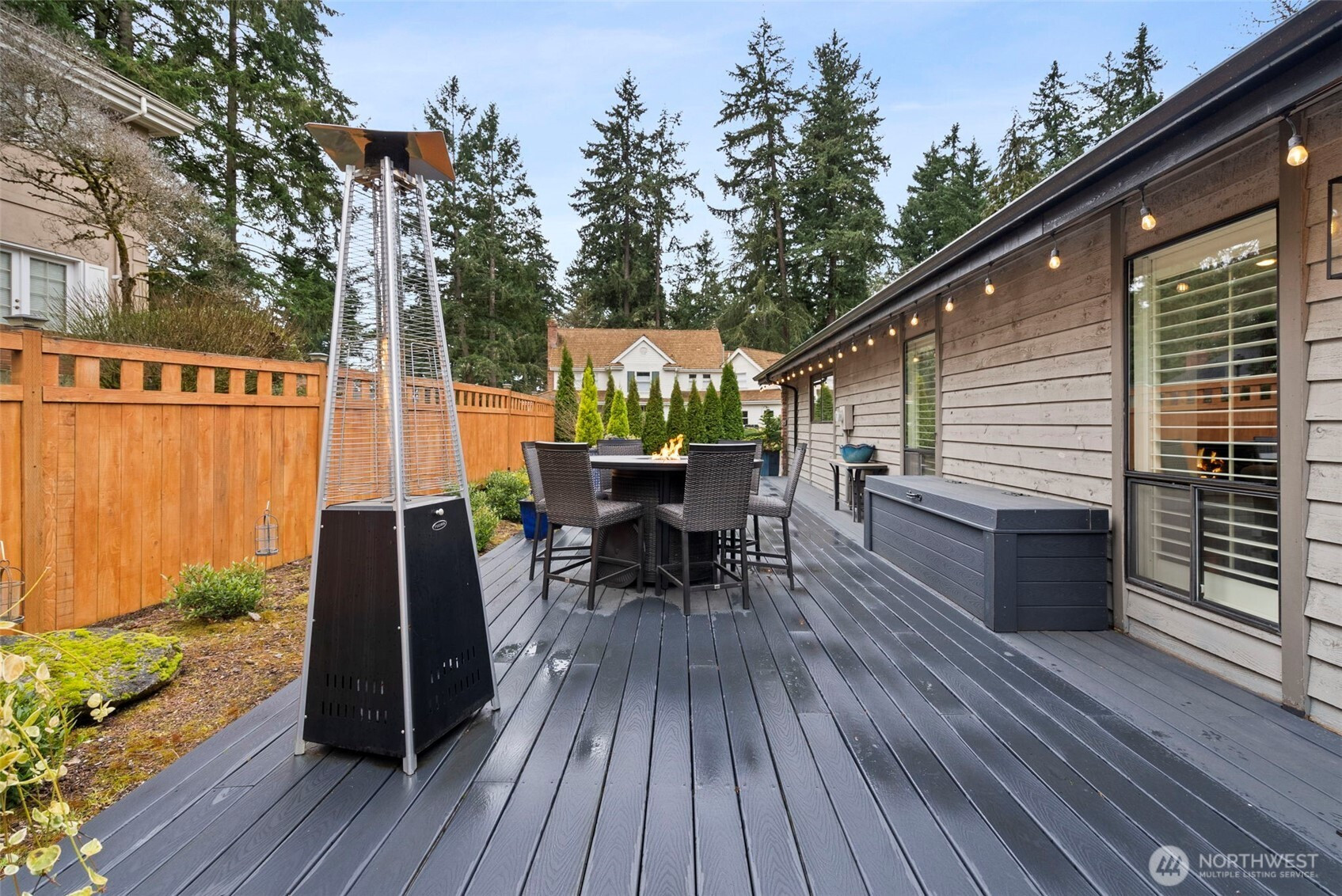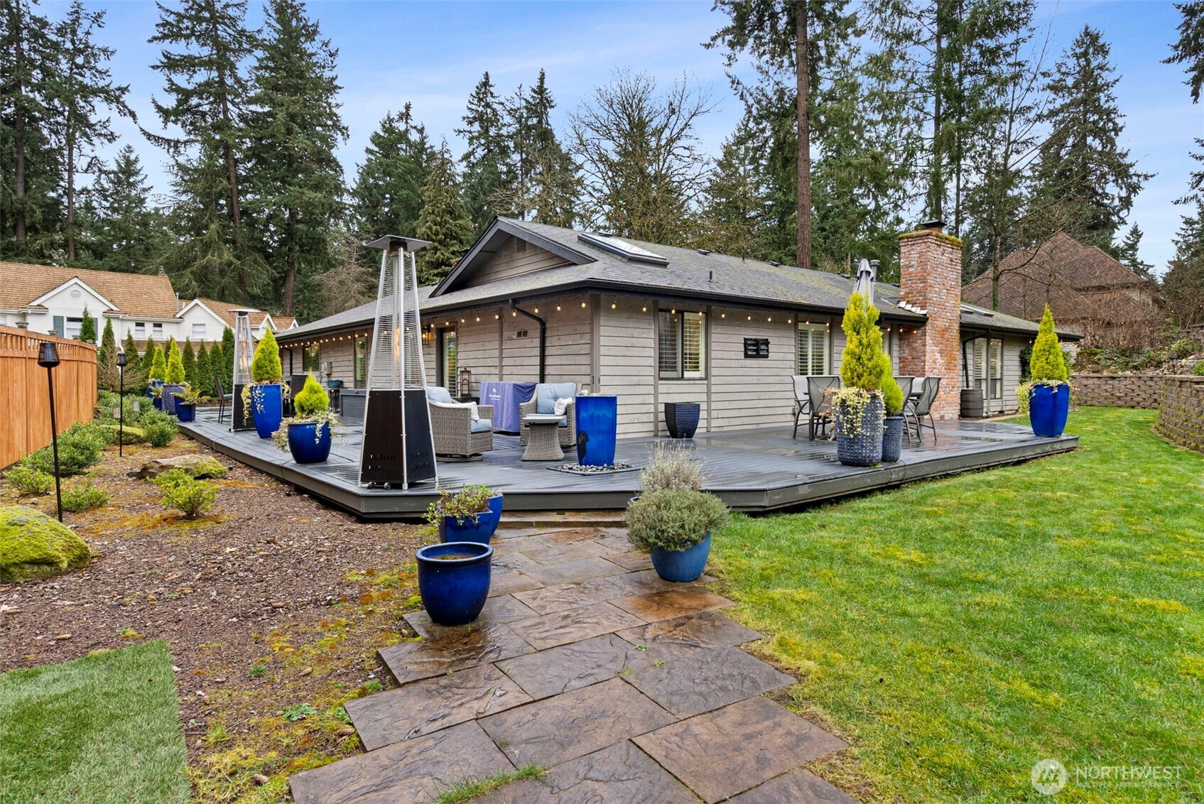 Experience the pinnacle of refined, SINGLE-LEVEL living in the exclusive gated enclave of MADERA. This meticulously maintained residence showcases true one-story functionality paired with sophisticated upgrades and unmistakable pride of ownership. A grand double-door entry welcomes you into a light-filled living room anchored by a charming gas fireplace. The formal dining room flows seamlessly into the heart of the home: an open-concept kitchen featuring brand-new appliances and a versatile "working butler’s pantry" designed as a coffee bar or dedicated workstation.The kitchen overlooks a spacious family room, highlighted by a second cozy gas fireplace with a custom reclaimed beam mantle. The layout is thoughtfully designed with a private bedroom wing. The primary suite serves as a serene retreat, offering views of the rear grounds and an ensuite bath featuring a private sauna with a new heater. Outside, the living spaces are exceptional, boasting an oversized composite deck, a built-in water feature, and a dedicated TV viewing area. The rear yard has been reimagined with custom stone wall, terraces, and fire pit.High-value updates include a 2022 roof, custom shutters, new carpeting, and modern AC. Located moments from the TACOMA COUNTRY AND GOLF CLUB, Town Center, and easy freeway access, Madera offers a unique lifestyle in a secure, private setting. Discover your new lifestyle today.