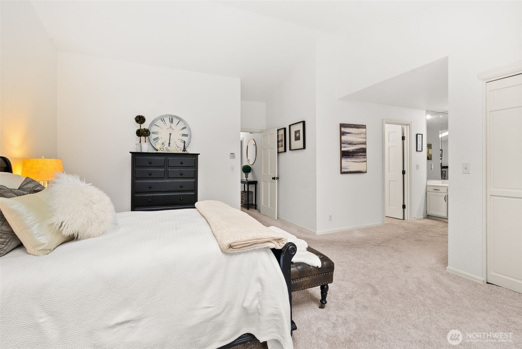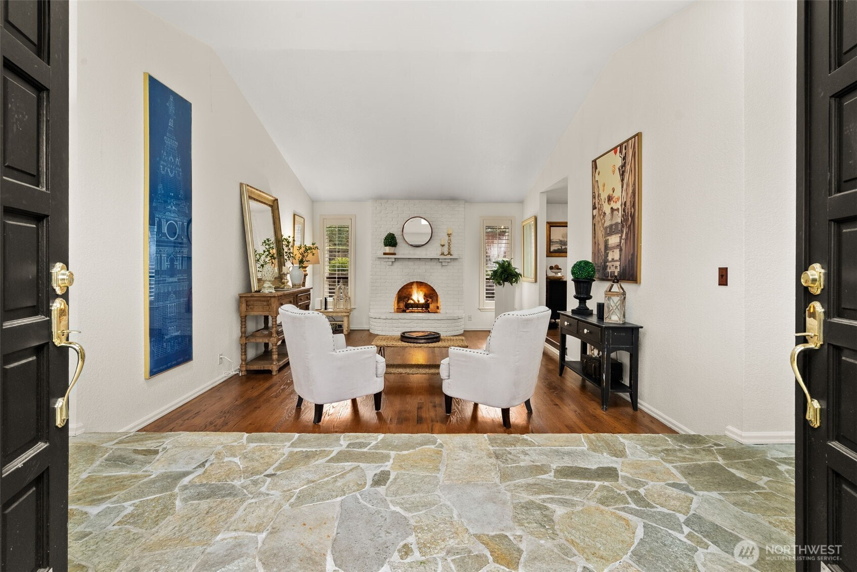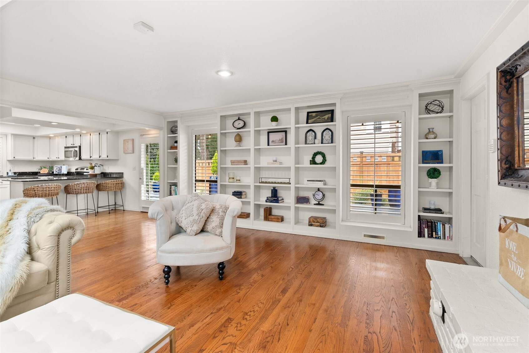 Experience the pinnacle of refined, SINGLE-LEVEL living in the exclusive gated enclave of MADERA. This meticulously maintained residence showcases true one-story functionality paired with sophisticated upgrades and unmistakable pride of ownership. A grand double-door entry welcomes you into a light-filled living room anchored by a charming gas fireplace. The formal dining room flows seamlessly into the heart of the home: an open-concept kitchen featuring brand-new appliances and a versatile "working butler’s pantry" designed as a coffee bar or dedicated workstation.The kitchen overlooks a spacious family room, highlighted by a second cozy gas fireplace with a custom reclaimed beam mantle. The layout is thoughtfully designed with a private bedroom wing. The primary suite serves as a serene retreat, offering views of the rear grounds and an ensuite bath featuring a private sauna with a new heater. Outside, the living spaces are exceptional, boasting an oversized composite deck, a built-in water feature, and a dedicated TV viewing area. The rear yard has been reimagined with custom stone wall, terraces, and fire pit.High-value updates include a 2022 roof, custom shutters, new carpeting, and modern AC. Located moments from the TACOMA COUNTRY AND GOLF CLUB, Town Center, and easy freeway access, Madera offers a unique lifestyle in a secure, private setting. Discover your new lifestyle today.