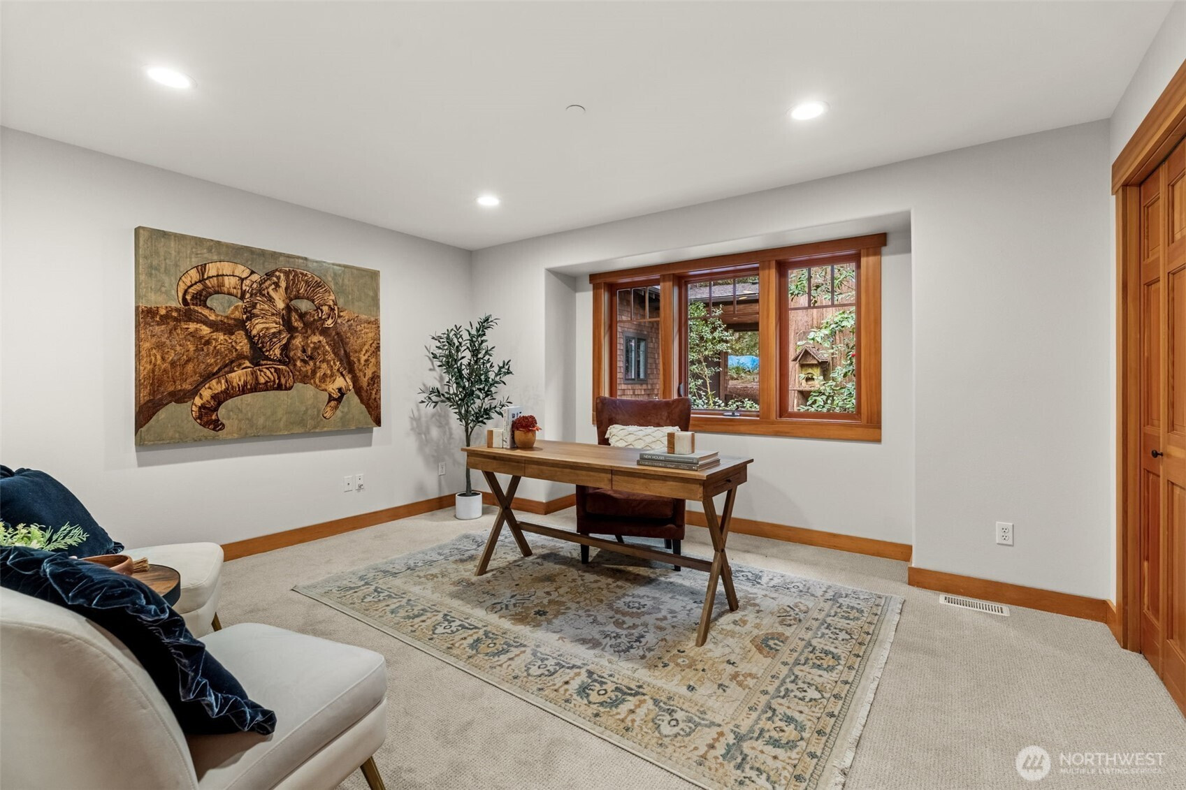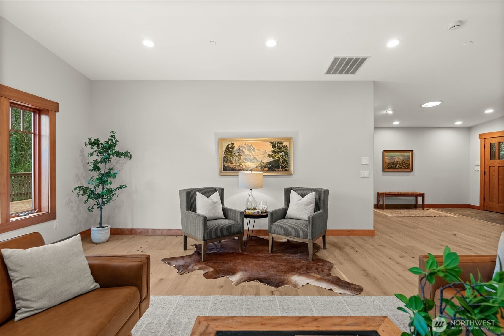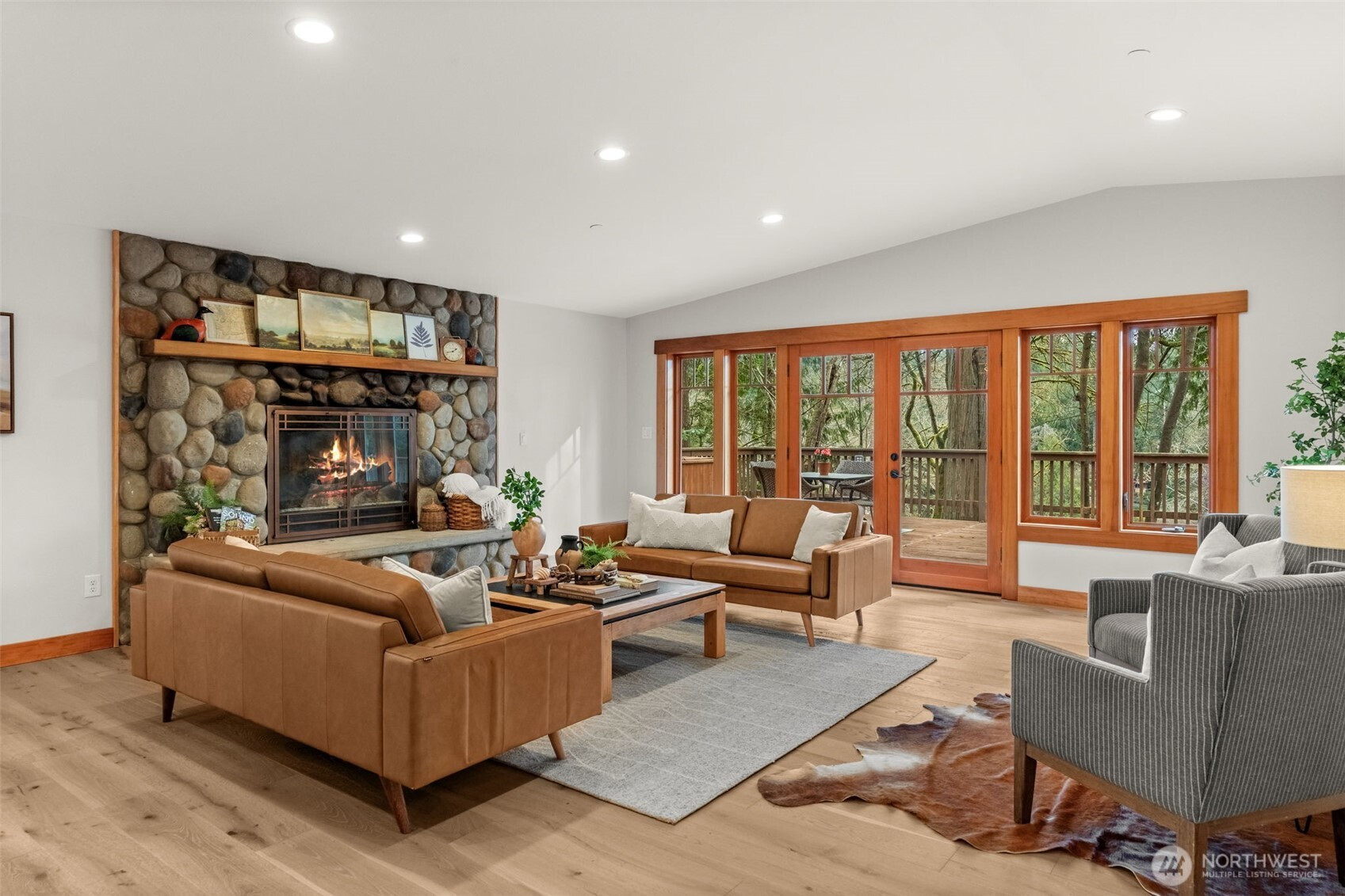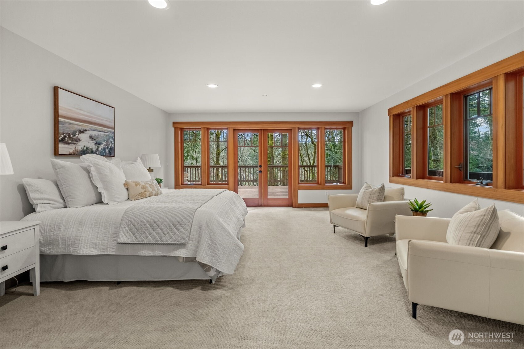 125 feet of high bank waterfront, 1.38 acres, and a fully turnkey home overlooking Minter Bay. Set above the water on 59,939 sq ft of flat, usable land, this property offers space, privacy, and flexibility that’s hard to find in one place. Watch kayakers pass below. Hear resident eagles calling from the trees above. On clear days, Mount Rainier shows up in the distance. It feels quiet and removed, yet you’re still minutes to Gig Harbor and a gateway to the Olympic Peninsula. Morning light over the bay, evenings on the deck, and a steady rhythm of wildlife all around you. The 2,564 sq ft main home features 3 bedrooms and 2 baths with true single-level living. No stairs, wide hallways, and a layout designed for comfort and ease. Inside, handcrafted hickory millwork, Viking appliances, heated bathroom floors, and a spacious mudroom support daily living. New hardwood floors and fresh interior paint keep everything feeling clean and move-in ready. A 2,100 sq ft wraparound deck extends the living space outdoors with views of water and trees from every angle. Detached garage with a fully separate 724 sq ft guest studio for visitors, extended living, or a dedicated workspace, complete with its own kitchen and bath. Plenty of room for a future shop, boat or RV parking, and additional outdoor use. Modern contemporary Pacific Northwest architecture, cedar shake siding, and professional landscaping create a setting that feels like a private retreat.