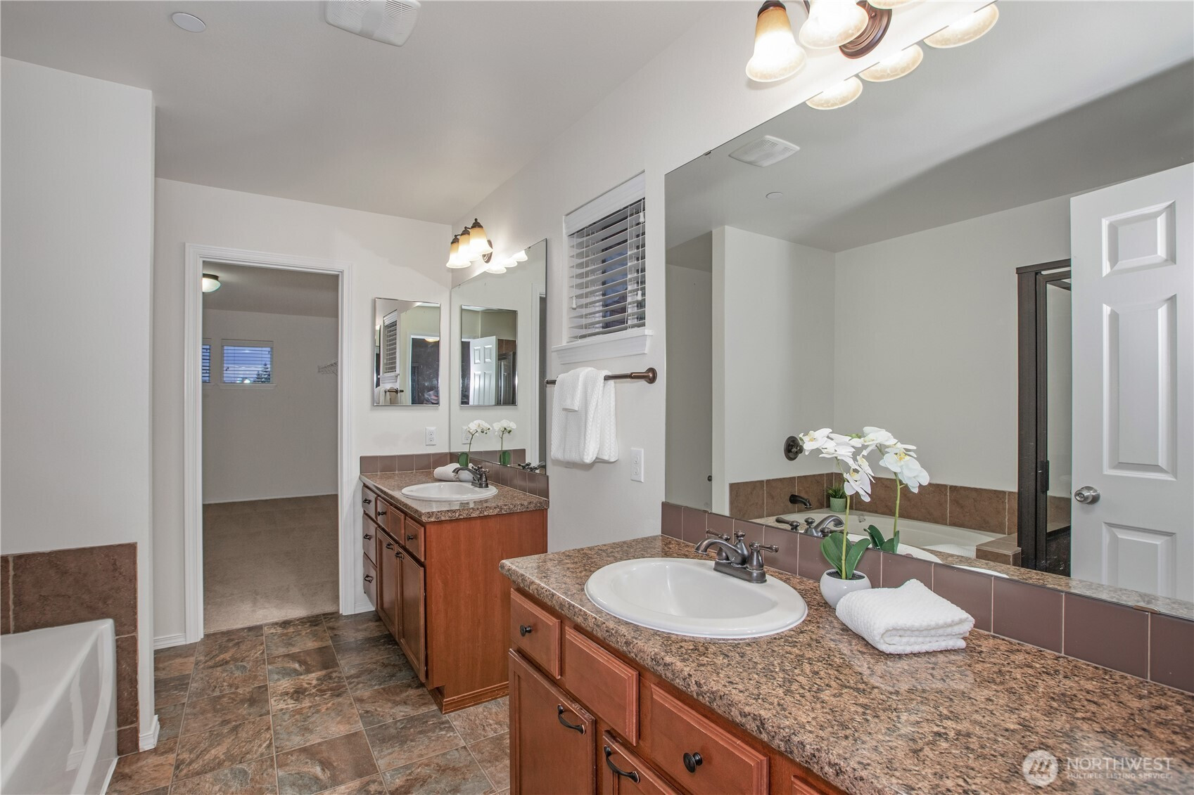 Bright, clean, and ready for everyday living, this home brings the space and flexibility you’re looking for with 4 bedrooms, 3 full baths, and a bonus room perfect for a home office, den, or potential 5th bedroom! White doors and trim, with newer carpet and interior paint, give it a clean, updated feel, while the gas fireplace makes the open living room extra cozy. The kitchen overlooks the backyard and offers granite countertops, tons of cabinets, and perfect dining area. A main-level bedroom and bath add everyday convenience. Two additional bedrooms upstairs (with walk-in closets!), enclosed flex room, and laundry closet upstairs. Unwind in the oversized Primary Suite with five-piece bath and impressive walk-in closet. Out back, enjoy a fully fenced, flat yard with large garden bed, attractive landscaping, and unobstructed PNW views. Don't miss the covered front porch, two car garage, and great location just minutes to local parks, JBLM, and I-5. Welcome Home!