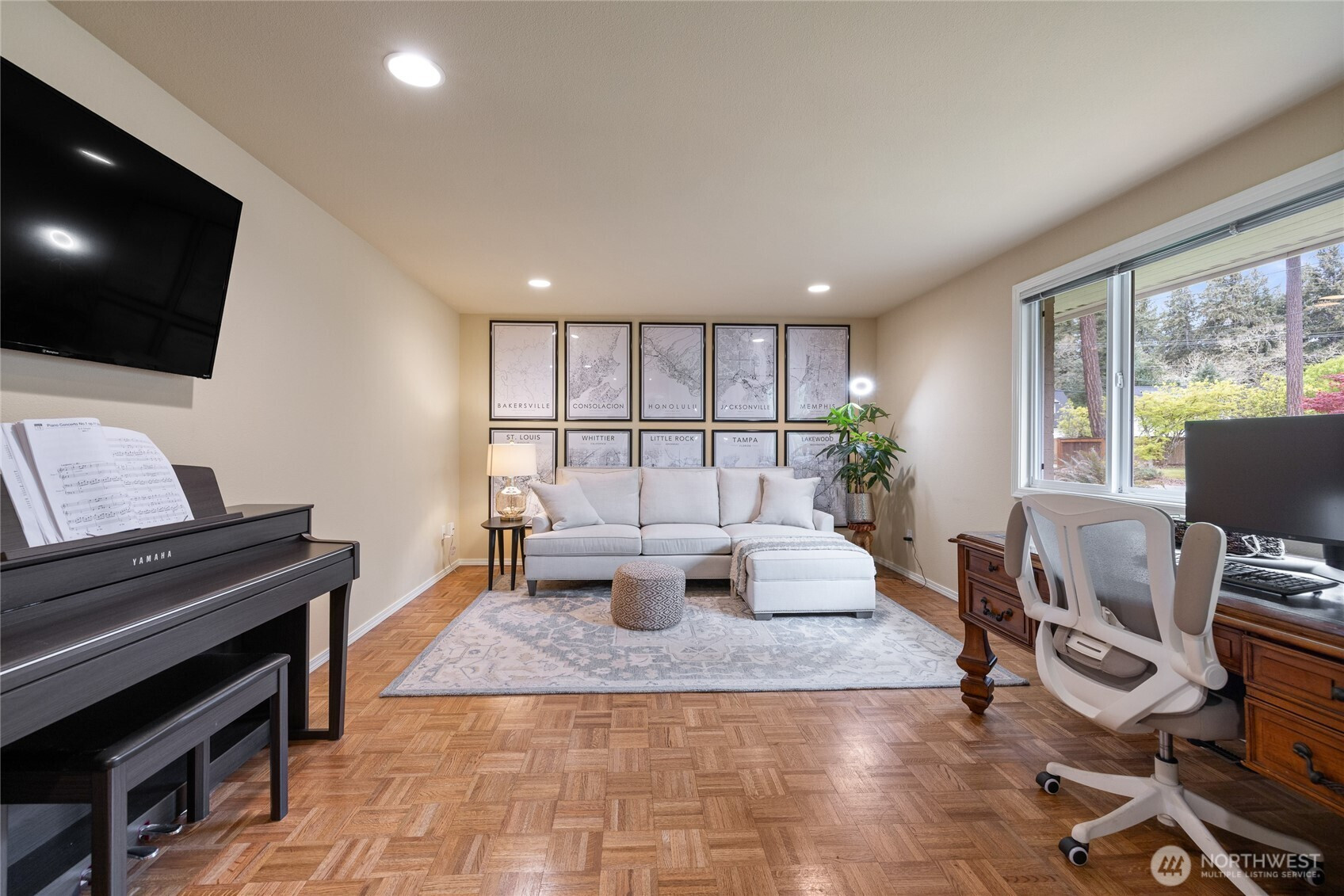 This mid-century modern, 1960's rambler offers timeless character, thoughtfully updated through the years keeping the charm and integrity of this beautiful design. The home is light and bright with plenty of windows, elegant skylights, and a welcoming and open floorplan. From the spacious layout, to the stylish and useful built-ins throughout the home, there is something to appreciate and love at every turn. Both living areas offer a gas fireplace, adding to the warmth and charm of this home. Primary bedroom is large, bright and spacious and offers plenty of closet space, 5-piece en-suite and sliding glass door to your back porch to enjoy quiet evenings. Connected to the 2-car garage is a bonus room - perfect for a home office, storage or guests. New 40-year roof installed in 2024 will give you piece of mind for years to come. The location cannot be beat! Quiet area, but close to I-5 for a quick commute to JBLM, Tacoma, Olympia, and more. This property is on over half an acre and has mature landscaping making you feel connected to nature with the serene trees, shrubs, beautiful flowers and singing birds all around you. Driveway is oversized and affords ample parking for cars, trucks, boat/RV. This is a must-see in person to appreciate all the charm this home has to offer.