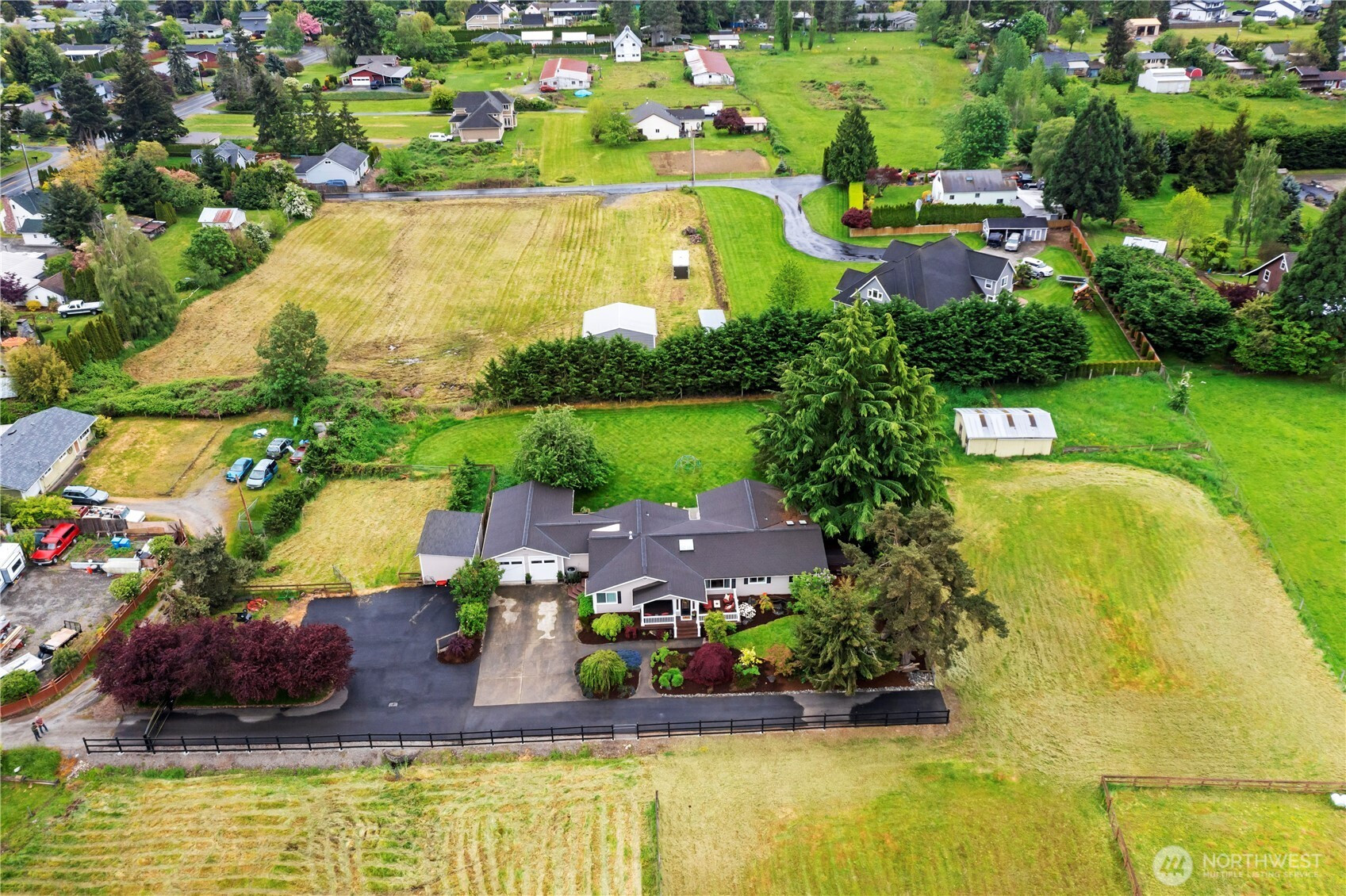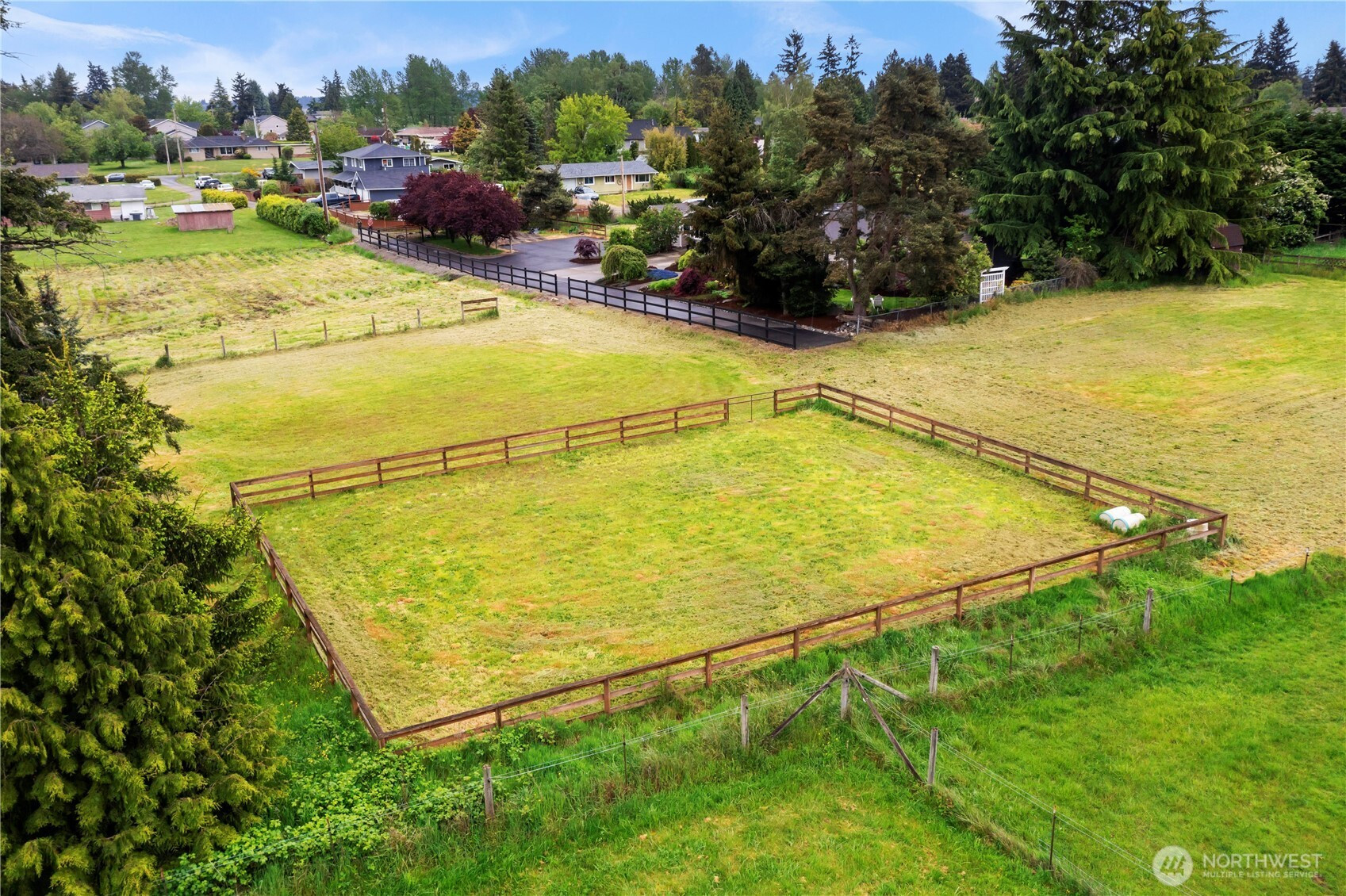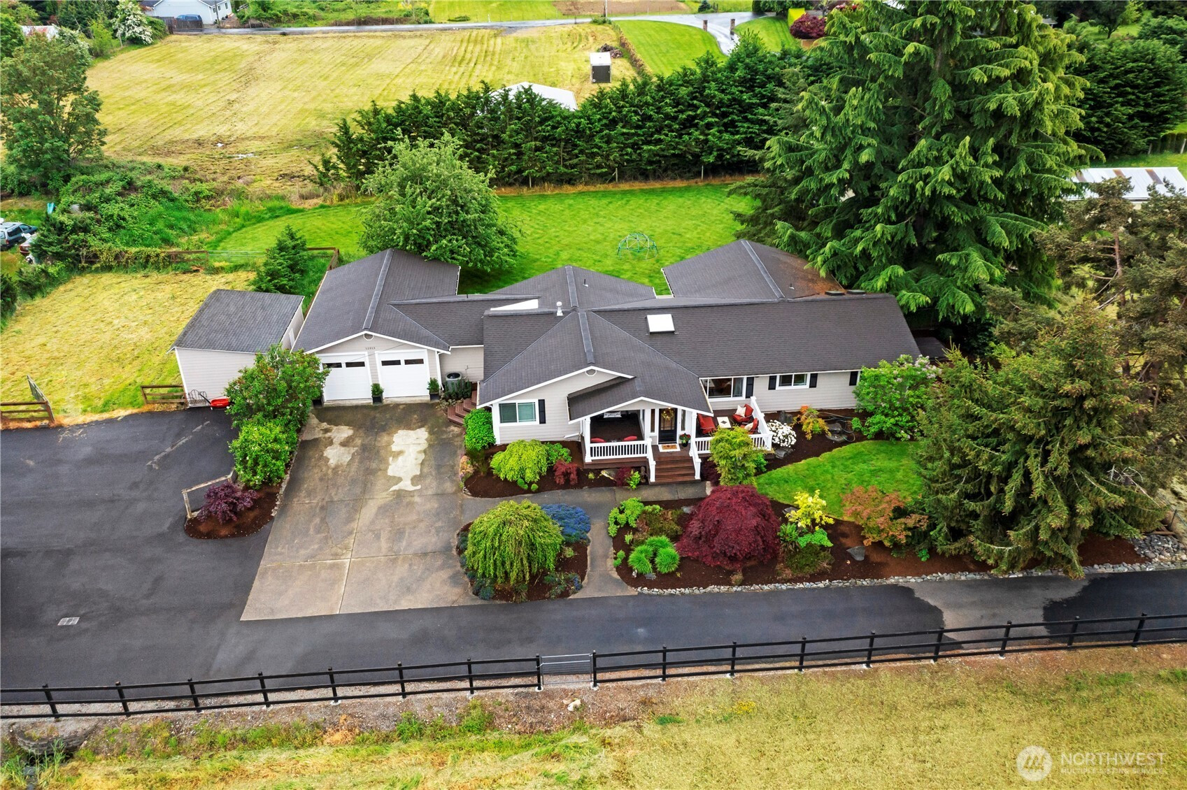 Welcome to this secluded estate priced at appraisal value in the heart of Edgewood, privately set on 2.5 serene acres with sweeping pastoral views. A rare blend of refined comfort and country elegance, this updated rambler offers an elevated lifestyle surrounded by natural beauty. Designed for effortless entertaining, the home features a grand great room, billiards lounge, multiple indoor and outdoor gathering spaces, and expansive decks that invite you to take in the peaceful landscape. A custom stone fireplace anchors the living space, while the updated kitchen and spacious dining area create a warm and inviting flow. The primary suite is a private retreat, complete with walk-in closets, a spa-inspired bath, and French doors opening to a secluded deck overlooking open farmland. A second private-entry suite offers flexibility for guests, multigenerational living, along with a private office. Spacious flex room ideal for home gym or studio. Equestrian enthusiasts will appreciate the two barns with three stalls, an outdoor arena, and ample room to add a shop or adu. A 1,000 sq ft covered patio provides the perfect setting for year-round entertaining. Gated entry, mature landscaping, and generous parking complete this exceptional offering. Ideally located in desirable Edgewood with convenient access for commuting and nightly regarded Puyallup schools. This is Northwest living at its finest.