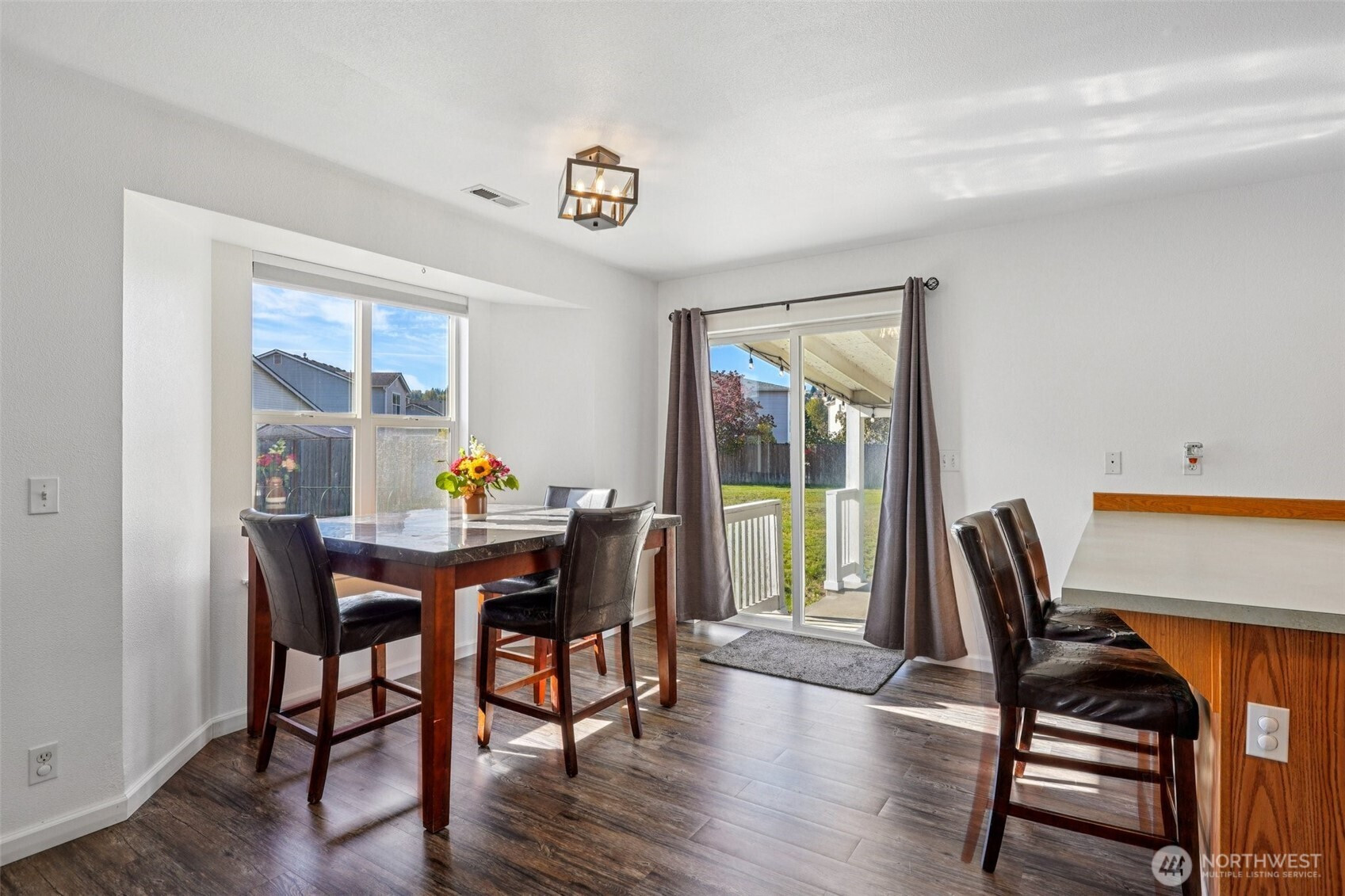 Charming 1-story home in Village Green on one of the largest lots in the community! Nicely updated, this terrific home offers a generous living rm w/custom accent wall, stylish fireplace, beautiful flooring & great natural light. Dining rm is open to the spacious kitchen with breakfast bar, lots of cabinets & walk-in pantry/utility room. Primary BR w/walk-in closet & private en-suite BA. Open floorplan has great flow for everyday living & entertaining. Partial views of Mt Rainier. Enjoy year-round outdoor living with oversized covered patio! Fresh interior paint, new flooring & roof. Huge backyard w/space for all the outdoor fun, gardening & Fido to run & play. RV parking inside the fence. Near community park & Orting Trail. Welcome home!
