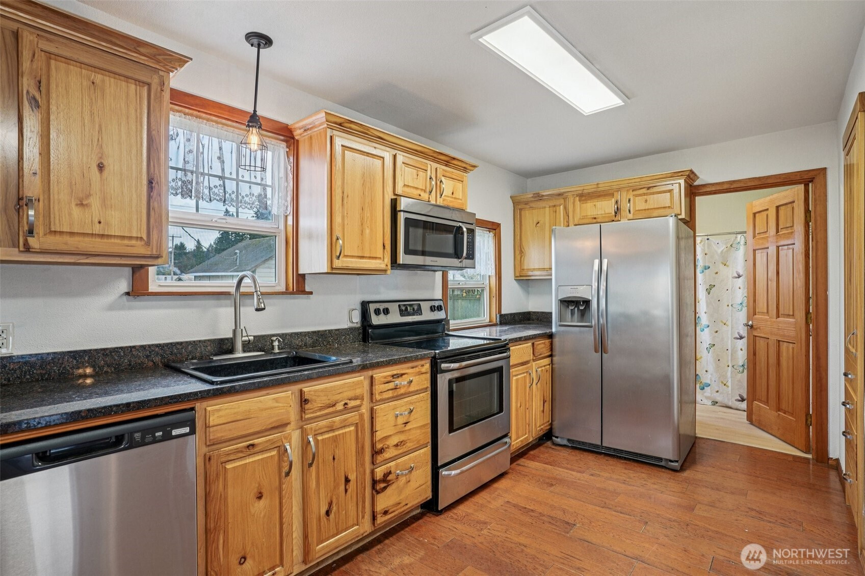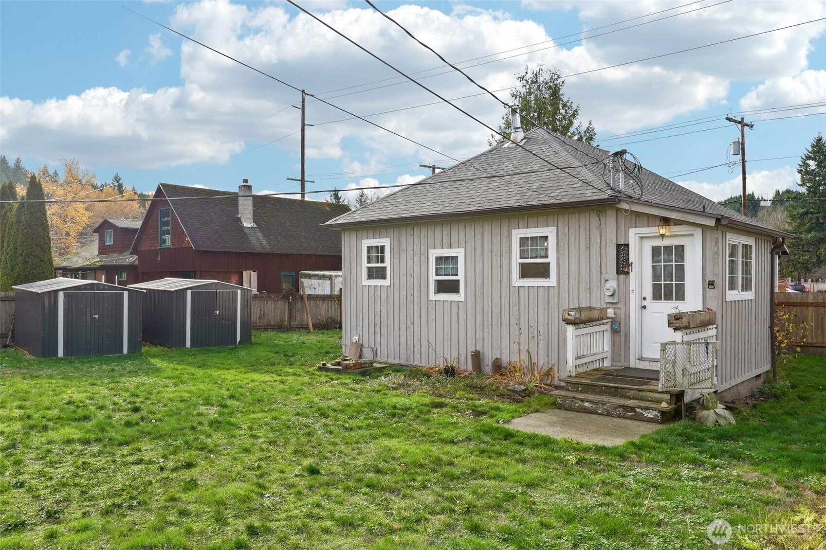 Discover comfort and small-town charm in this cozy Carbonado home. This 2-bedroom, 1-bath home features a bright living area that flows into the dining space and kitchen, creating easy setup for daily living and gatherings. Outside, the fully fenced yard includes garden space, a spacious detached garage/shop and two smaller metal sheds. Recent upgrades include brand new dishwasher installed, new mini split system in 2025, new roof in 2022 and new water heater in 2020. Located near the highly sought-after historical Carbonado School, this home offers both convenience and community appeal.