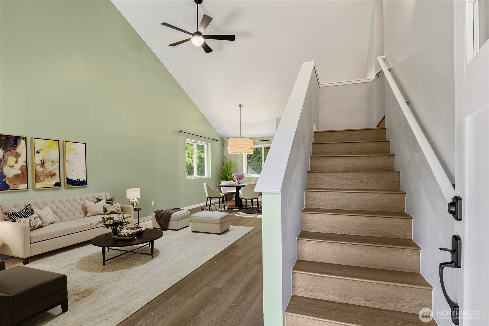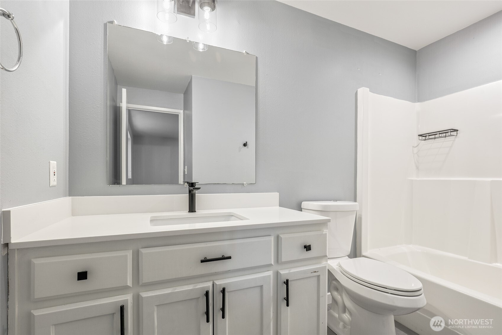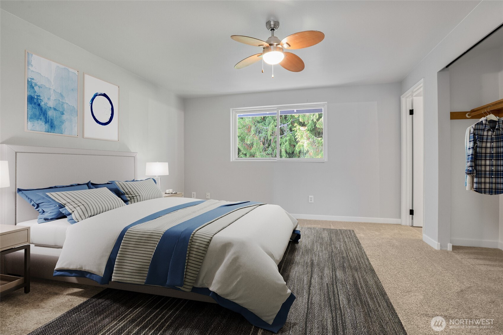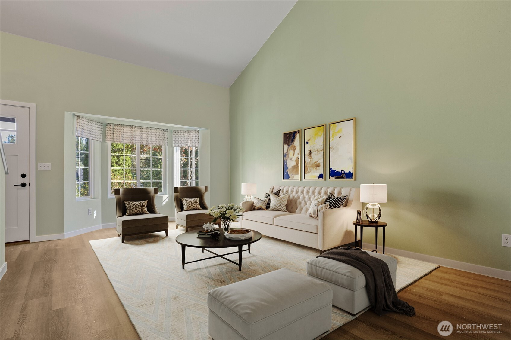 Welcome to this well-maintained Bonney Lake 2-story home on a large corner lot. On the main level you’ll enjoy the bright living & dining rooms with vaulted ceilings, kitchen & family room with backyard deck access, perfect for indoor/outdoor entertaining. Half bath & laundry in the mud room connecting to the garage entry. Upstairs, you’ll find the primary suite with private bath, two additional bedrooms & hall bath. Enjoy the large, fenced back yard with mature landscaping, backing to a greenbelt for added privacy. The two-car garage & extended driveway offers plenty of space for all your toys. Close to Bonney Lake amenities, your private retreat awaits!