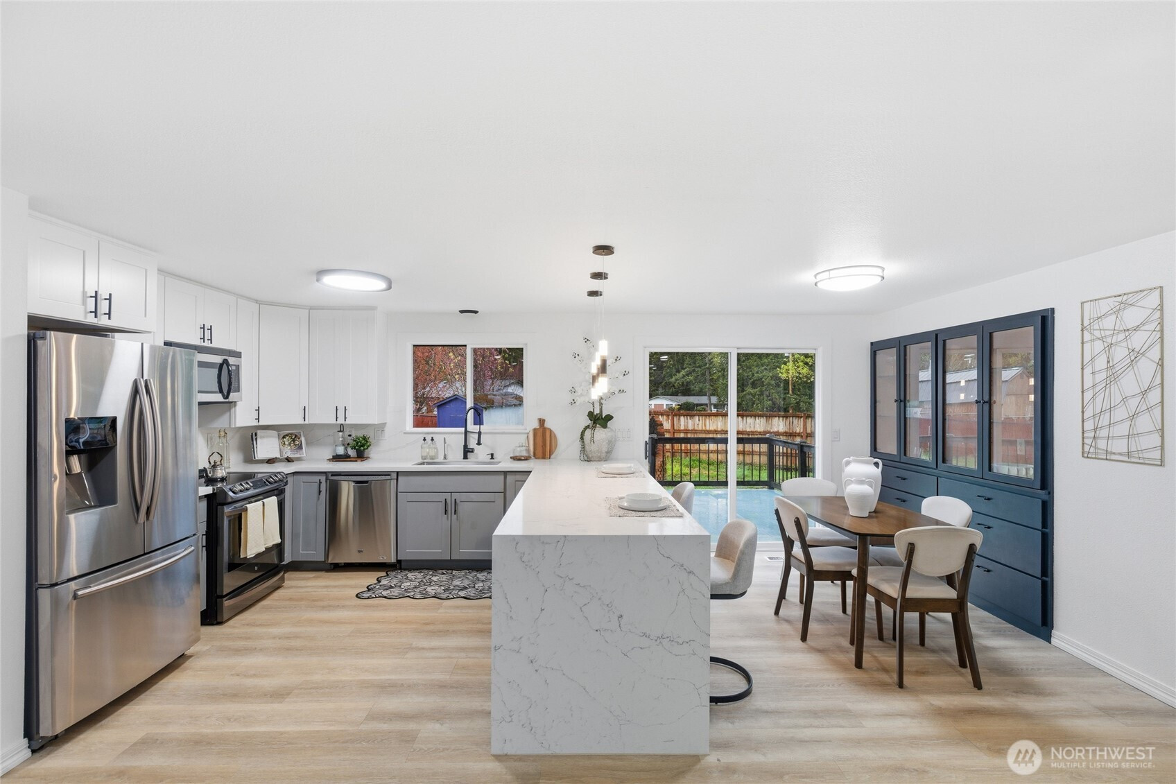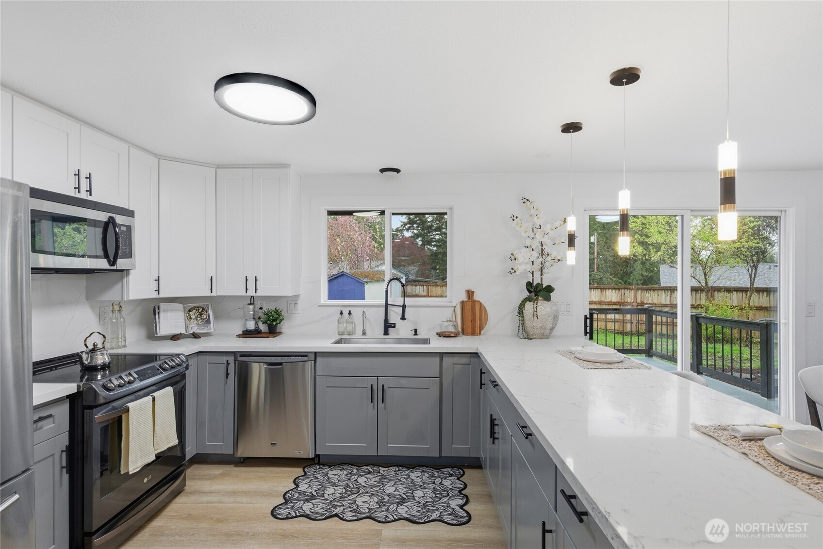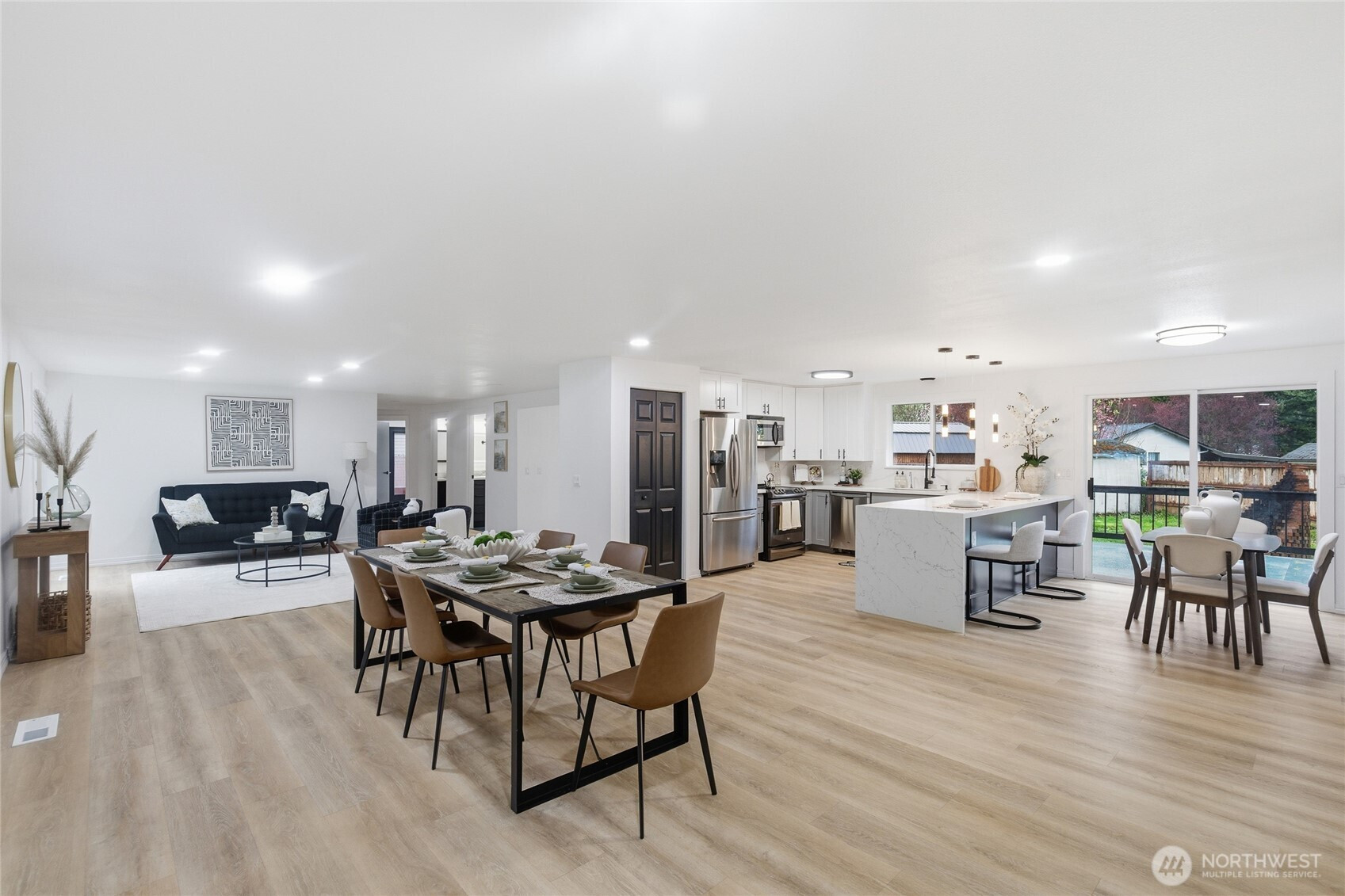 Spacious and versatile, this beautifully maintained 5-bedroom, plus bonus, 4-bath home offers an open-concept layout filled with abundant natural light throughout. The stunning kitchen features an oversized infinity breakfast island, perfect for everyday living and entertaining. The primary rooms showcase elegant French doors, while the beautifully designed black-and-white bathrooms add a modern, timeless touch. With potential for multi-generational living, this home provides flexibility and comfort for any lifestyle. Enjoy a large yard, expansive deck, and oversized patio ideal for gatherings plus plenty of parking, RV space, and a detached garage with bonus space for a workshop or entertainment. Featuring a new roof and a prime location near freeway access, shopping, and great schools, this home truly has it all.