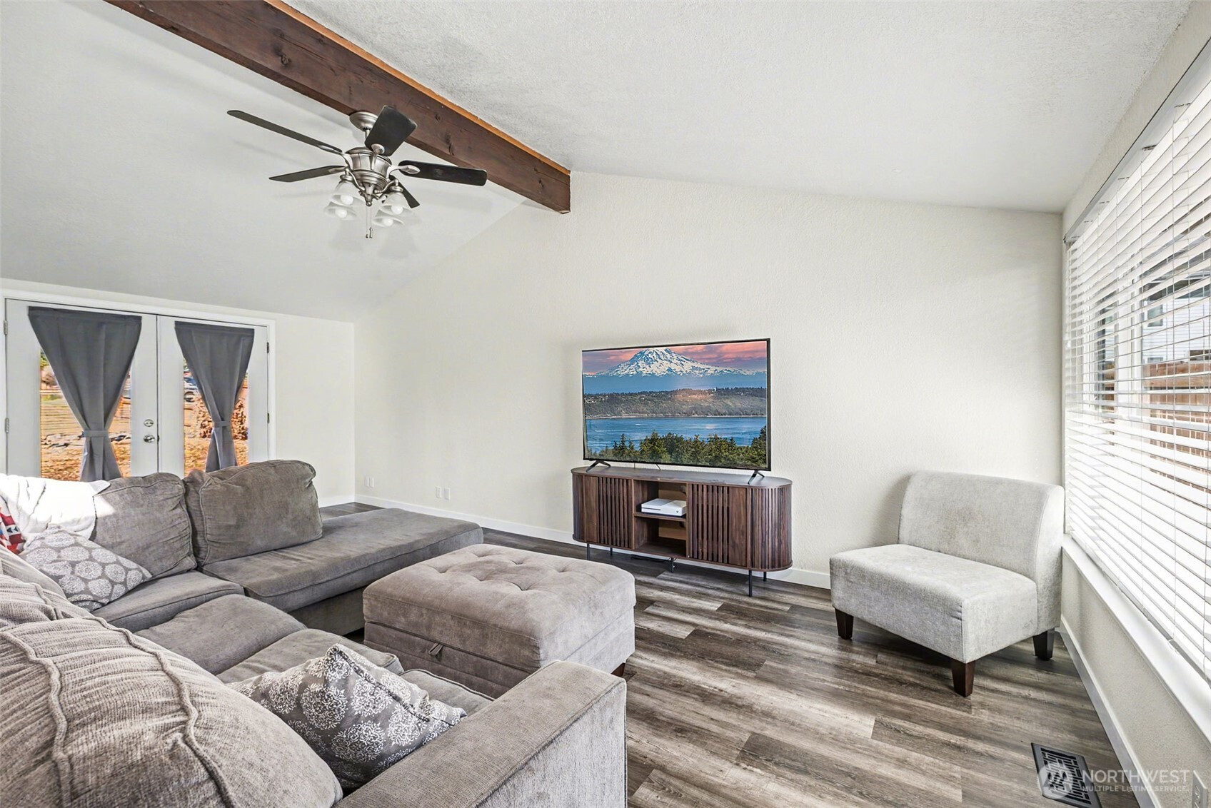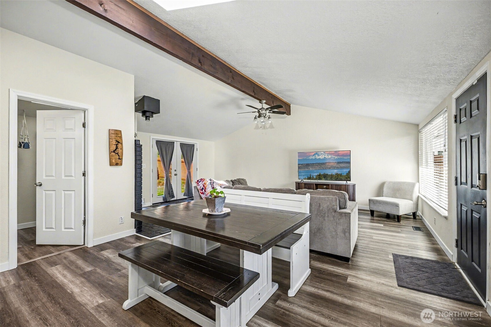 Welcome home to this thoughtfully maintained 3 bedroom, 1.5 bath rambler on a spacious corner lot just under 1/3 acre in desirable Puyallup. This single-level home welcomes you with a cozy living room with fireplace. A functional kitchen with ample storage and a practical, flowing layout. The home flows right into a grand dining and second living area with vaulted ceilings, skylights and plenty of natural light. Enjoy generous outdoor space with room for RV parking, boat storage, or extra vehicles. A private back deck off of one side of the living area and a wide open yard outside of the other. The level lot offers flexibility for gardening, entertaining, and/or future improvements. Enjoy the convenient location near shopping, dining, schools, the Mel Korum Family Y and major commuter routes. A great opportunity for those seeking space, natural light, versatility, and comfort in a desirable area of town.