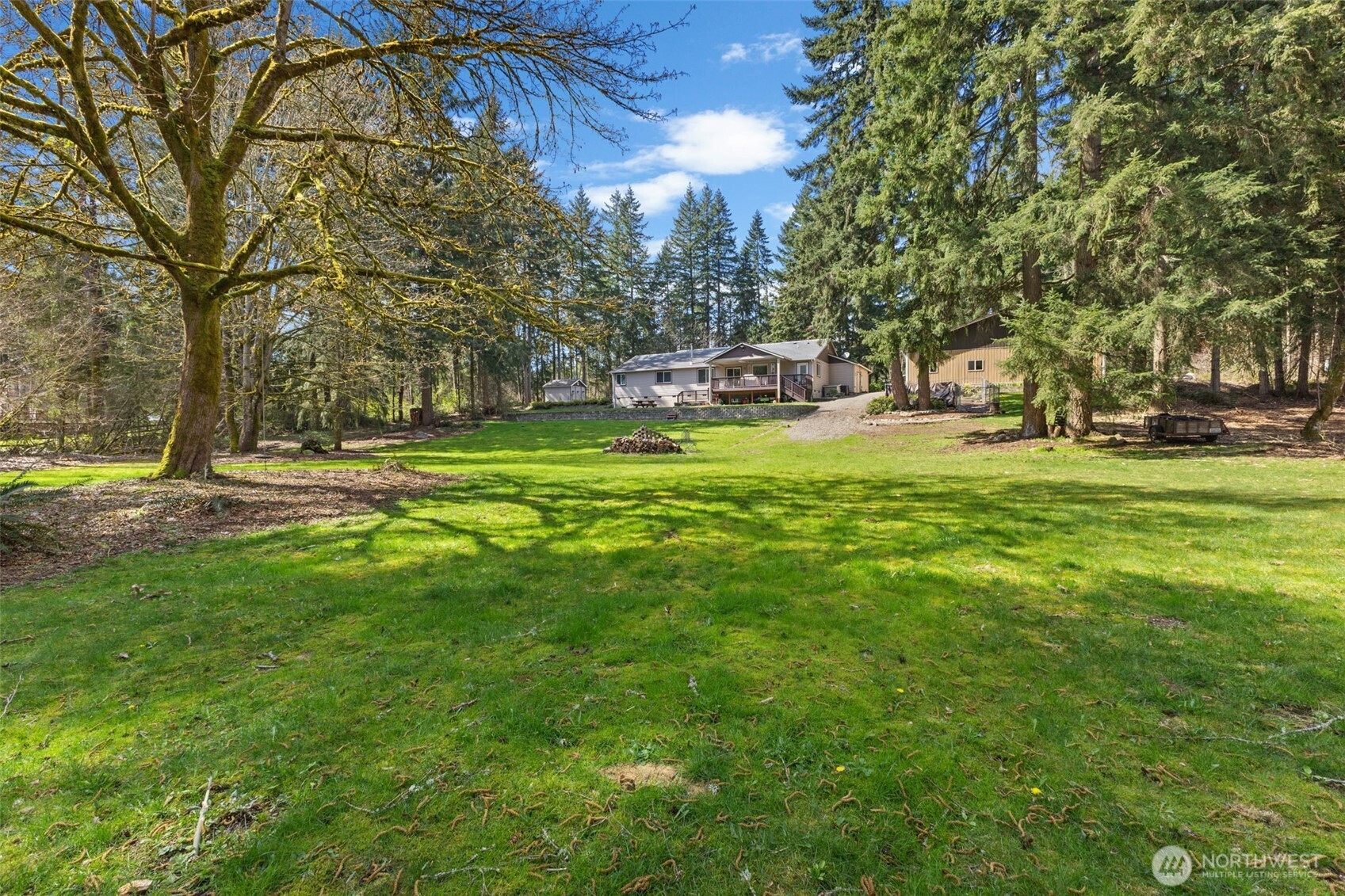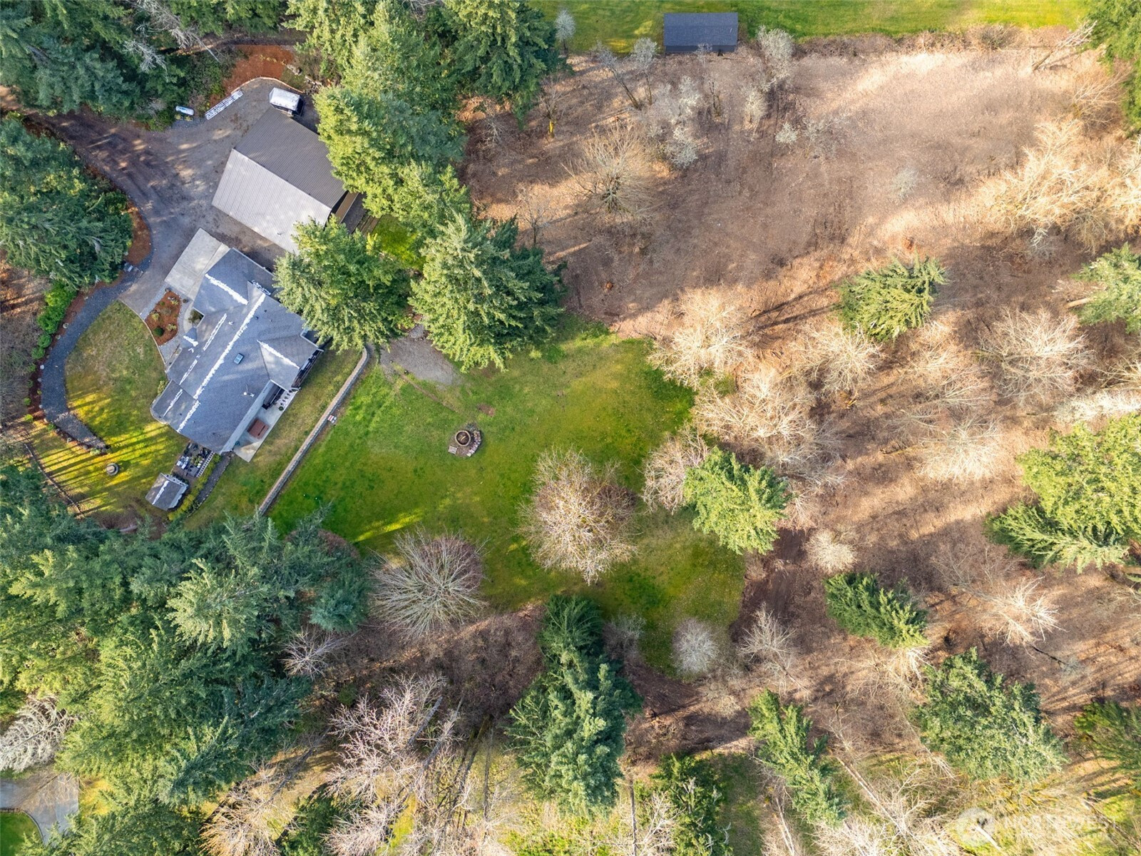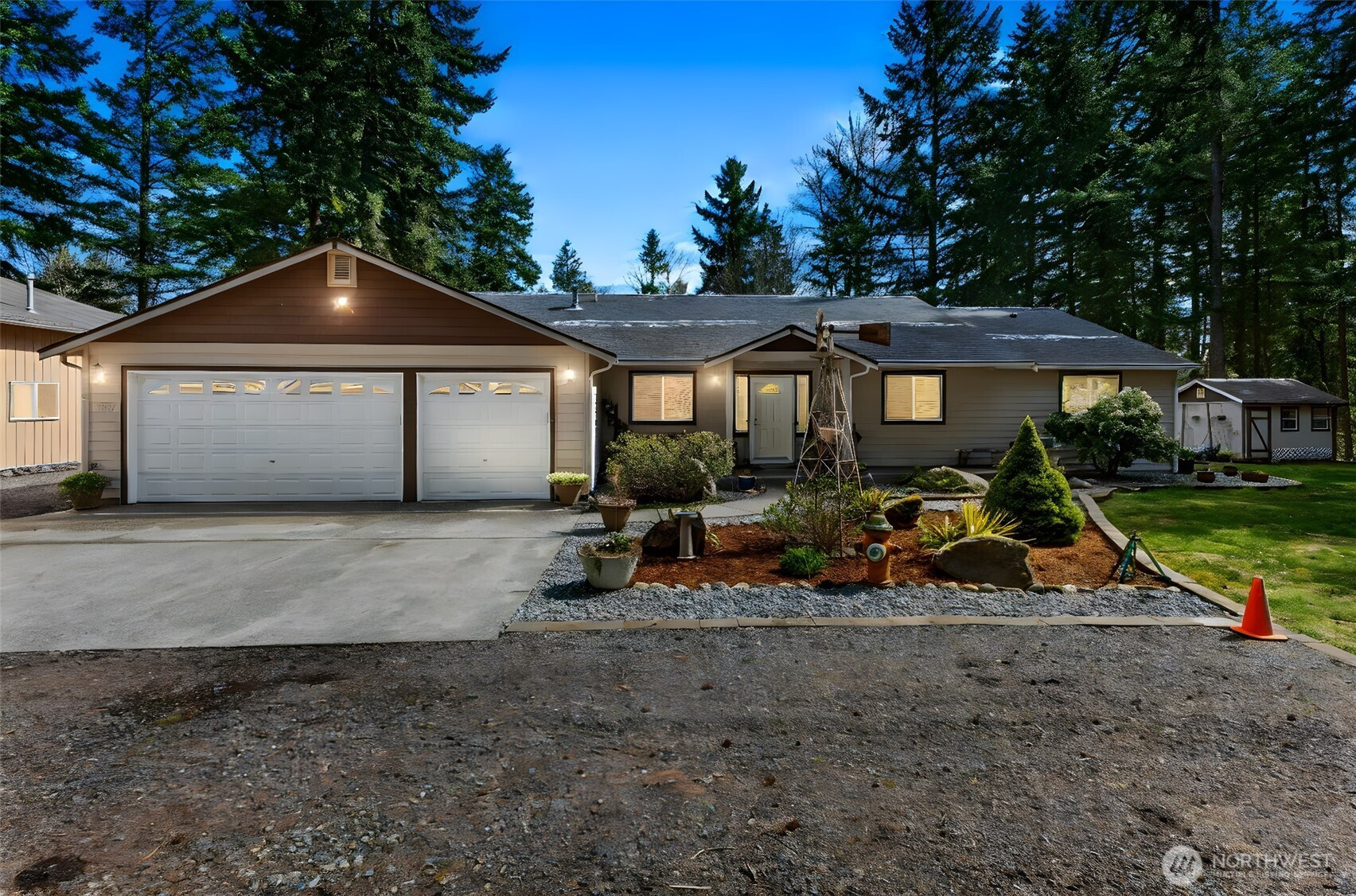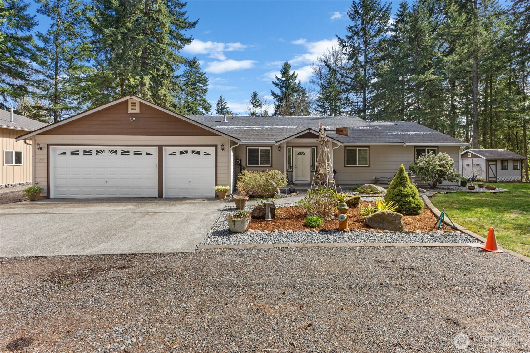 Beautiful Bonney Lake rambler on 5 fully fenced acres welcomes you with a charming covered front porch and warm hardwood entry. Spacious great room showcases vaulted ceilings, abundant natural light, and a cozy wood-burning stove—perfect for everyday living and entertaining. Open-concept kitchen features updated kitchen with granite countertops, stainless steel appliances, center island, recessed lighting, and a generous pantry, flowing seamlessly into the bright dining area. Versatile layout offers a den/office just off the entry—ideal for working from home—plus a large bonus room off the dining area that can serve as a media room, playroom, or additional living space. The spacious primary suite is a true retreat with a 5-piece bath, including soaking tub, double vanity, and walk-in closet. Additional bedrooms are well-sized and thoughtfully positioned for comfort and privacy. Enjoy year-round outdoor living with covered decks overlooking the expansive property—perfect for relaxing or entertaining in any season. Property also features a large Shop/Garage that is fully finished even W/forced air furnace 220 and can hold 7 cars plus shop area for hobbies, storage, or workspace, along with a 3-car attached garage and plenty of room for RV and boat parking. Conveniently located near parks, walking trails, shopping, and amenities with easy commuting access. Generous lot offers potential for an equestrian setup or future possibilities—room to grow and make it your own. A must see!