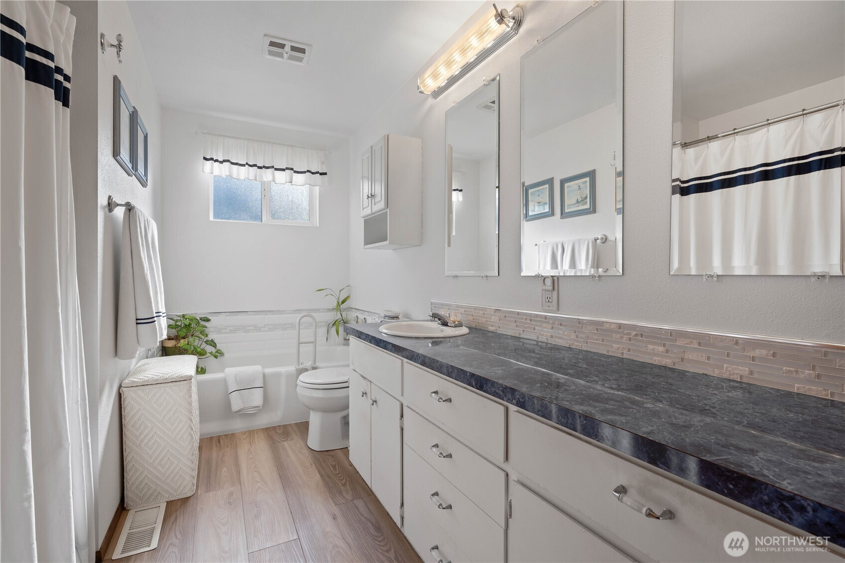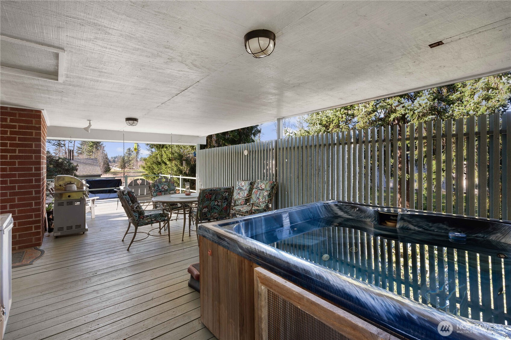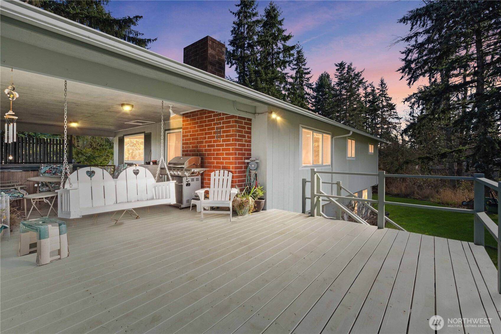 Welcome to this beautifully maintained 4-bedroom, 2-bath home on nearly 3 acres. A rare blend of space, privacy, and convenience. Just minutes from JBLM, major highways, and shopping, enjoy a peaceful, secluded setting without sacrificing access to everything you need.The beautifully landscaped yard offers room to roam, garden, or entertain. Step onto the oversized back deck and take in breathtaking sunset views from the hot tub, the perfect spot for relaxing evenings or summer gatherings.Inside, enjoy fresh updates including new LVP flooring, new carpet, and fresh paint. The remodeled daylight basement provides flexible living space for guests, multi-generational living, or a bonus room, plus extra unfinished space for a home gym or storage.Abundant parking includes an attached garage, carport, and huge detached shop with room for RV and boat parking. Don’t miss this rare opportunity — acreage, sunset views, updates, and shop space all in one incredible property.