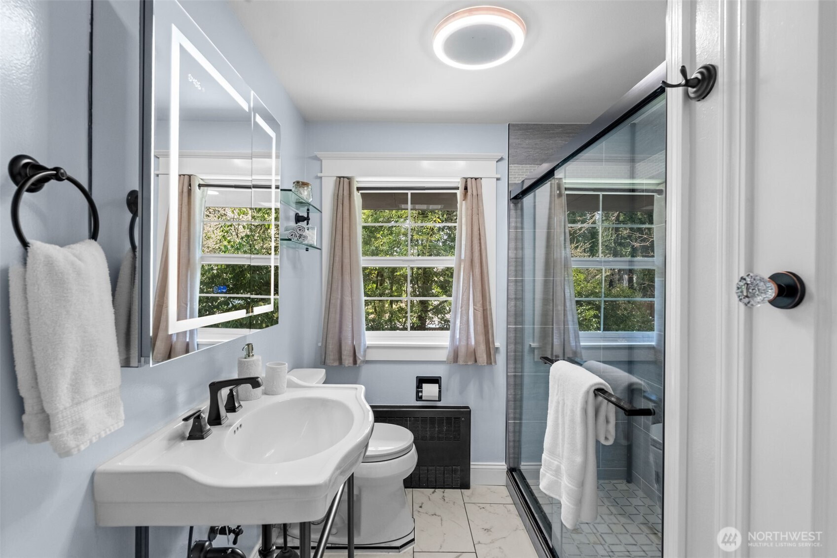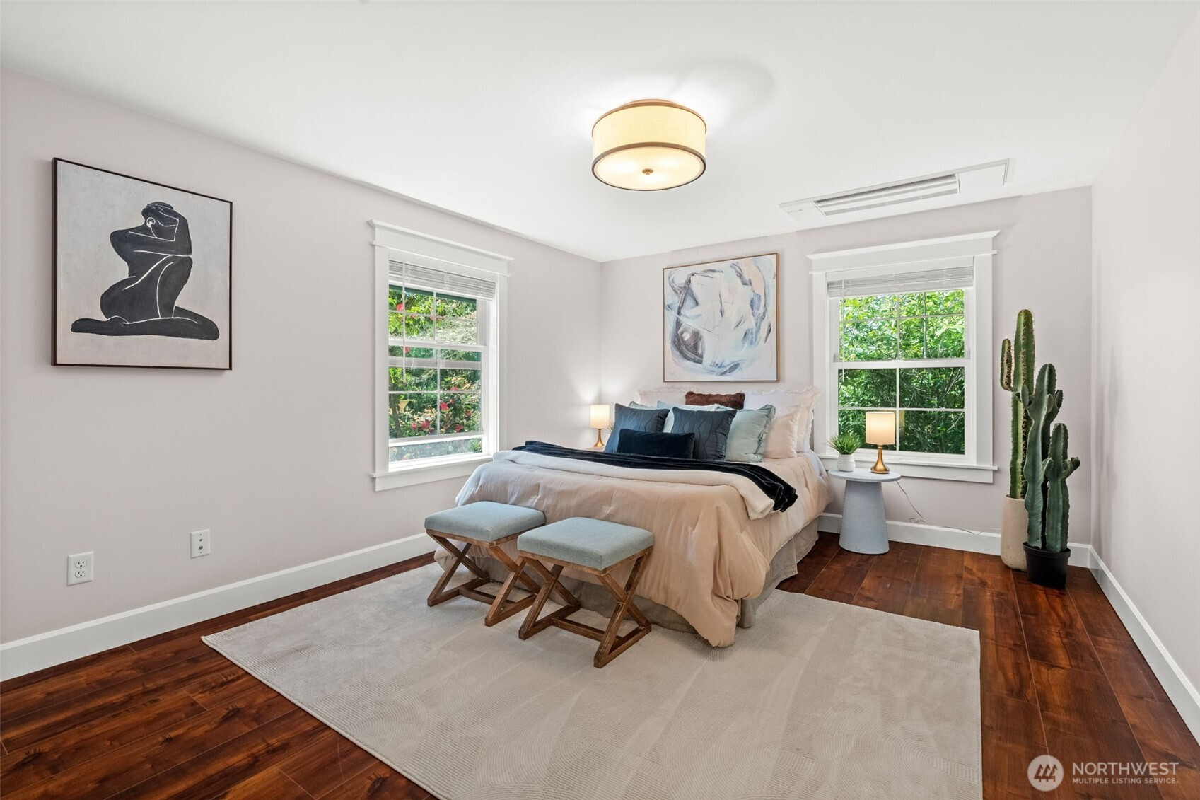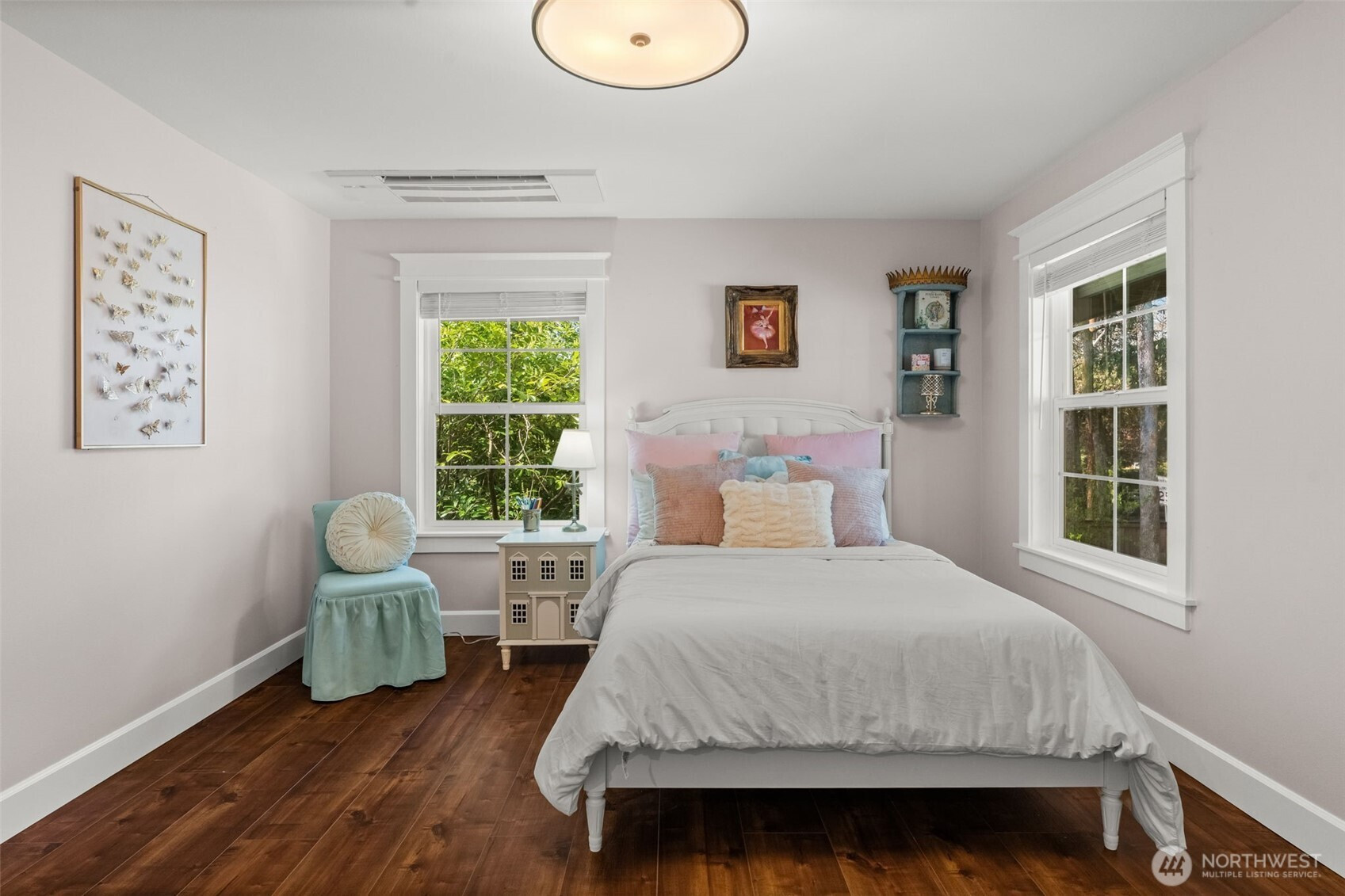 Extensively updated and thoughtfully improved, this property offers a rare blend of timeless beauty with modern luxuries. Starting with a new roof in 2020, this home has undergone significant upgrades inside and out. The main residence features a full renovation completed in 2024 with all-new electrical, plumbing, windows, lighting, and modern finishes throughout. The kitchen and living spaces were fully rebuilt with new appliances and a built-in buffet with two mini fridges. A tankless water heater and whole-home mini-split system provide efficient comfort. Newer fencing along the south and west boundaries with added gates, and durable cement board siding installed during the 2024 restoration. The primary suite includes a remodeled bath and closet with tile flooring, tiled shower, updated fixtures, and a lighted vanity. Additional highlights include a gas fireplace insert, an expanded upstairs hall bath, a central network panel with Ethernet wiring, electric blinds, exterior eave lighting, and improved attic access with storage. The DADU has been fully remodeled with updated finishes and in-unit laundry, ideal for guests, rental income, or multi-generational living. Roof, windows, and major systems have been updated, creating a truly move-in-ready home. Classic design meets high-end luxury on almost a full acre; this is an absolute show stopper.