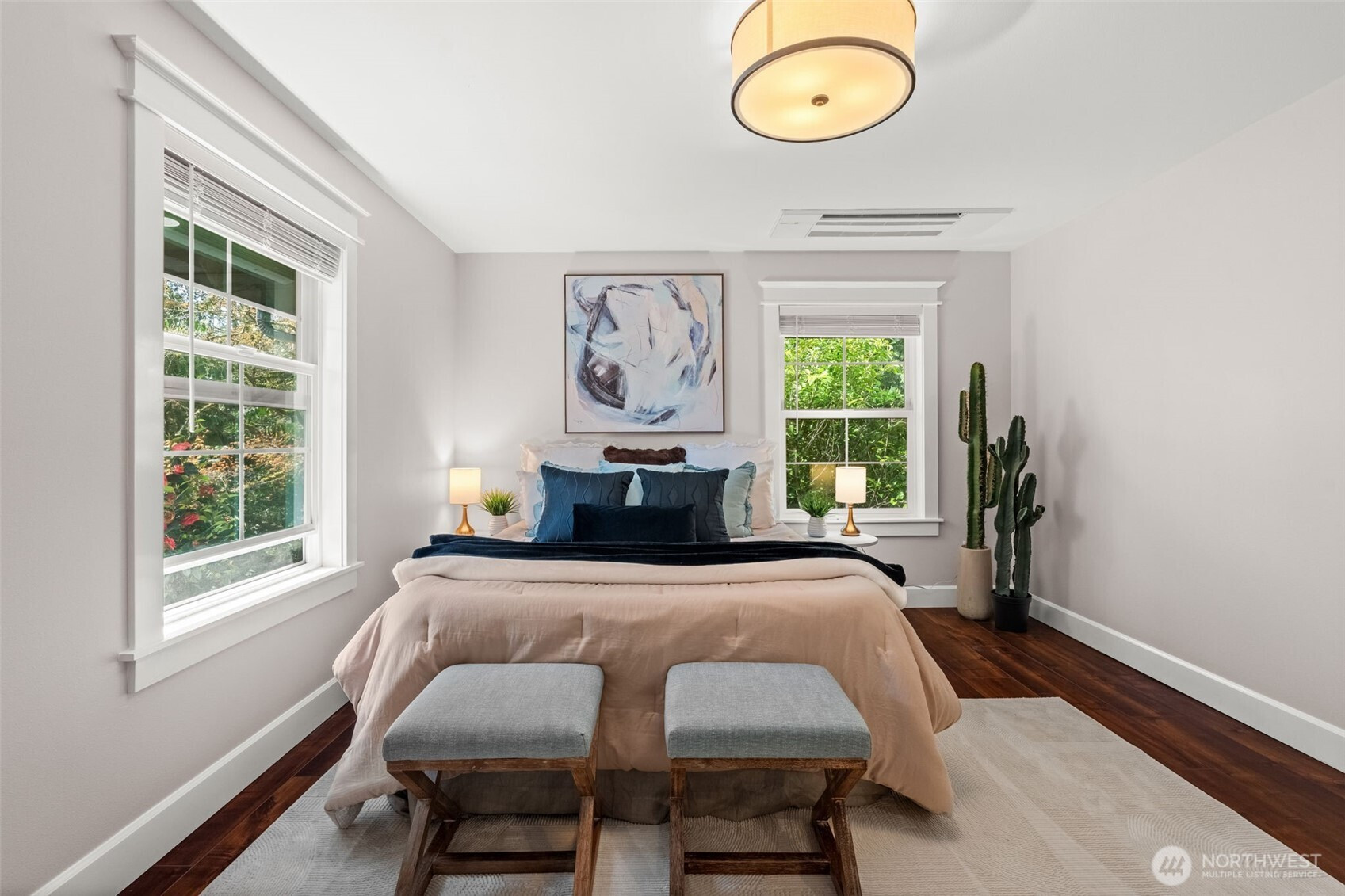 Extensively updated and thoughtfully improved, this property offers a rare blend of timeless beauty with modern luxuries. Starting with a new roof in 2020, this home has undergone significant upgrades inside and out. The main residence features a full renovation completed in 2024 with all-new electrical, plumbing, windows, lighting, and modern finishes throughout. The kitchen and living spaces were fully rebuilt with new appliances and a built-in buffet with two mini fridges. A tankless water heater and whole-home mini-split system provide efficient comfort. Newer fencing along the south and west boundaries with added gates, and durable cement board siding installed during the 2024 restoration.The primary suite includes a remodeled bath and closet with tile flooring, tiled shower, updated fixtures, and lighted vanity. Additional highlights include a gas fireplace inserts, expanded upstairs hall bath, central network panel with ethernet wiring, electric blinds, exterior eave lighting, and improved attic access with storage. The DADU has been fully remodeled with updated finishes and in-unit laundry, ideal for guests, rental income, or multi-generational living. Roof, windows, and major systems have been updated, creating a truly move-in ready home. Classic design meets high end luxury on almost a full acre, this is a absolute show stopper.