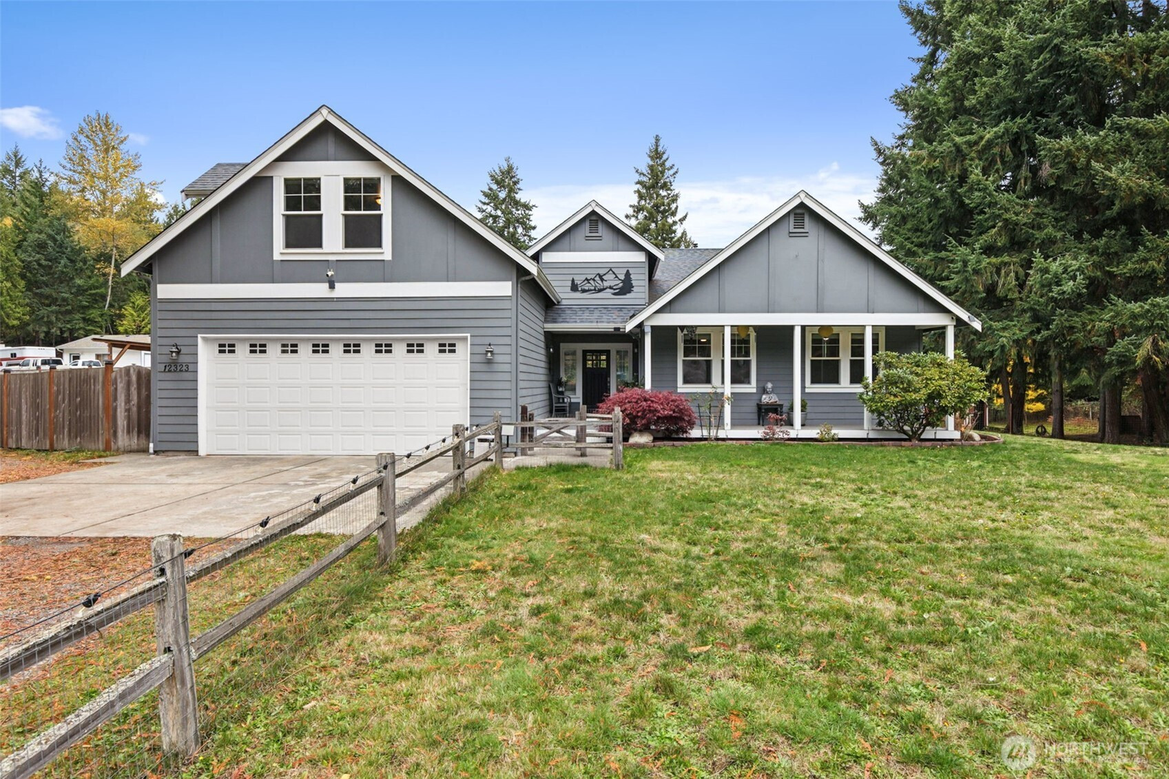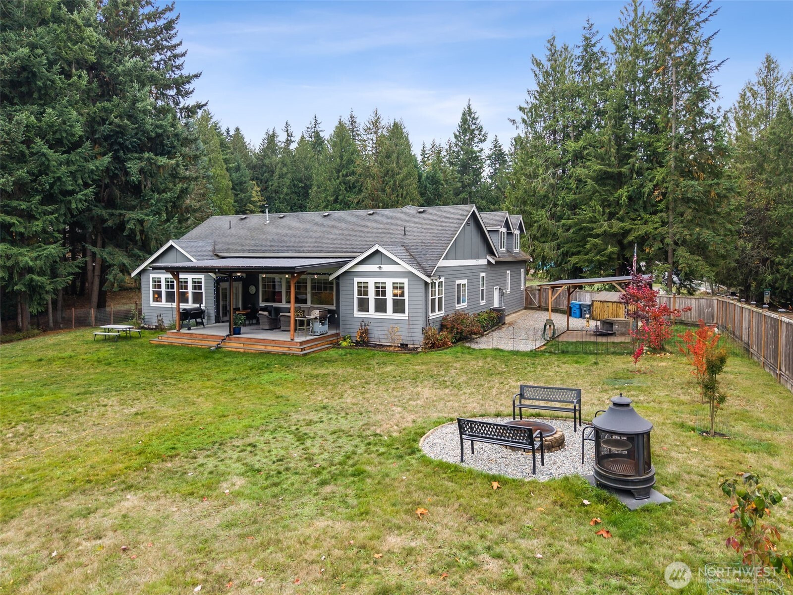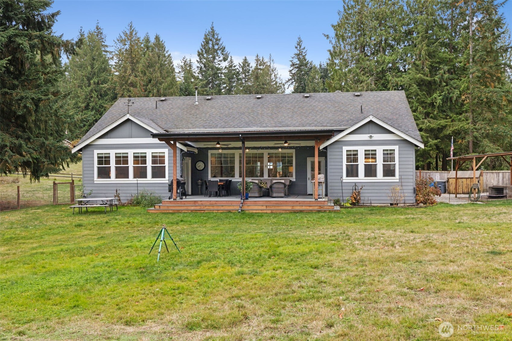 RARE Bonney Lake opportunity! Nearly 1.5 acres of space, privacy and peaceful living, just minutes from town. This 2,376 sf home was refreshed in 2025 with new kitchen appliances, updated lighting and stylish finishes throughout. The open layout blends comfort and function with quartz counters, custom cabinetry and engineered hardwoods. Step outside to an expansive covered deck overlooking fenced gardens, a 10x30 greenhouse, raised beds and lush pasture views. Every garden area is sprinklered for ease, plus a 12x16 storage barn for tools and hobbies. Wake up to sunlit fields, enjoy quiet evenings surrounded by nature, plus reach Costco, shopping and dining in minutes. The best of both worlds: private country living and close to everything.