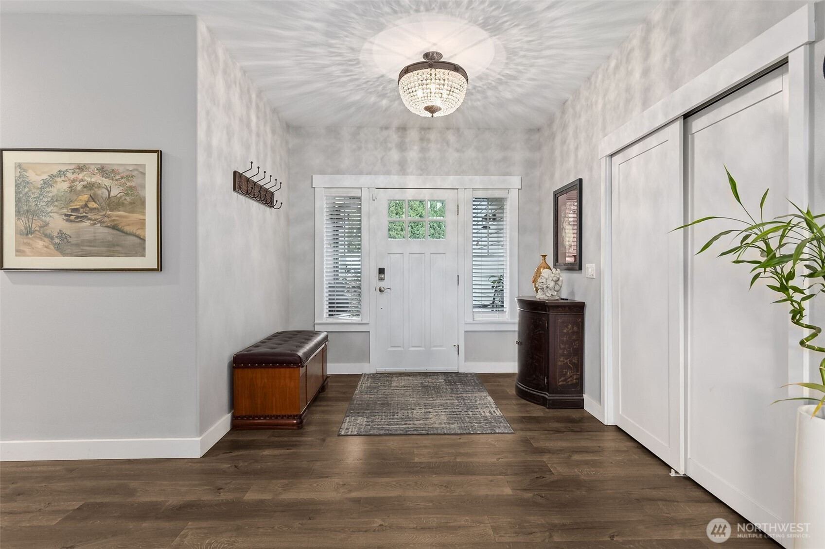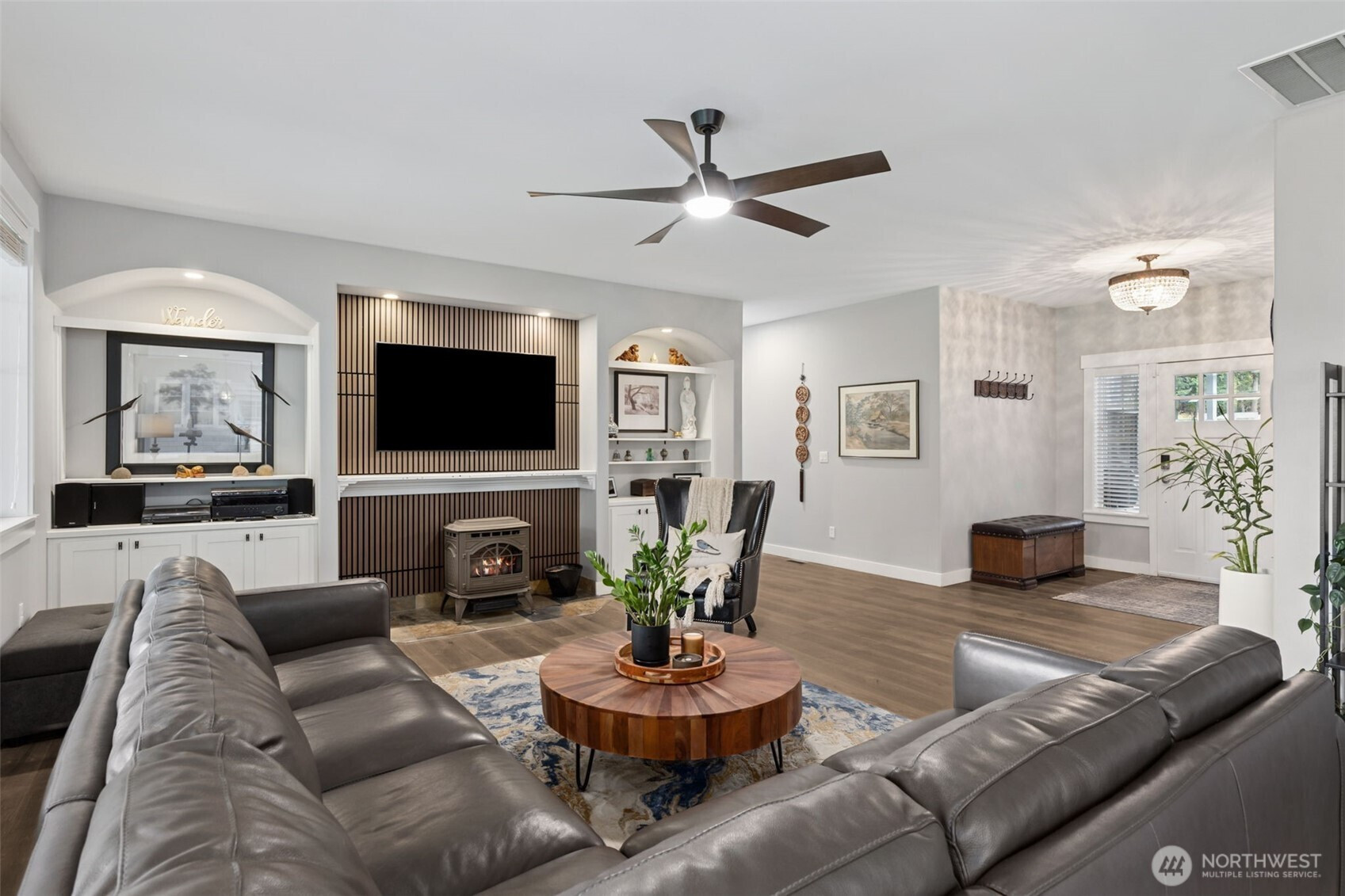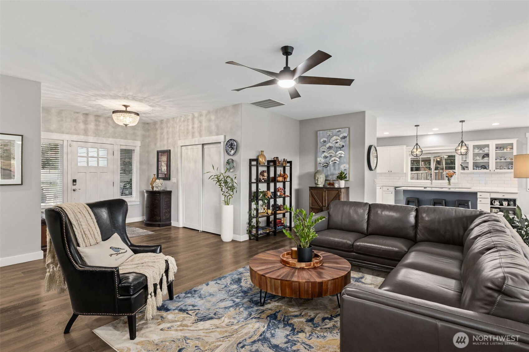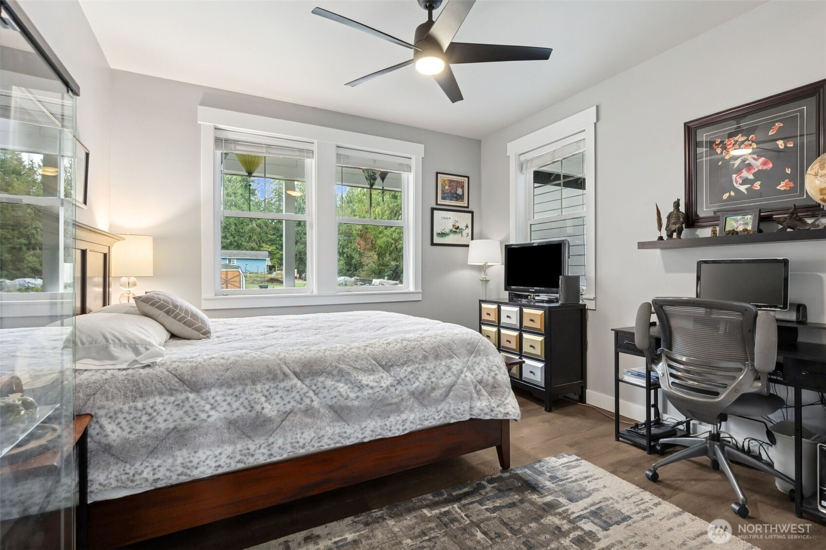 RARE Bonney Lake opportunity! Nearly 1.5 acres of space, privacy and peaceful living, just minutes from town. This 2,376 sf home was refreshed in 2025 with new kitchen appliances, updated lighting and stylish finishes throughout. The open layout blends comfort and function with quartz counters, custom cabinetry and engineered hardwoods. Step outside to an expansive covered deck overlooking fenced gardens, a 10x30 greenhouse, raised beds and lush pasture views. Every garden area is sprinklered for ease, plus a 12x16 storage barn for tools and hobbies. Wake up to sunlit fields, enjoy quiet evenings surrounded by nature, plus reach Costco, shopping and dining in minutes. The best of both worlds: private country living and close to everything.