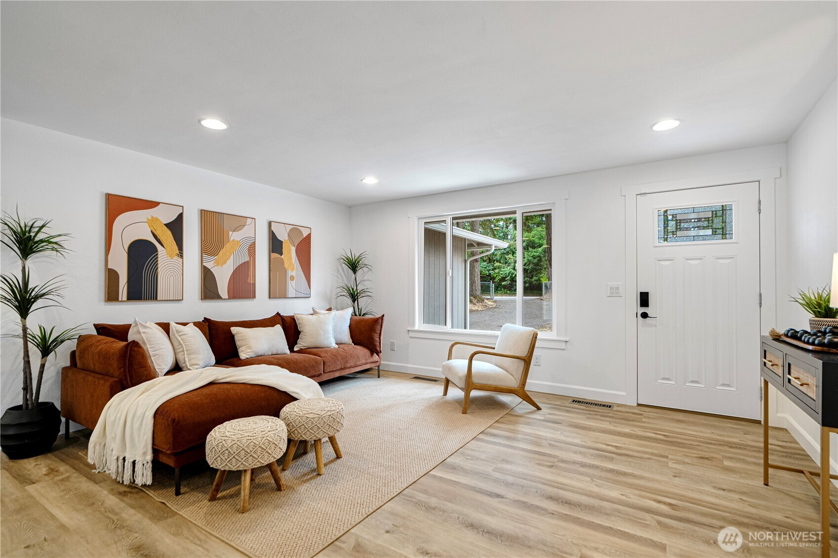 Fully remodeled in 2025, this charming rambler sits on a spacious 0.47-acre lot in the heart of South Hill, Puyallup. Featuring 3 bedrooms, 1.75 baths, new flooring, and stainless steel appliances, this move-in-ready home offers both comfort and potential. Bright kitchen, cozy family room with fireplace, formal living and dining areas all overlook the private, fully fenced backyard. Enjoy the peaceful, country-like setting while still being minutes from shopping, dining, and schools. Complete with fresh paint, a new roof, a 2-car garage, and a circular driveway—this one checks all the boxes!