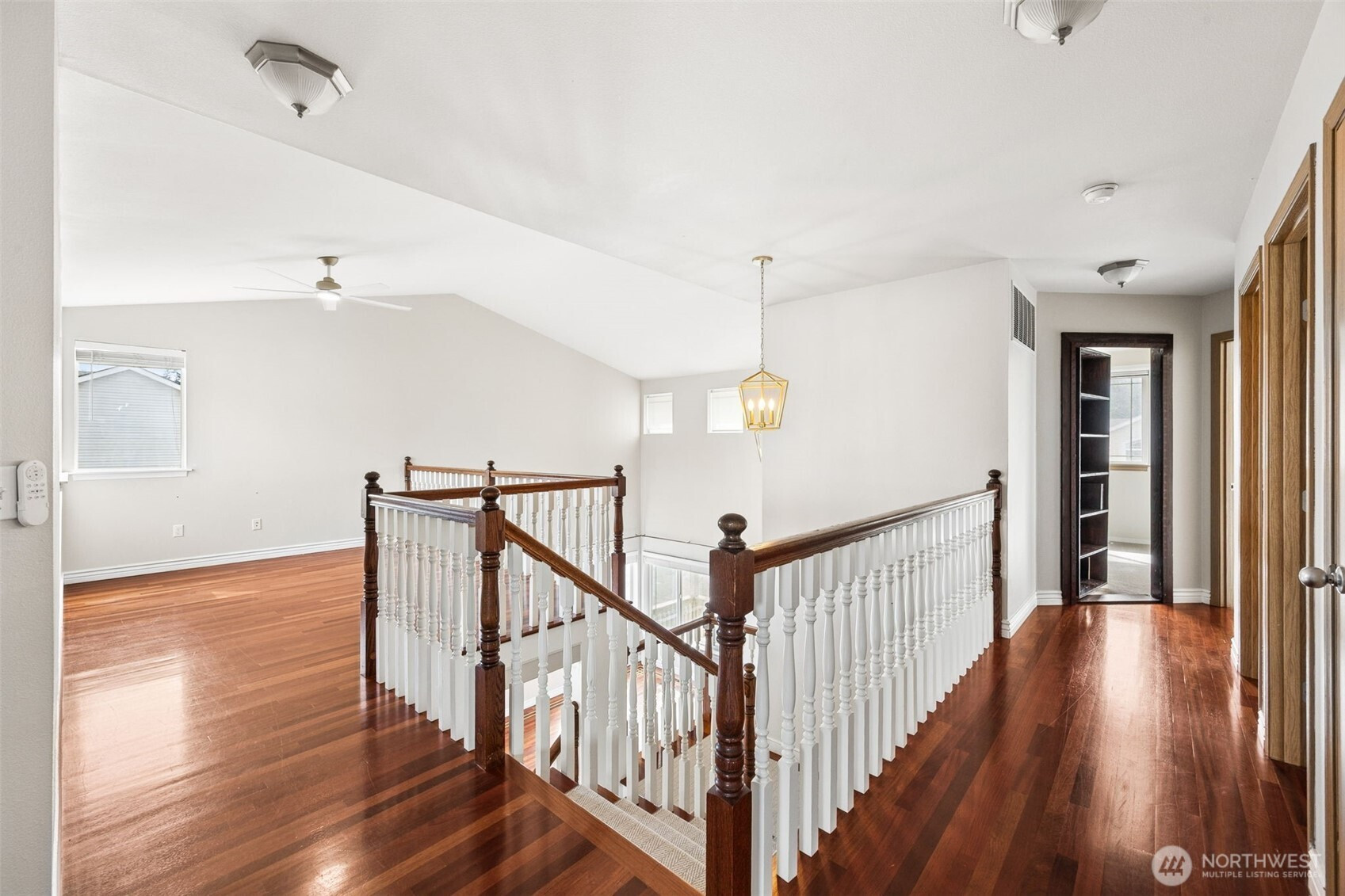 Beautifully updated home in a charming, gated community featuring a NEW roof and ideally situated on a spacious corner lot at the end of a quiet dead-end street. Thoughtful upgrades and timeless details shine throughout, including stunning Brazilian cherry floors with inlay accents and an elegant open spindle staircase with carpet runner. Enjoy year-round comfort with A/C and a gas furnace (just 2 years old). The beautifully remodeled kitchen is a true highlight, showcasing quartz countertops, soft-close cabinetry, pull-out drawers, stainless steel appliances (all included), and a pantry—perfect for both everyday living and entertaining. The main level offers a convenient half bath and a utility room with washer and dryer that convey. Upstairs, you'll find a versatile loft with ceiling fan, ideal for a home office or flex space. Retreat to the spacious primary suite through French doors, complete with vaulted ceilings, newer carpet, a large walk-in closet, and a spa-like bath featuring marble flooring, a garden tub, and dual vanities. Three additional guest bedrooms are located upstairs—including one with a secret door—along with a full bathroom. The 2 car garage includes hanging storage shelves. The fully fenced backyard features a gazebo and swing set that makes the space perfect for entertaining. Welcome Home!