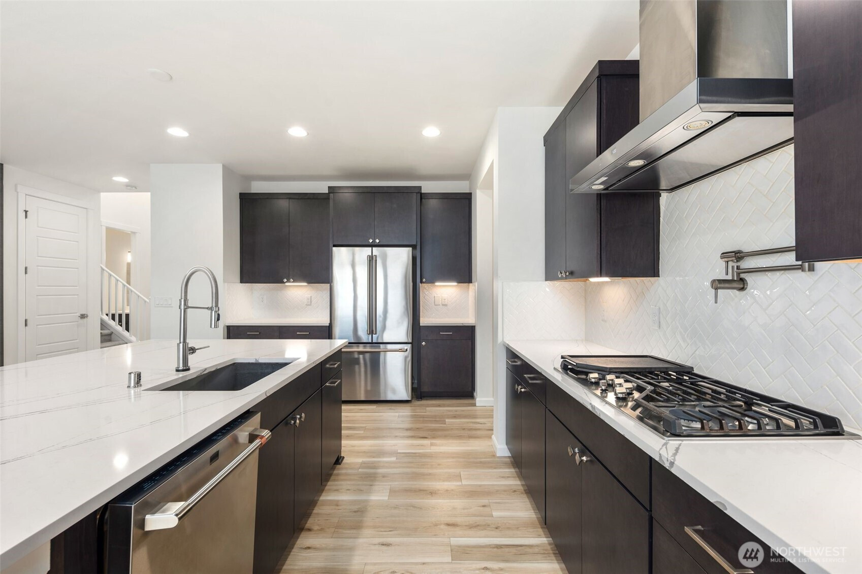 Extensively upgraded Coronado home with over $150K in premium builder upgrades—truly better than new and move-in ready. The open main level features a dramatic floor-to-ceiling stone gas fireplace, chef’s kitchen with oversized island, upgraded cabinetry and finishes, and a bright dining area ideal for entertaining. Rare main-floor bedroom with ¾ bath offers flexibility for guests or home office. Upstairs includes a spacious primary suite with spa-inspired walk-in tile shower, a versatile loft, and two large secondary bedrooms—each with a walk-in closet. Tucked away for privacy with a large driveway and expansive backyard. One of Sunrise’s finest. Inquire about rent to own options.