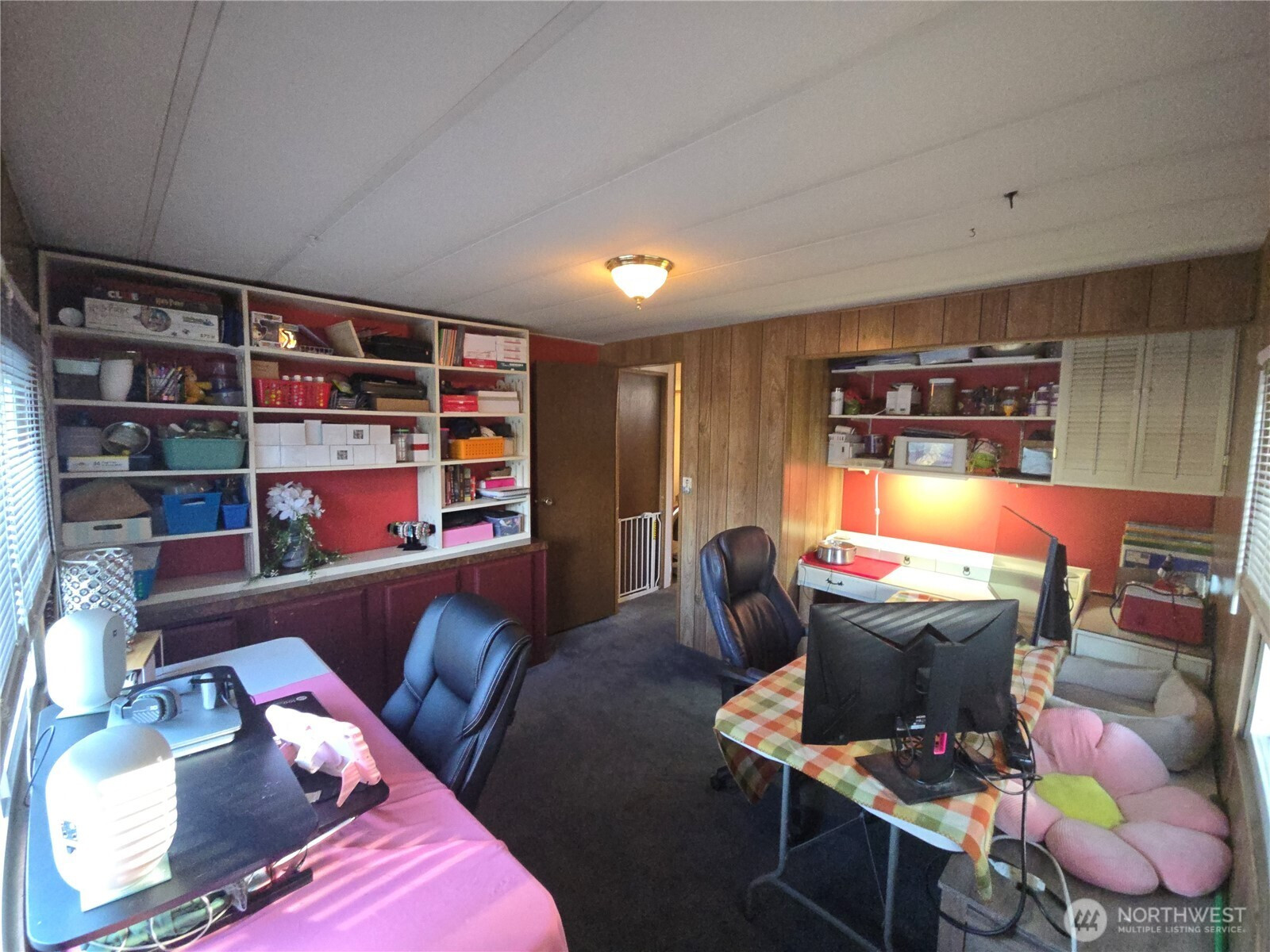 Welcome home to this charming residence in San Souci Mobile Estates, a well-maintained 55+ community known for its friendly, welcoming atmosphere. Ideally located as the first home on the right as you enter the park, this property sits on one of the largest lots in the community and features a fully fenced backyard, two covered porches, and a spacious storage shed. Inside, you’ll find abundant storage and built-in shelving—perfect for books, collectibles, or décor. One bedroom is thoughtfully set up as a hobby or craft space, complete with built-in shelves and a desk. Tasteful updates are found throughout the home. Residents enjoy an active social calendar with bingo nights and other community events, as well as access to the clubhouse and pool.