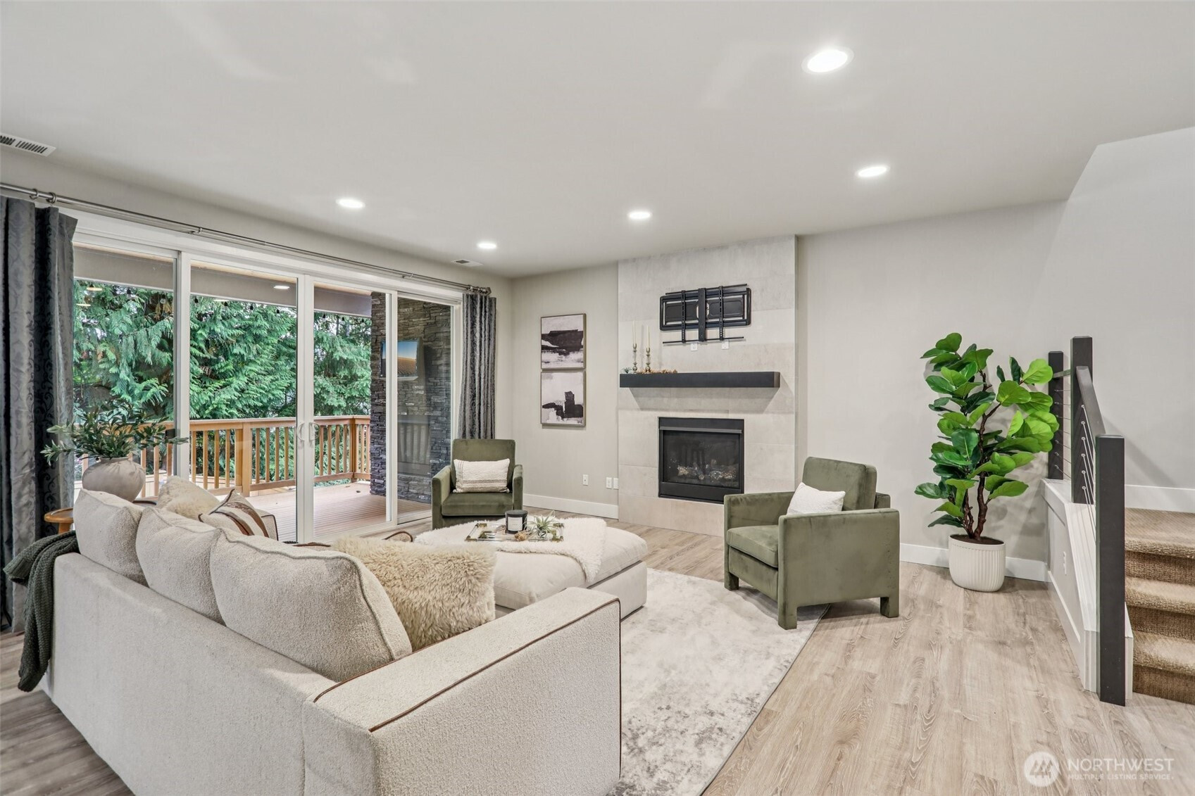 This stunning home in the desirable Willow Ridge neighborhood offers a 3-car garage and exceptional outdoor living. The gourmet kitchen features a Quartz island, elegant tile, and tile window splash. A true chef’s delight! The open floor plan flows seamlessly to a 12’ grand French slider, creating over 700 sq. ft. of outdoor living with a covered deck and outdoor fireplace. Upstairs includes a large loft with a deck, four bedrooms, and a spacious primary suite with designer sinks and a luxury tile shower. Fully fenced on a greenbelt, offering privacy and serene views. Additional highlights include A/C and thoughtful finishes throughout. Enjoy access to the community sports court for recreation and neighborhood fun. Meticulously maintained!
