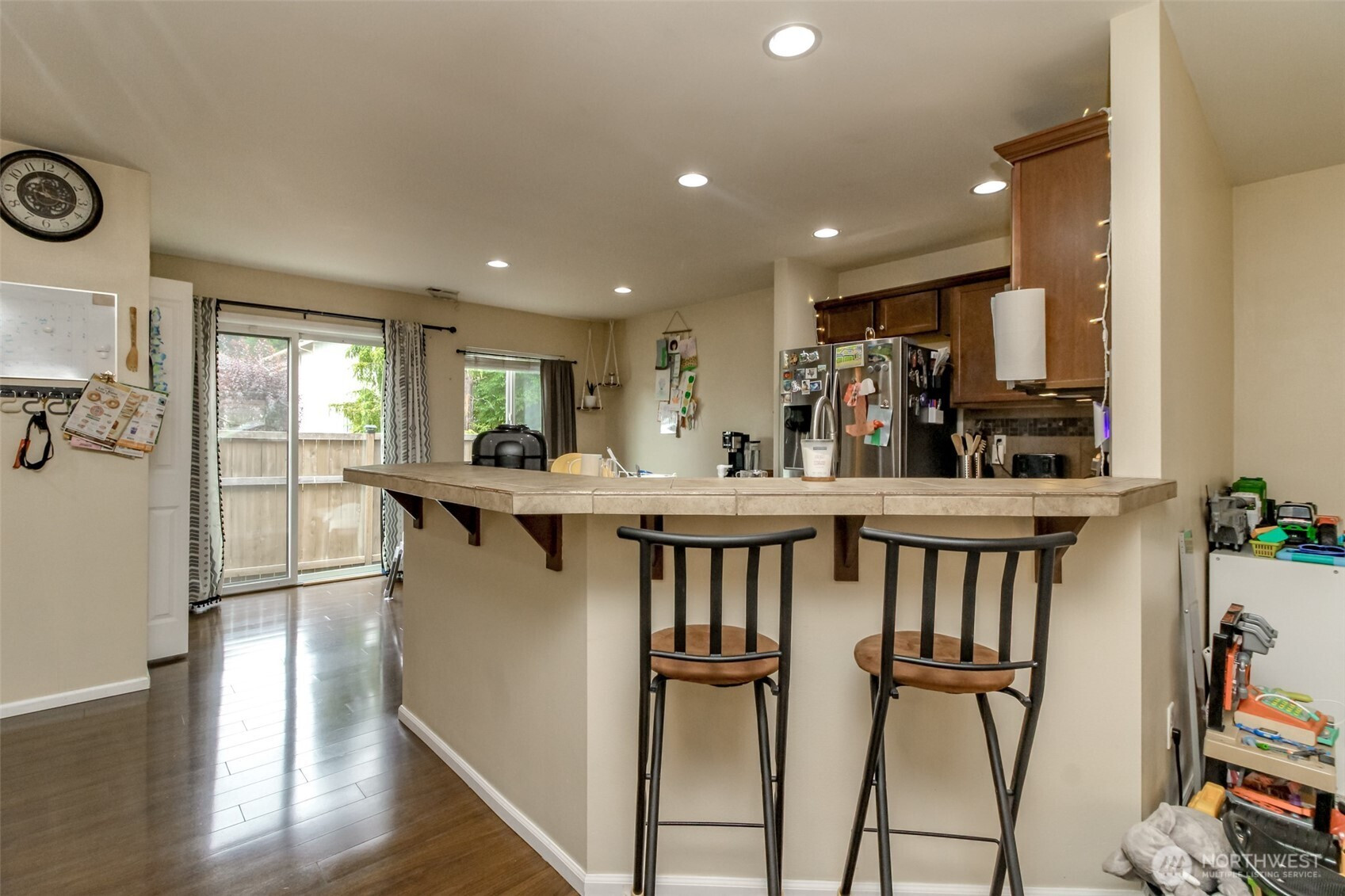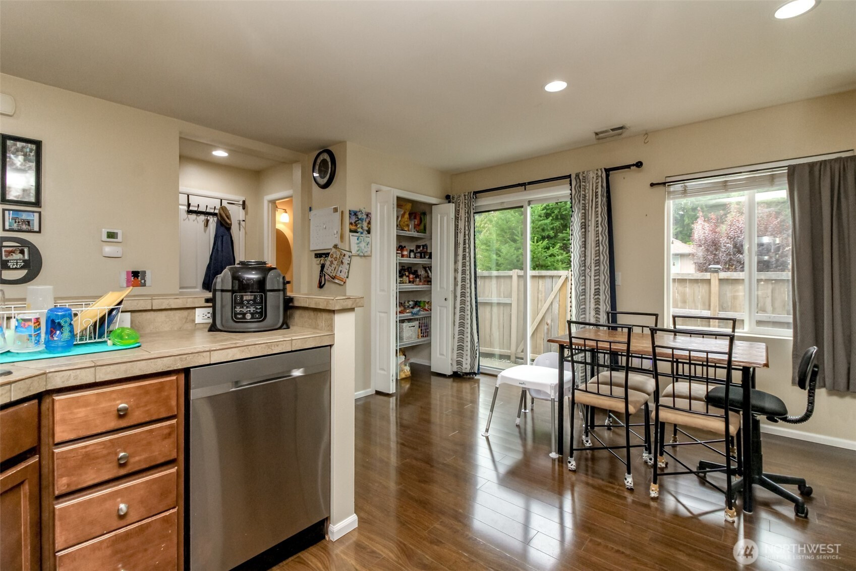 Incredibly well cared for 3 bedroom and 2.5 bath gem in Puyallup. Pride of ownership throughout. Private lot which is set back off the street and is fully fenced. Beautifully appointed kitchen with granite tile countertops, newer engineered hardwoods downstairs, newer paint throughout. Newer carpet upstairs make this home move in ready. Enjoy an additional room which serves currently as an office upstairs. Utility room upstairs as well to make this a smart living design. Large and deep 3 car garage set up for any car enthusiast. Additional lighting in the garage and new hot water heater. Large paved RV parking area on the side of the home. Nice backyard and side yard for entertaining, welcome home!