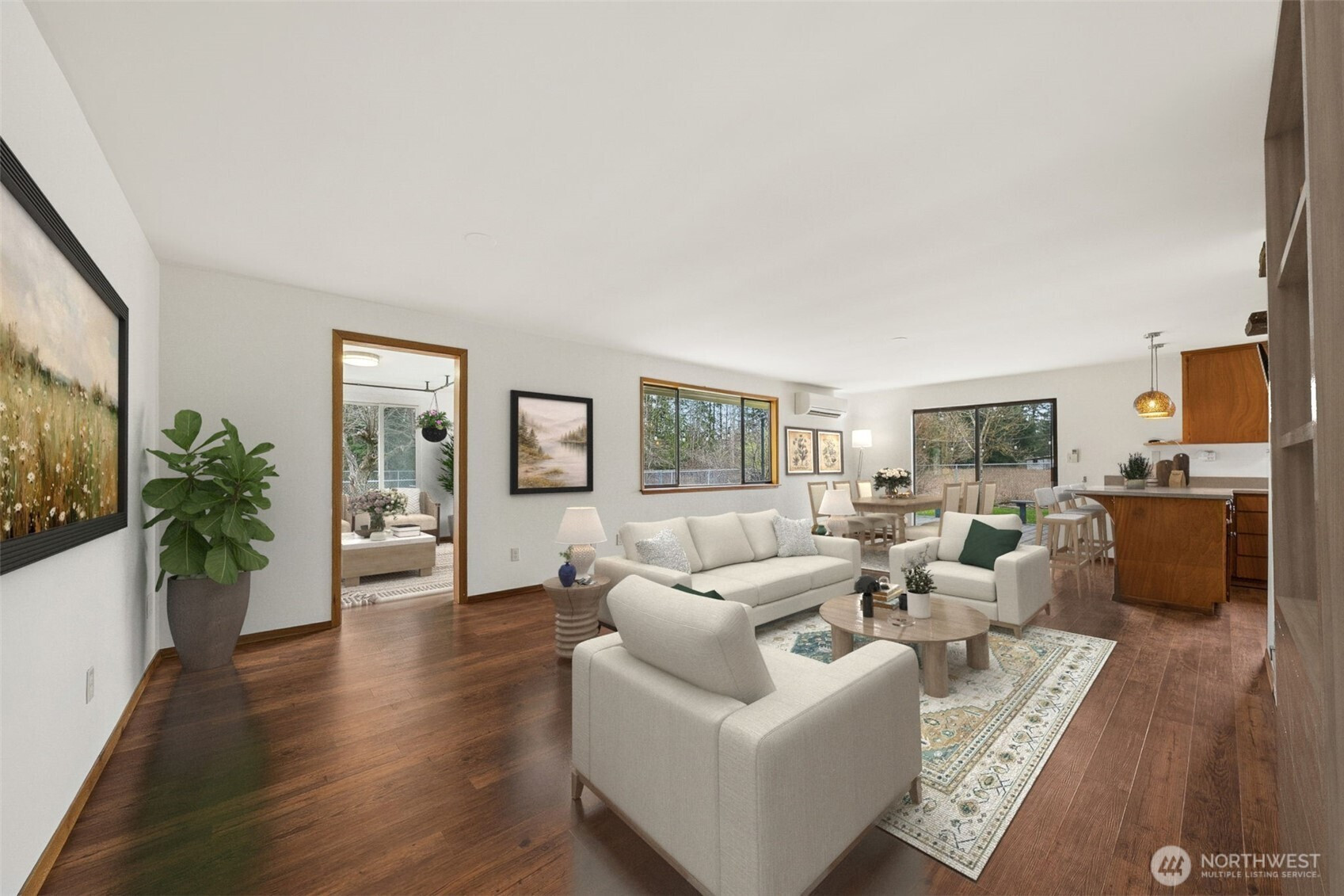 Tucked away in your own private oasis, but close to shopping, dining, freeways- this remodeled rambler on a level shy acre has it all! As you pull in, the tree lined driveway makes you feel like you're about to unplug from the daily grind. This 1728 SF home has been freshly painted inside with 3 bedrooms, 2 completely updated bathrooms, Sunroom, extra den/ flex space, updated kitchen with gas range & large laundry room with lots of storage. New Luxury Vinyl Plank throughout, New mini split ductless heating & cooling, Tesla charger in the 2 car attached garage, new H2O tank are just some of many updates this home boasts, making this the obvious choice. Outside you'll not only love the gorgeous landscaping with fruit trees, perennial border and raised beds, you'll also fall in love with the charming outbuilding fitted with electrical outlets, heat, sink & more to make it into your own special space. Newer roof (2022 install).This property is adjacent to Pierce Co public land/ wetlands, so no concerns of ever losing your privacy. Properties like this don't come up often so don't let this one slip by!