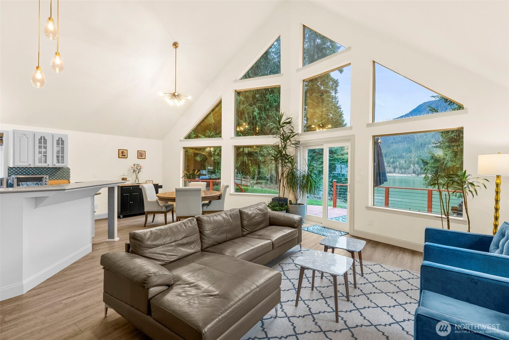 On the quiet shores of Alder Lake, the PNW lifestyle most only dream of—private waterfront, serene views, two residences & direct access to year-round recreation. Tucked in the trees where the Reliance logging camp stood, overlooking the distinctive peaks of the Tatoosh Range—welcome to Alder Lake House. Originally built in 1993 and extensively remodeled, the property includes a 2bd/2ba main house, a 2bd/2ba DADU, park-like grounds, a 3-car garage/shop, RV parking, private trail to the lake & 25ft floating dock. The main house offers over 1400sqft of light-filled living, vaulted ceilings, LVP flooring & floor-to-ceiling windows framing the lake & Mt. views. Outside, the wraparound deck is made for slow mornings, golden hour views & watching eagles, hummingbirds,& deer pass by. The fully remodeled DADU above the garage/shop adds flexible space for guests, multi-gen living, or possible income potential, complete with an open layout, private deck & covered hot tub. A short walk down the private trail leads to the lake. Start mornings paddle boarding across glassy turquoise water, evenings kayaking beneath mountain views, or head out by boat from your 25ft floating dock. Located nearby the Nisqually entrance to Mt. Rainier Natl. Park & mountain communities of Elbe, Ashford, Mineral & Eatonville. Whether you’re looking for a full-time home, a legacy getaway, or an investment-minded retreat (Airbnb), Alder Lake House is a rare opportunity to own a truly special piece of WA.