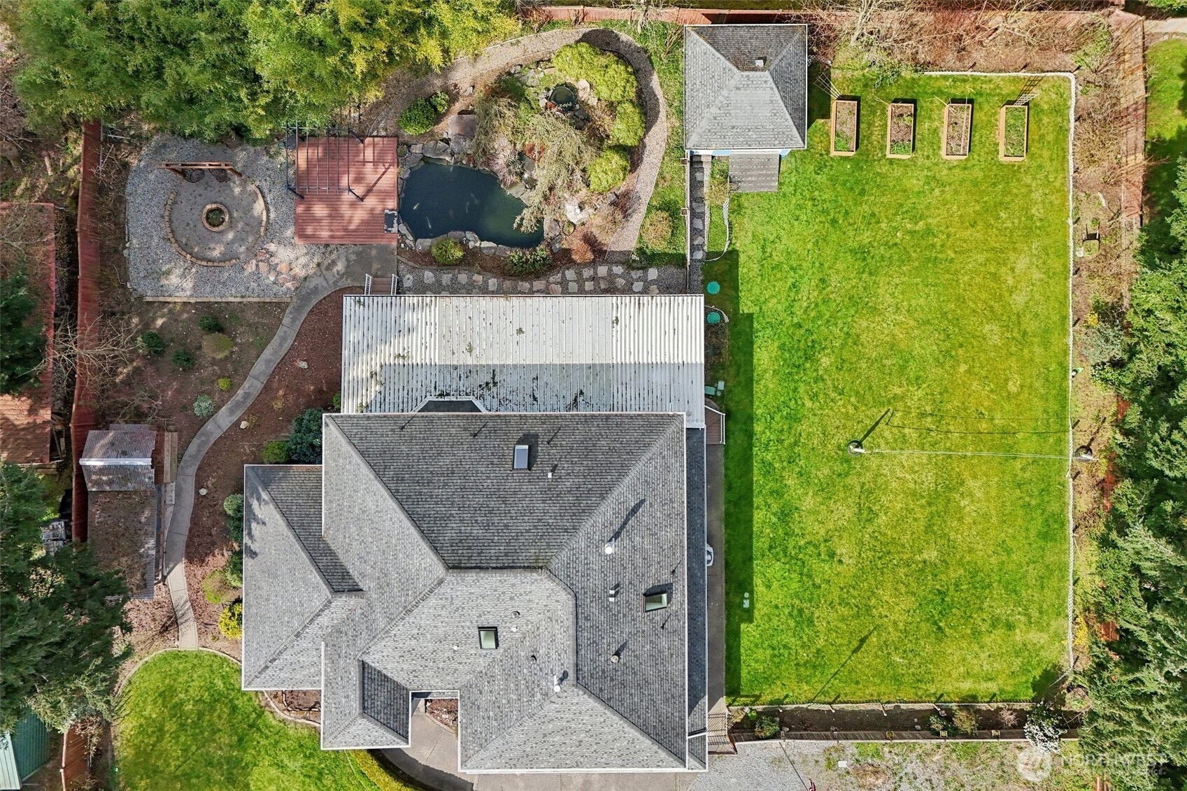 Tucked away on a quiet street in Puyallup your private oasis awaits, this expansive 3,935 sqft custom home offers luxury living on over ½ acre. Inside enjoy a chef’s kitchen with stainless steel appliances, custom hardwoods, fresh paint inside and out, and new carpet. Gather together in the living room theater with a built-in projector or host in the formal dining room and sitting area. Better yet head outside to the expansive deck and BBQ in the outdoor kitchen then roast marshmallows by the firepit or get cozy in hot tub area. Mornings can be spent drinking coffee listening to your serene koi pond or playing on your private volleyball court, this home truly offers it all. Don't miss the main-floor guest suite with a shower perfect for multi-generational living. Upstairs you can unwind in the grand primary suite with a double-sided gas fireplace, jetted tub, and custom walk-in closet. With 7 possible bedrooms and 4.5 baths + an office there's room for everyone. Out front is RV parking with hookups, a 3 car garage and of course NO HOA! Bring your toys and enjoy true freedom. Chicken coop + chickens can stay or go. Only 9 mins from South Hill Mall for shopping or groceries. A one of a kind home like this doesn't come around often!