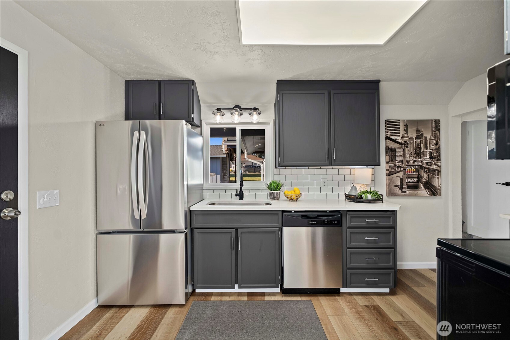 Completely remodeled & move-in ready, this beautiful craftsman home is where comfort, space & lifestyle come together. Locate in the heart of Milton on a large 1/3acre+ corner lot with a shop, garage & RV carport that provide plenty of room for all of your toys & hobbies. Full of charm with all the right updates including cute built-ins, new LVP flooring, new carpets, new doors, new trim, fresh paint, vinyl windows, updated electrical, updated PEX plumbing & more. The kitchen shines with SS appliances, quartz countertops, classic subway tile backsplash & pantry. The bright & inviting layout flows comfortably from one room to the next with a spacious living room, dining room, 3 bedrooms, a full bath & lots of attic storage. Step outside & experience what makes this property truly special. The expansive yard, deck & fire pit area create the perfect setting for gatherings, relaxing evenings & year-round enjoyment, while the shop & garage really set it apart. Located in the desirable Fife school district with easy access to I5, 18, 167 & 512. Close to parks, lakes, restaurants, shopping & more! All appliances stay. No HOA. Must See!