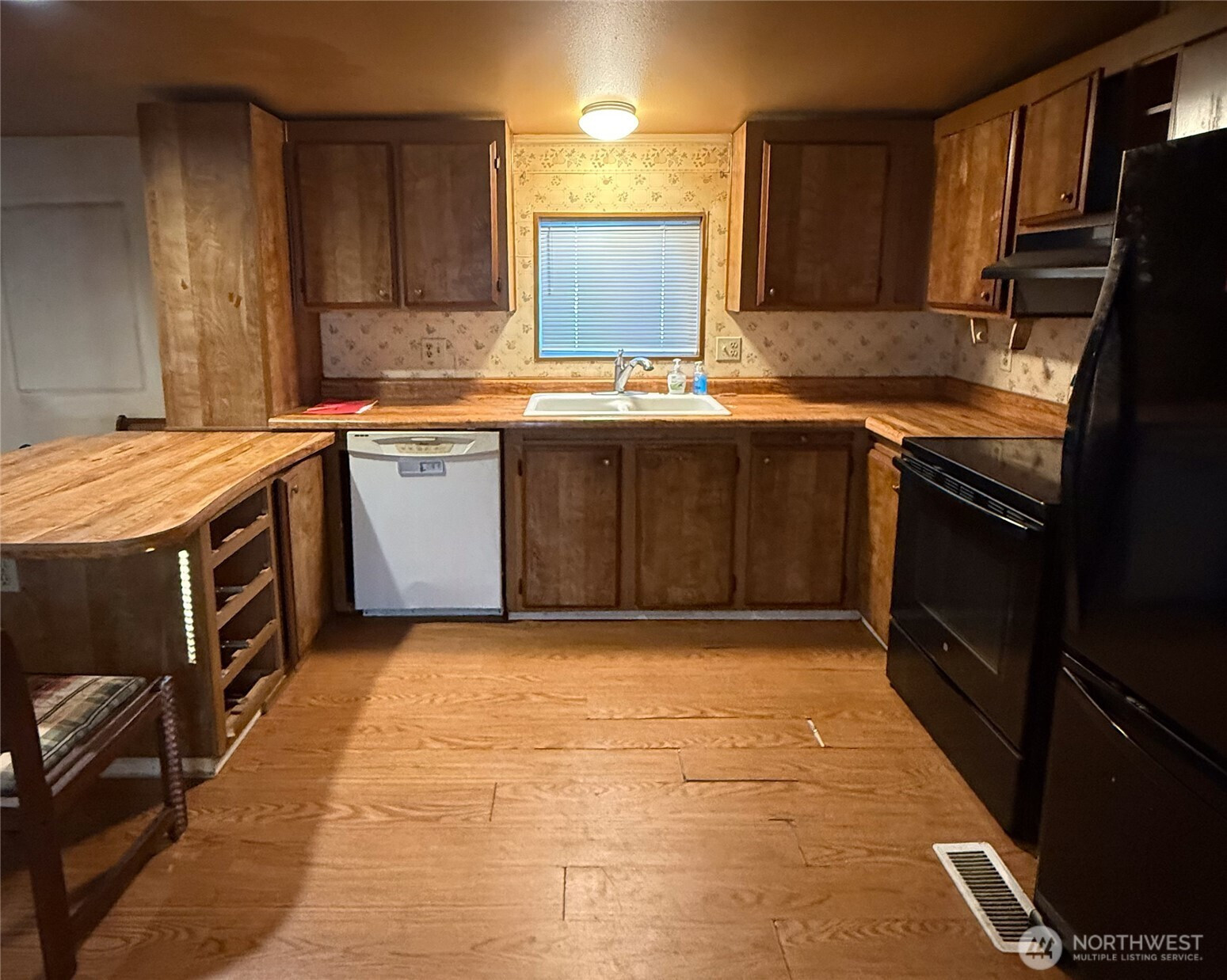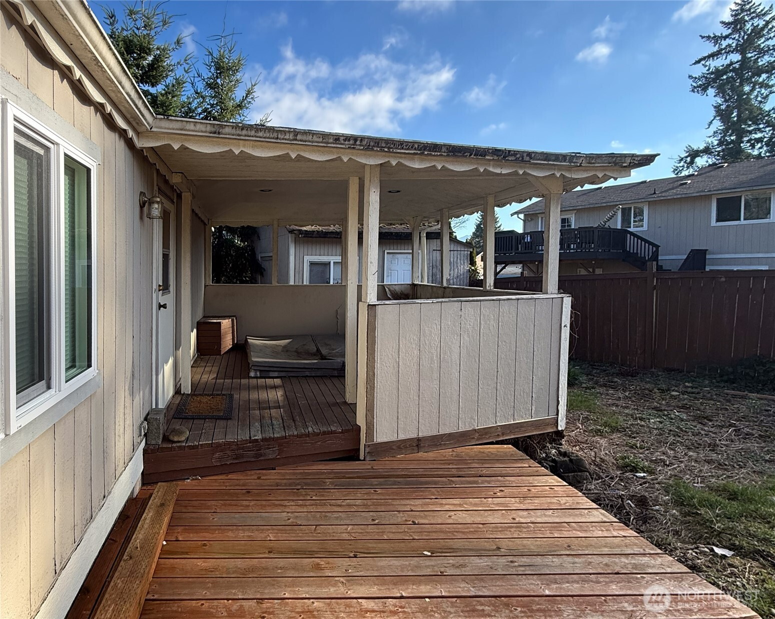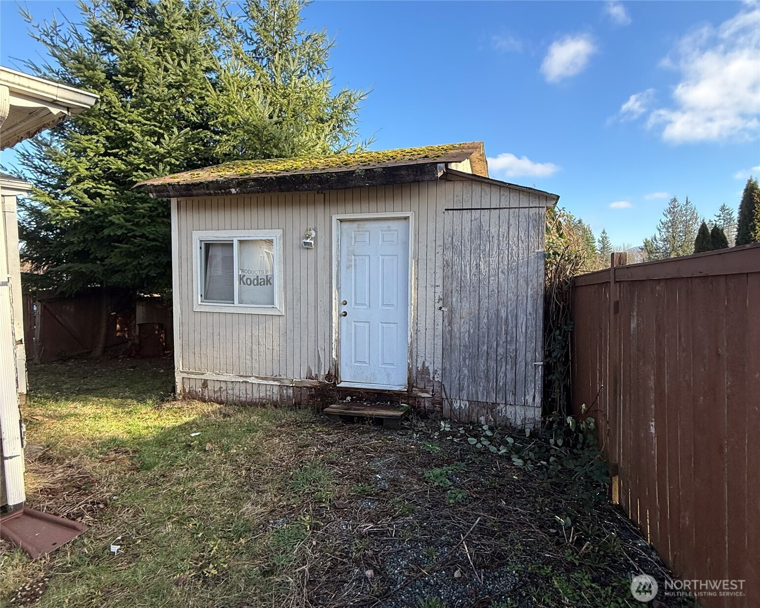 Investor opportunity in desirable Bonney Lake on a shy ΒΌ-acre lot. Fully fenced with concrete slab parking, covered front porch, and a spacious backyard offering room to enhance outdoor living. Property includes a gazebo with hot tub and a storage shed. Interior highlights include a large family room, vaulted cedar ceilings, skylights, and a free-standing wood stove. The kitchen opens to the living area, creating a functional layout with renovation potential. Bay windows add natural light, and the primary bedroom offers ample space for future upgrades. Ideal for investors or owner-occupants looking to add value through updates and personal touches. Solid features, generous lot size, and a strong location make this a compelling sweat equity opportunity.