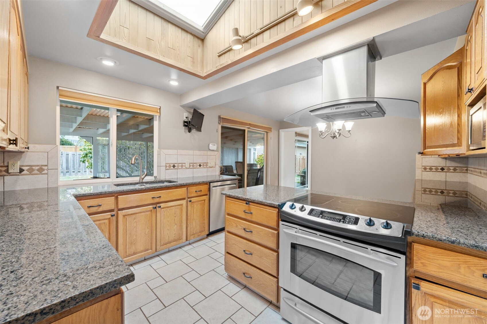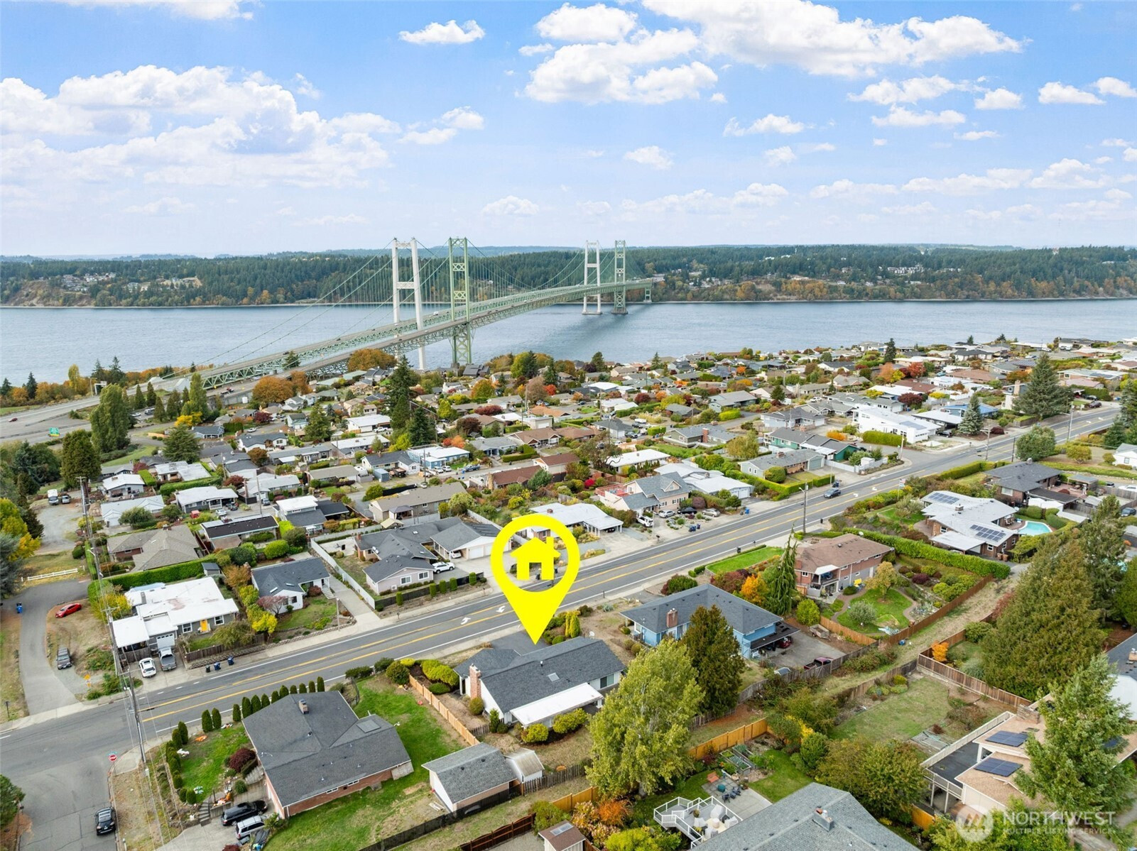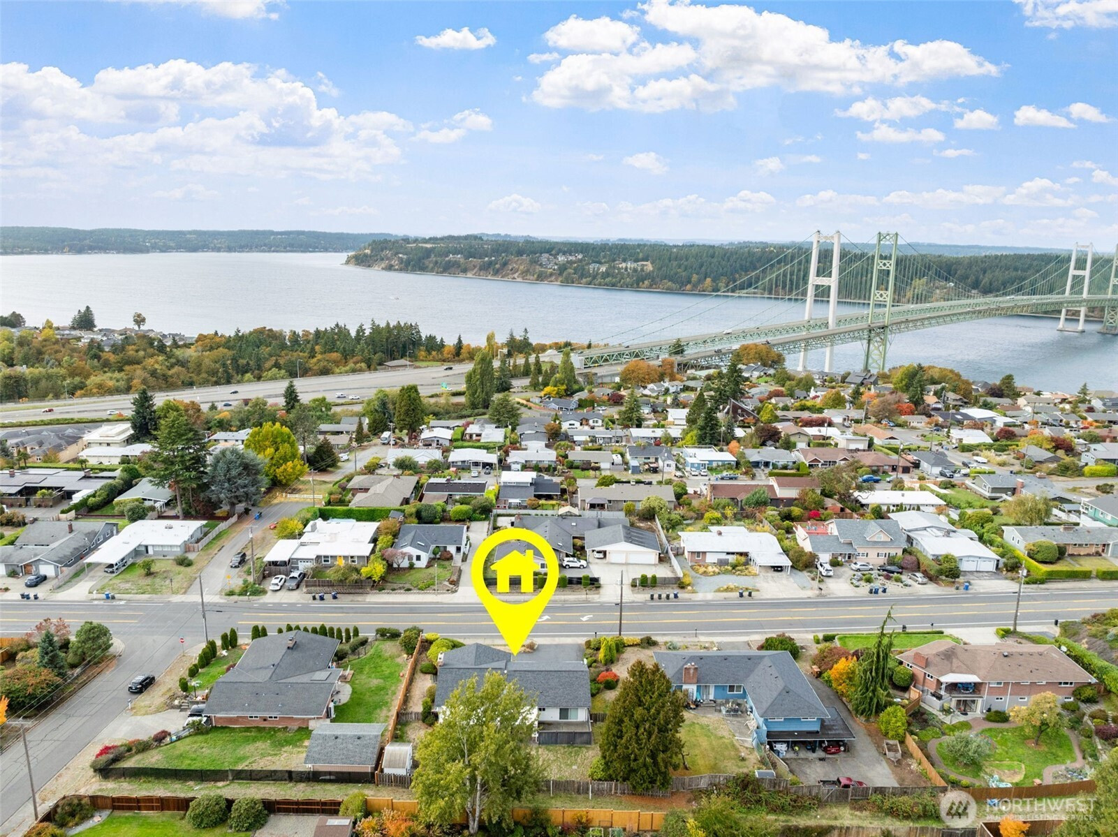 Timeless West End beauty w/ sweeping views of the Sound, mountains, & Narrows bridge! Classic design meets modern comfort w/ a brand-new spa-inspired primary bathroom & thoughtful updates throughout. Natural light fills spacious gathering areas w/ an inviting living room, gas fireplace & dining area ready for memorable meals. The well-appointed kitchen offers granite counters, stainless appliances, & skylight. Enjoy both covered & open patios overlooking the private backyard, ideal for entertaining. The lower level provides a spacious family room, second kitchen, & guest suite, perfect for multi-generational living or added flexibility. With a newer roof & Milgard windows, this home delivers enduring charm & everyday functionality.