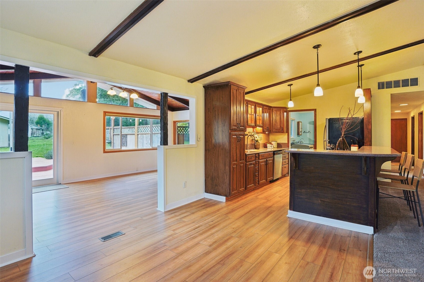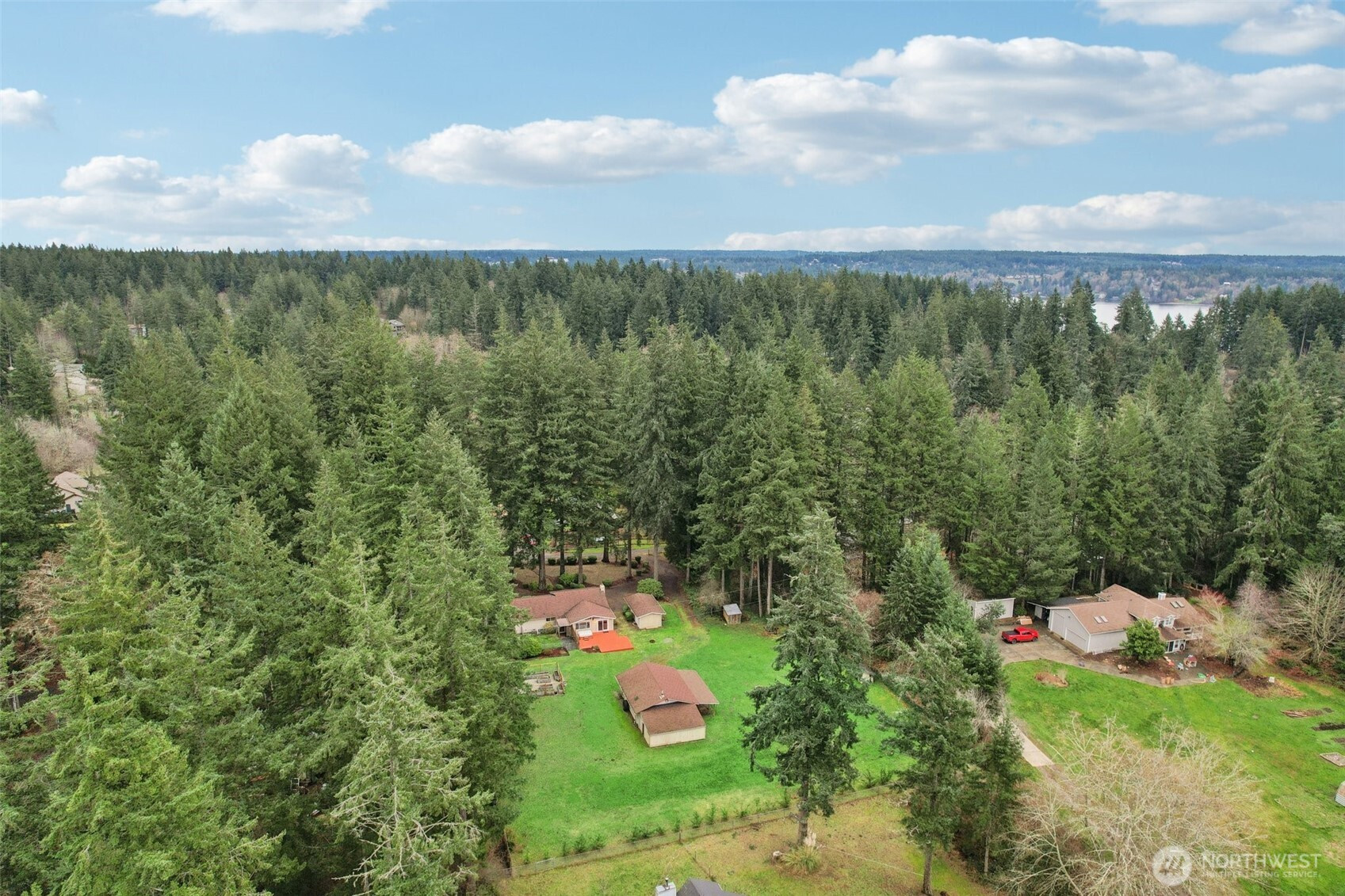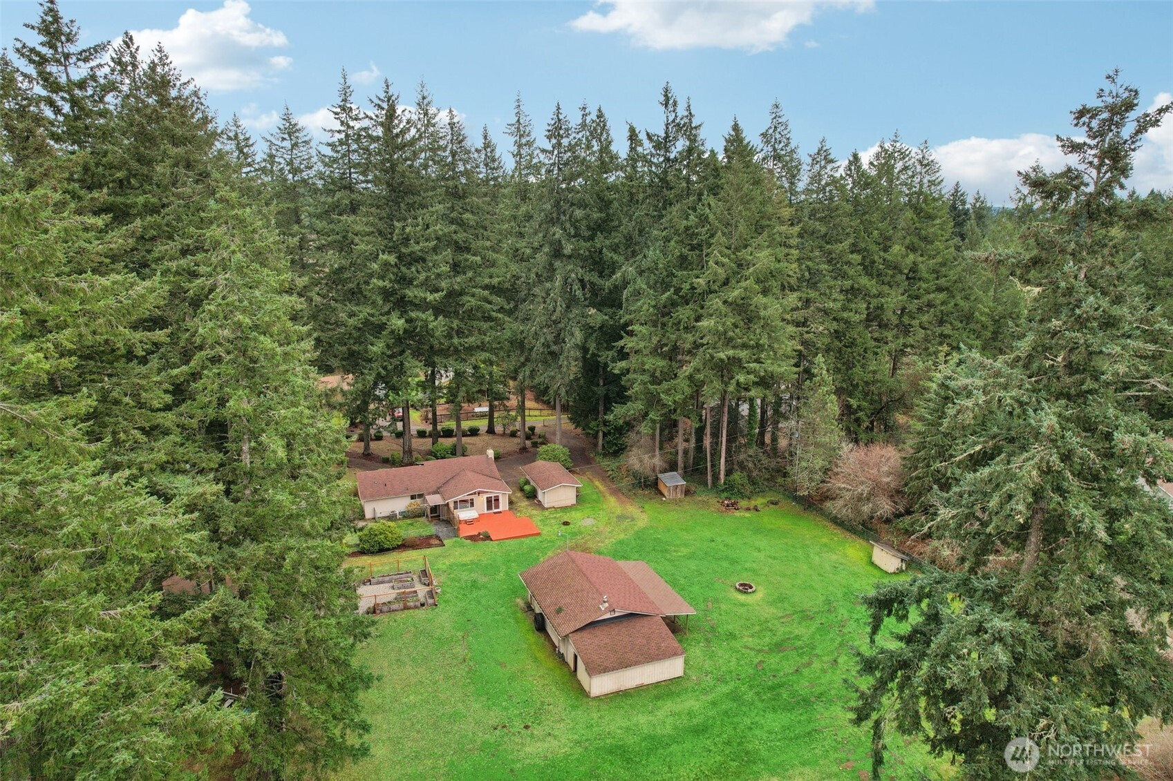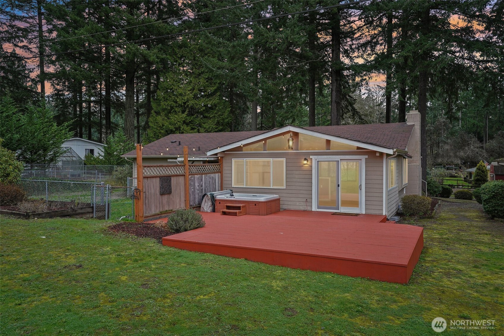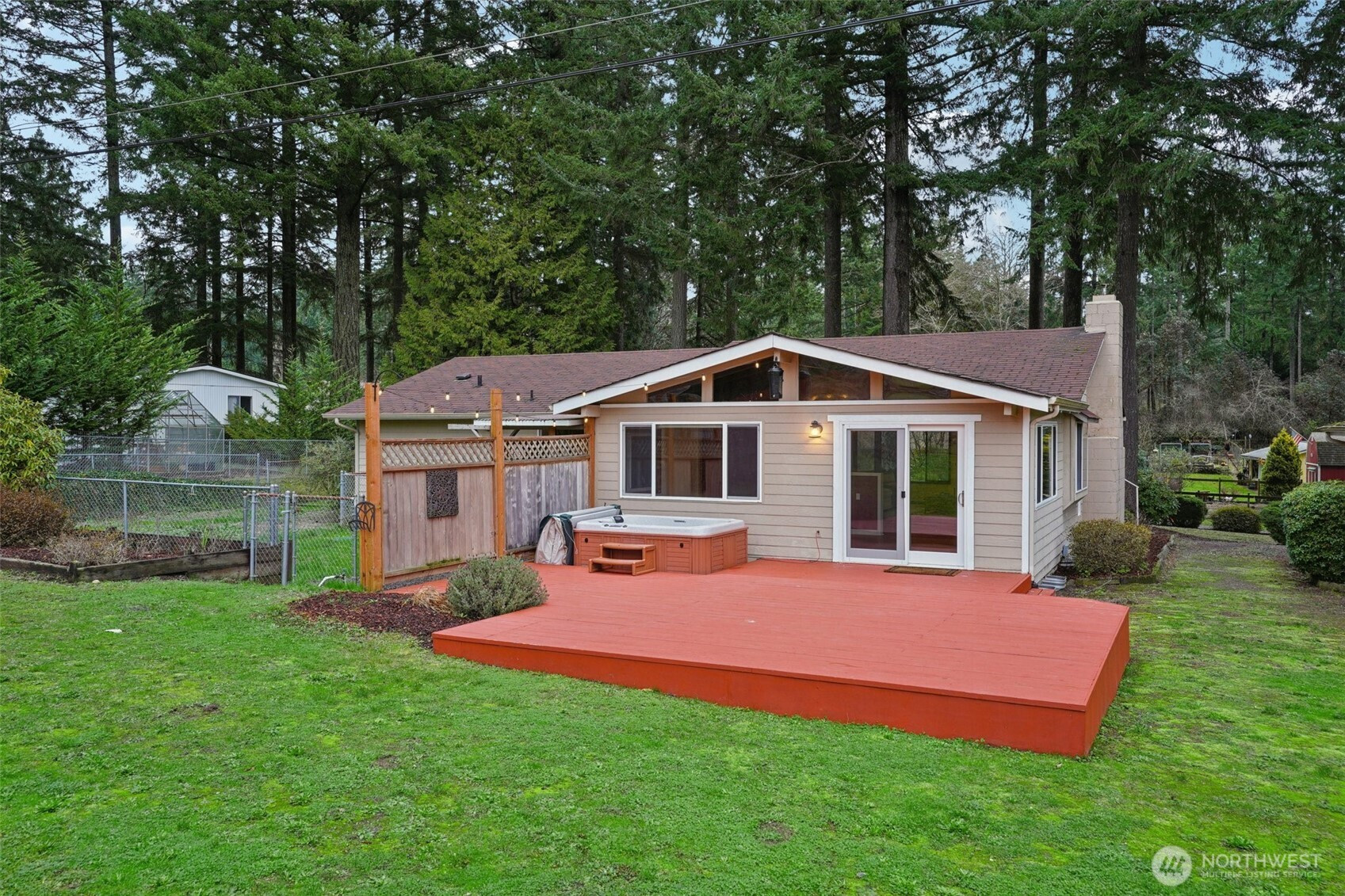Set beneath a canopy of towering Douglas firs in the peaceful woods of Gig Harbor, this warm and welcoming 2-bedroom rambler offers the kind of privacy and breathing room of a true retreat. Set back on 1.6 fully fenced acres, this home is wrapped in nature, with space to wander, garden, create, and unwind. Inside, rich wood tones and gleaming new floors set the stage for cozy evenings by the fireplace and easy everyday living, while an updated kitchen with rustic accents anchors the heart of the home. Step outside to a newer deck and sink into the hot tub, where starry nights and quiet mornings are part of the rhythm here. For hobbyists, gardeners, or anyone with toys to store, the detached home office turned sound studio and 800 sqft garage/shop open up endless possibilities. Fenced garden beds, a chicken coop, and animal friendly grounds invite a slower, more intentional lifestyle. This is country living with room to breathe, just minutes from Gig Harbor’s amenities - private, peaceful, and ready to be enjoyed.