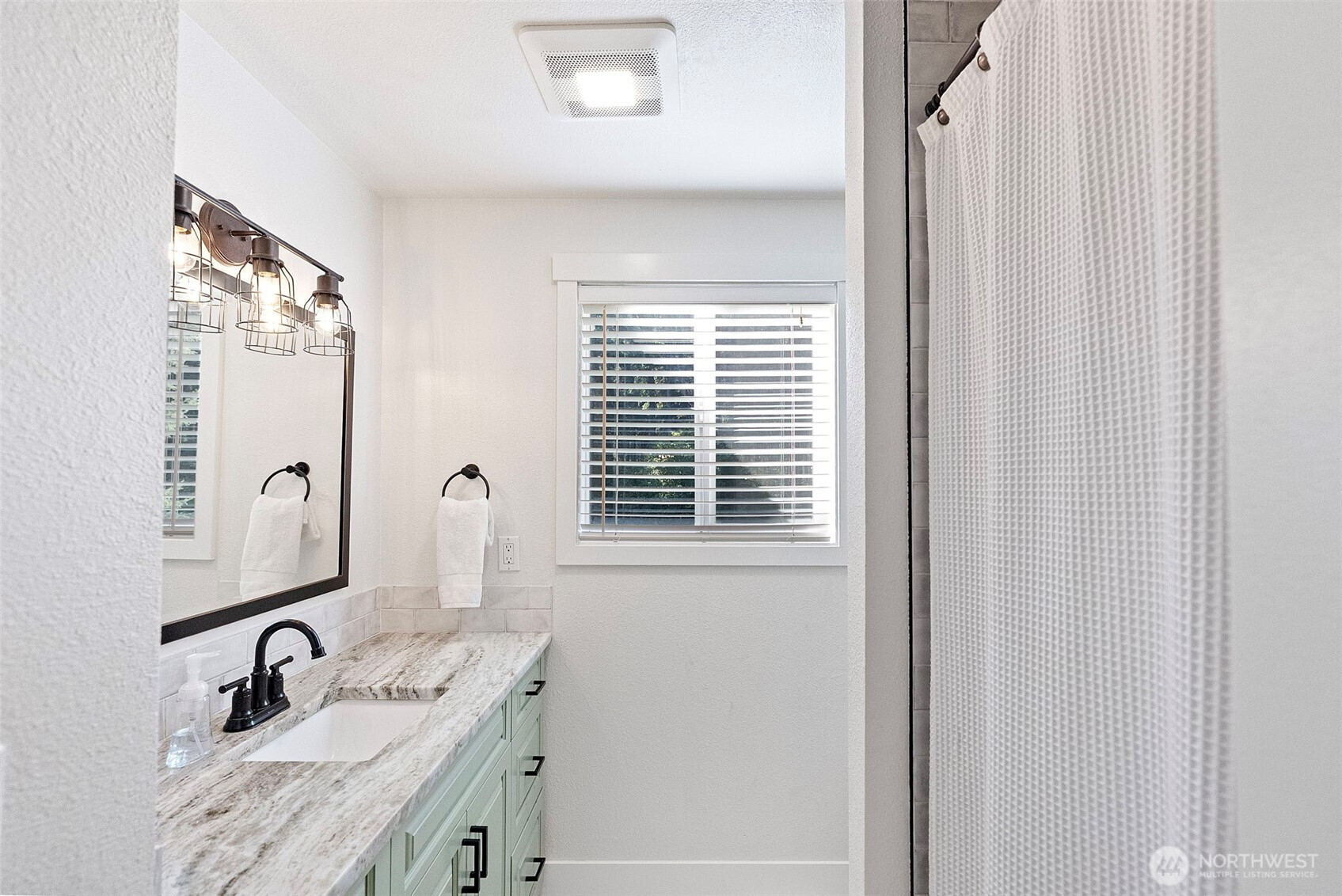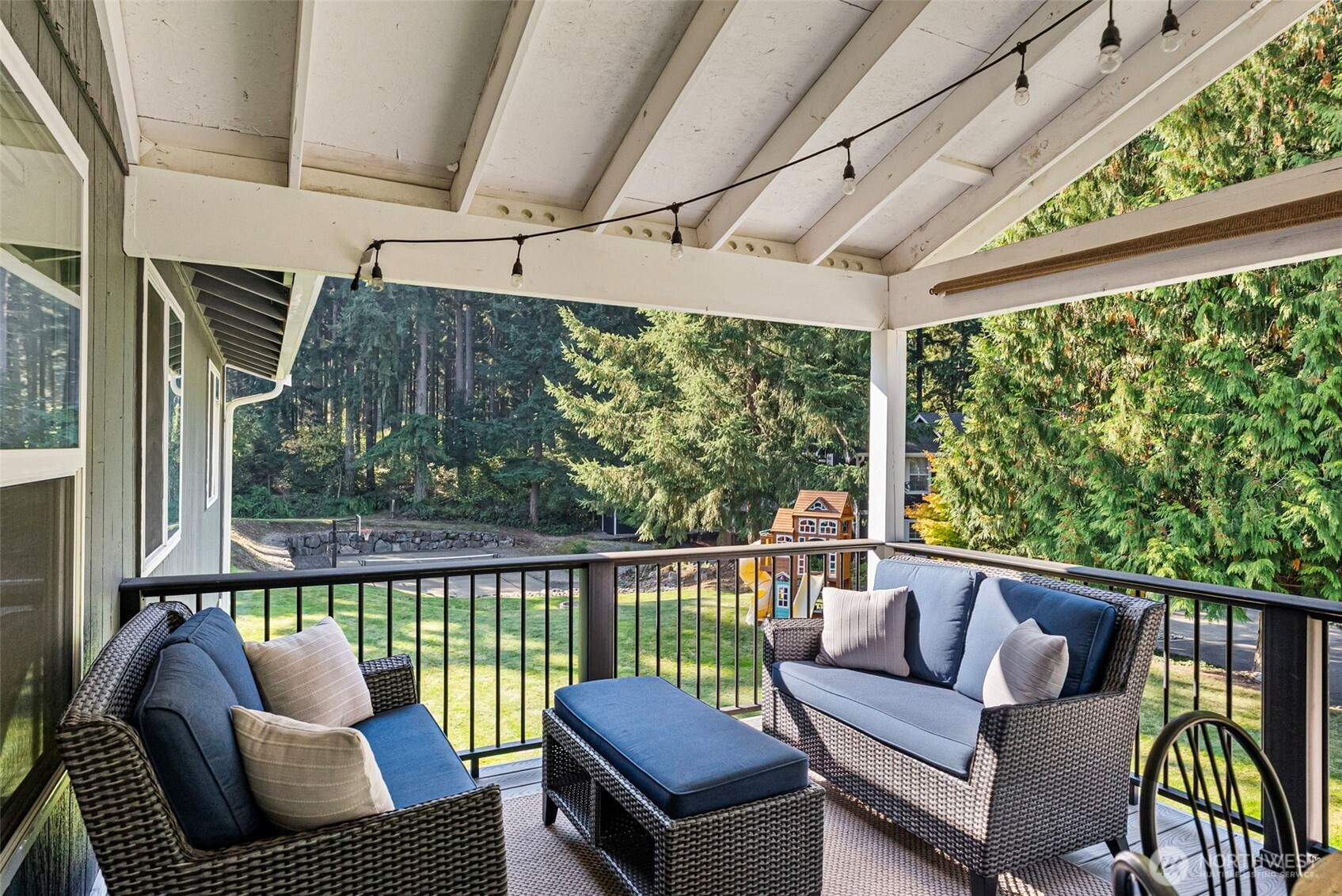 Nestled in a private cul-de-sac, on just shy of an acre and backing up to Pierce County's 100 Acre Woods, you will find this incredible home with sport court, RV Parking, and 5-car garage. Step inside the home to find gorgeously refinished hardwoods, kitchen that boasts a dual fuel oven, granite countertops, and open concept layout to cozy living room fireplace and doors that open to fully covered back deck. Primary bedroom has ensuite with clawfoot bathtub & heated tile floors. On the lower level you will find a 2nd living space with 2 additional rooms/1 bath, kitchen, and walkout to the perfectly manicured backyard & patio. Great for hosting or utilizing as a sublet! This home is a must see!