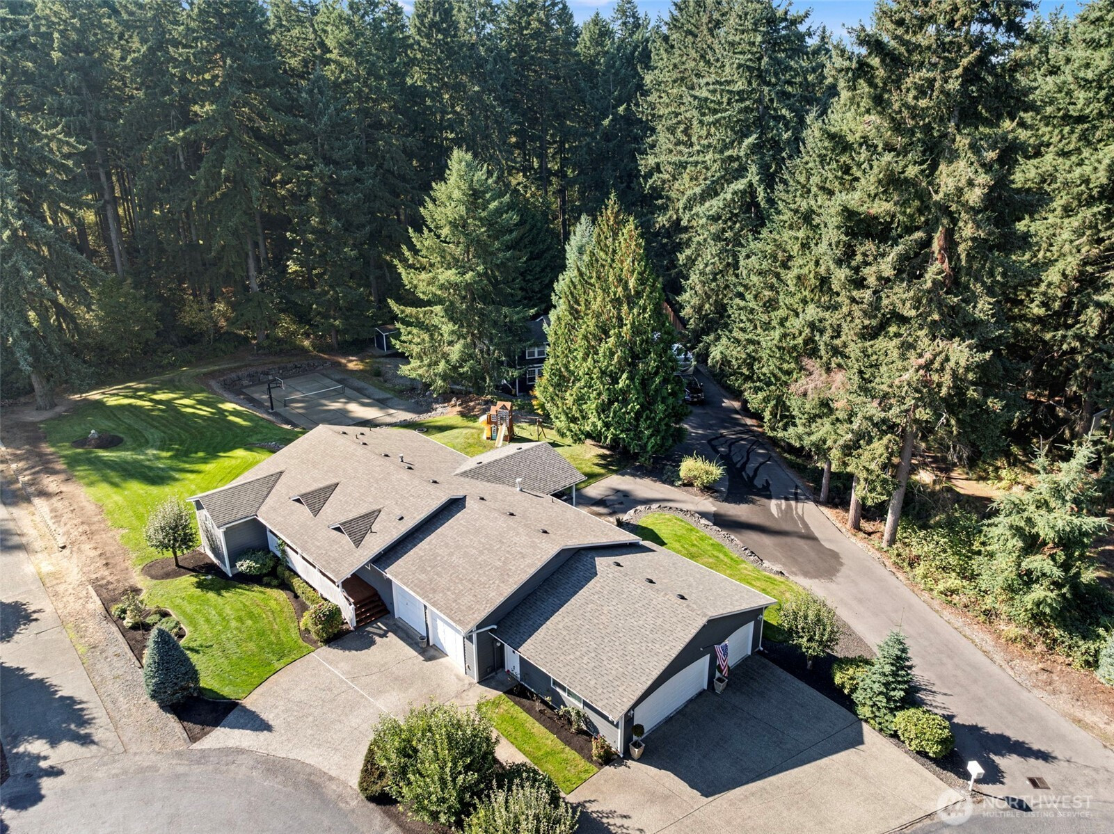 Nestled in a private cul-de-sac, on just shy of an acre and backing up to Pierce County's 100 Acre Woods, you will find this incredible 5 Bed/3 Bath home with sport court, RV Parking, and 5-car garage. Step inside the home to find gorgeously refinished hardwoods, kitchen that boasts a dual fuel oven, granite countertops, and open concept layout to cozy living room fireplace and doors that open to fully covered back deck. Primary bedroom has ensuite with clawfoot bathtub & heated tile floors. On the lower level you will find a secondary living space with 2 beds/1 full bath, kitchen, and doors that walk out to the perfectly manicured backyard & patio. Great for hosting or utilizing as a sublet! This home is a must see!