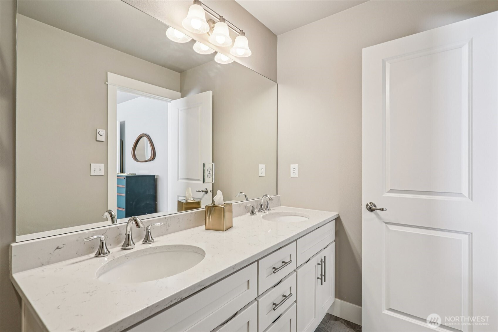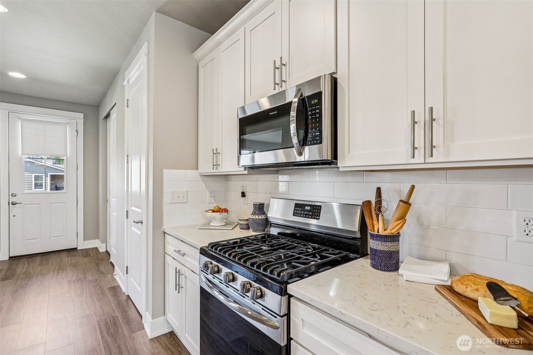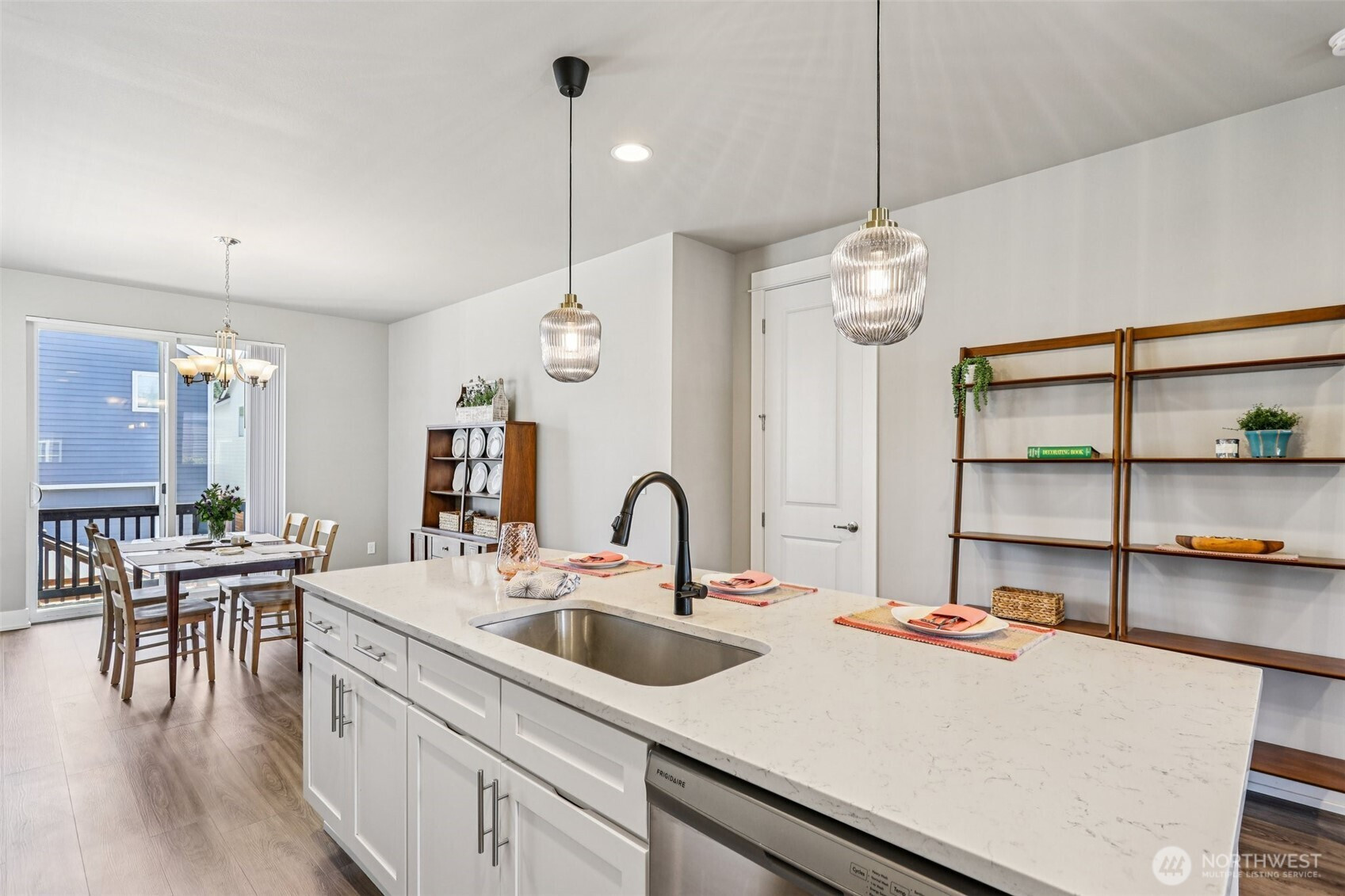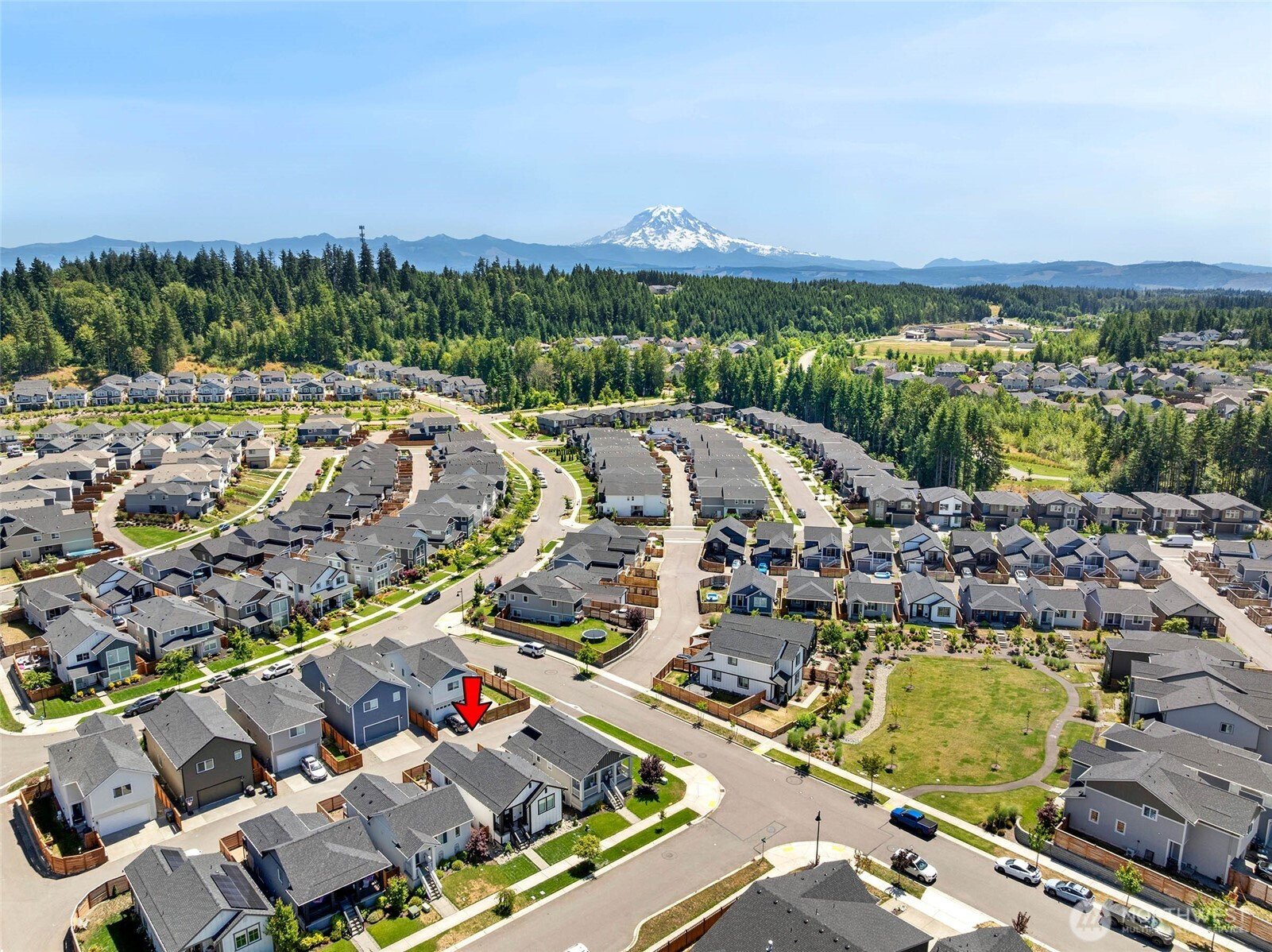 Welcome to this beautifully maintained, like-new Wingehaven plan home in the highly desirable Tehaleh community! This 3-bedroom, 2-bath gem offers 1,685 sq ft of light-filled living space & a peek-a-boo view of Mt. Rainier from the back patio. Surrounded by nature, enjoy miles of scenic hiking trails just steps from your door. The open-concept design features a modern kitchen w/SS appliances, quartz countertops w/bar seating, a dedicated dining area, & a great room—perfect for entertaining. Relax year-round under the covered back patio. Located in the Sumner-Bonney Lake SD, this home blends comfort, style, & outdoor living. Don't miss it!