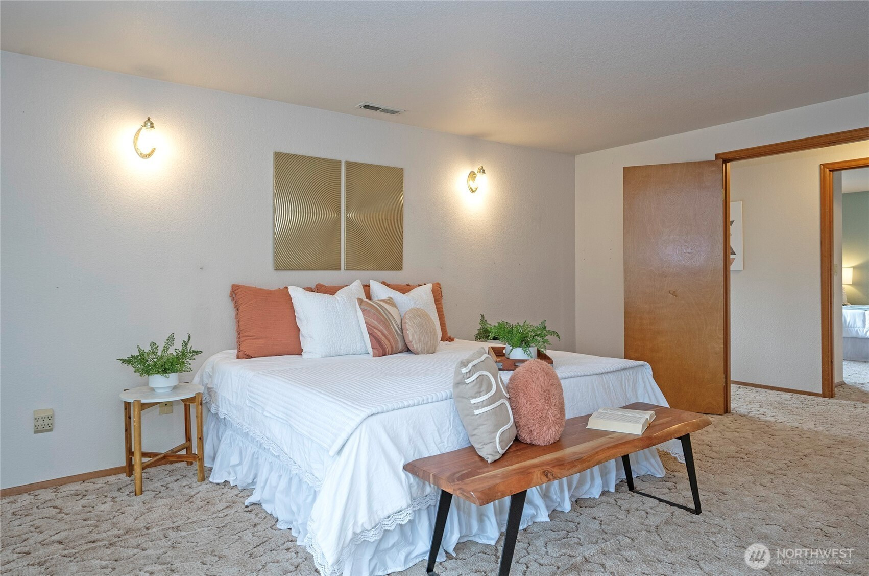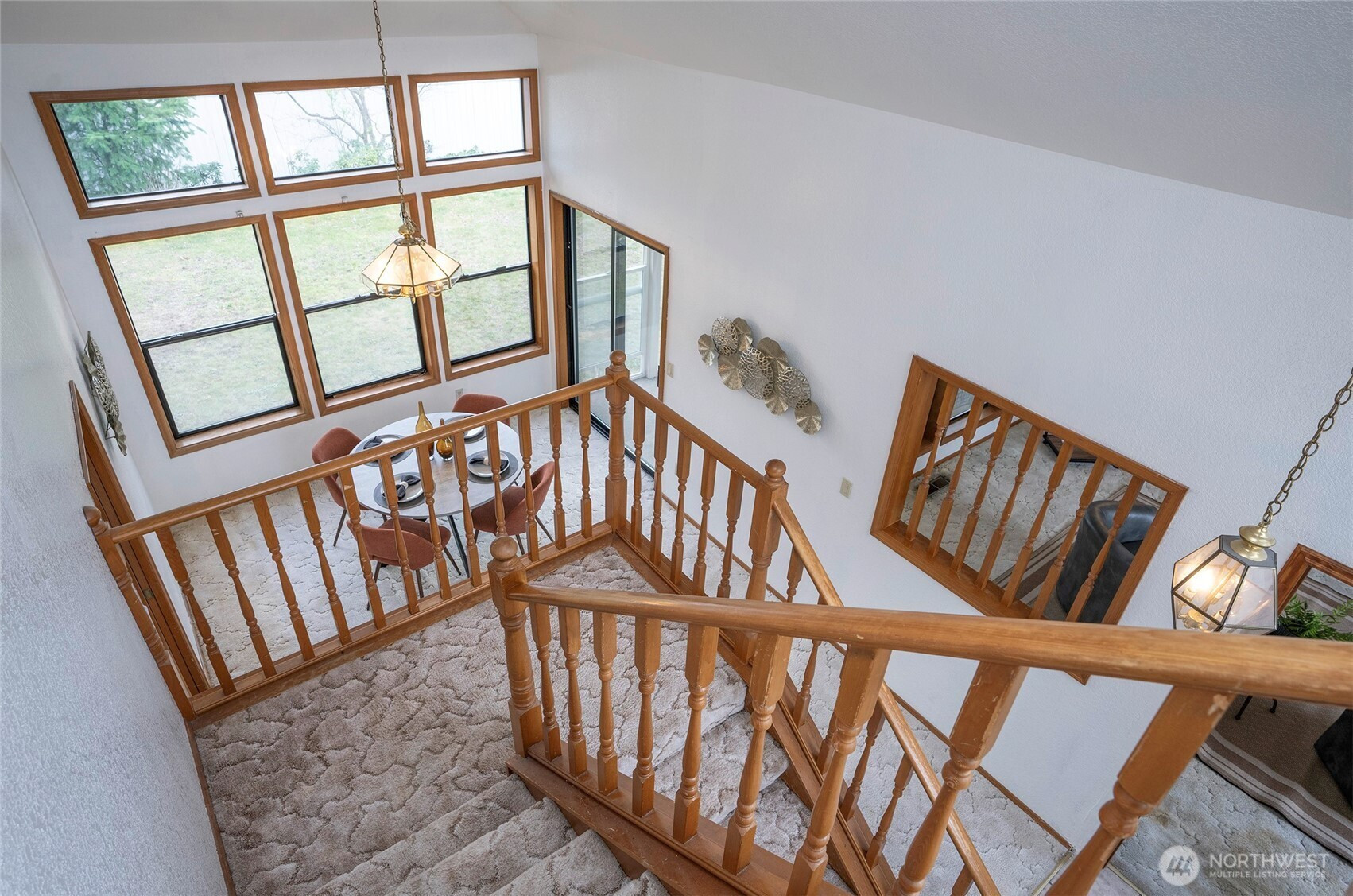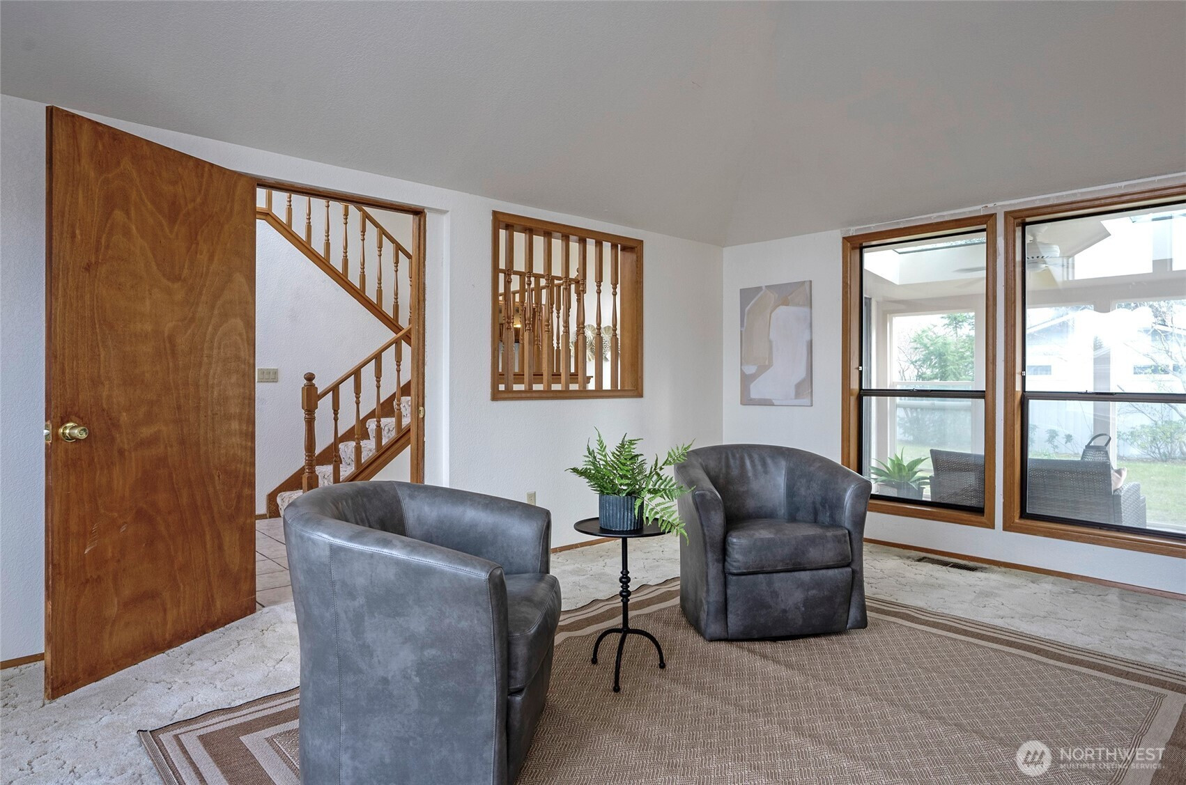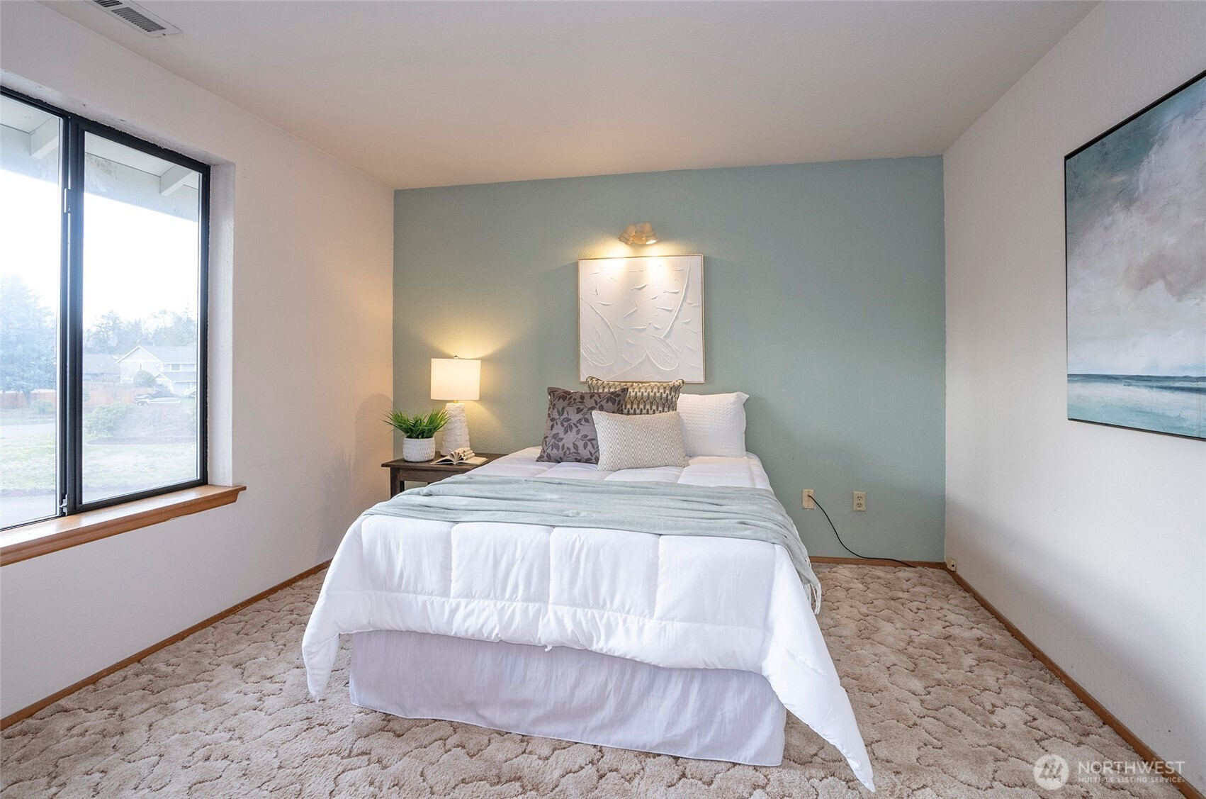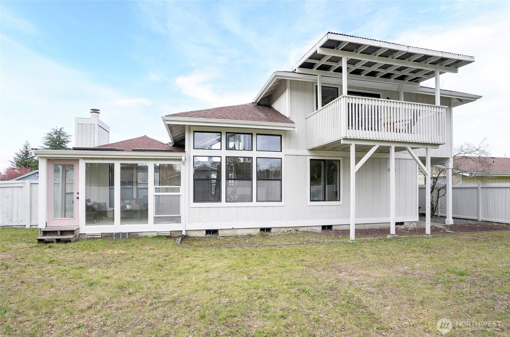 Spacious and full of potential, this 3-bedroom, 3-bath home sits on a fully fenced .25-acre lot in the highly desirable Woodcreek neighborhood—where homes rarely come available. Ideally located near Spanaway Loop, JBLM, and major freeways, this home offers both convenience and a peaceful neighborhood setting. Built in 1987 by Crest Builders, this solid NW contemporary home has been loved and remained with its original owner since day one, and is ready for its next owner to make it their own. Asymmetrical rooflines, and larger vertical windows, step inside to soaring ceilings, dramatic angles, and a striking staircase framed by oversized windows that fill the space with natural light. The layout offers flexibility with multiple living spaces, including a beautiful sunroom and a main-level room that can function as another living area, office or flex space. Upstairs, the spacious primary suite features an en-suite bathroom, walk in closet, and its own private deck—perfect for quiet mornings or winding down in the evening. 2 more bedrooms and full bath complete the upper floor. With great bones, a 2-car garage, and a generous corner lot, this home presents a rare opportunity to personalize and build equity in a sought-after neighborhood.
