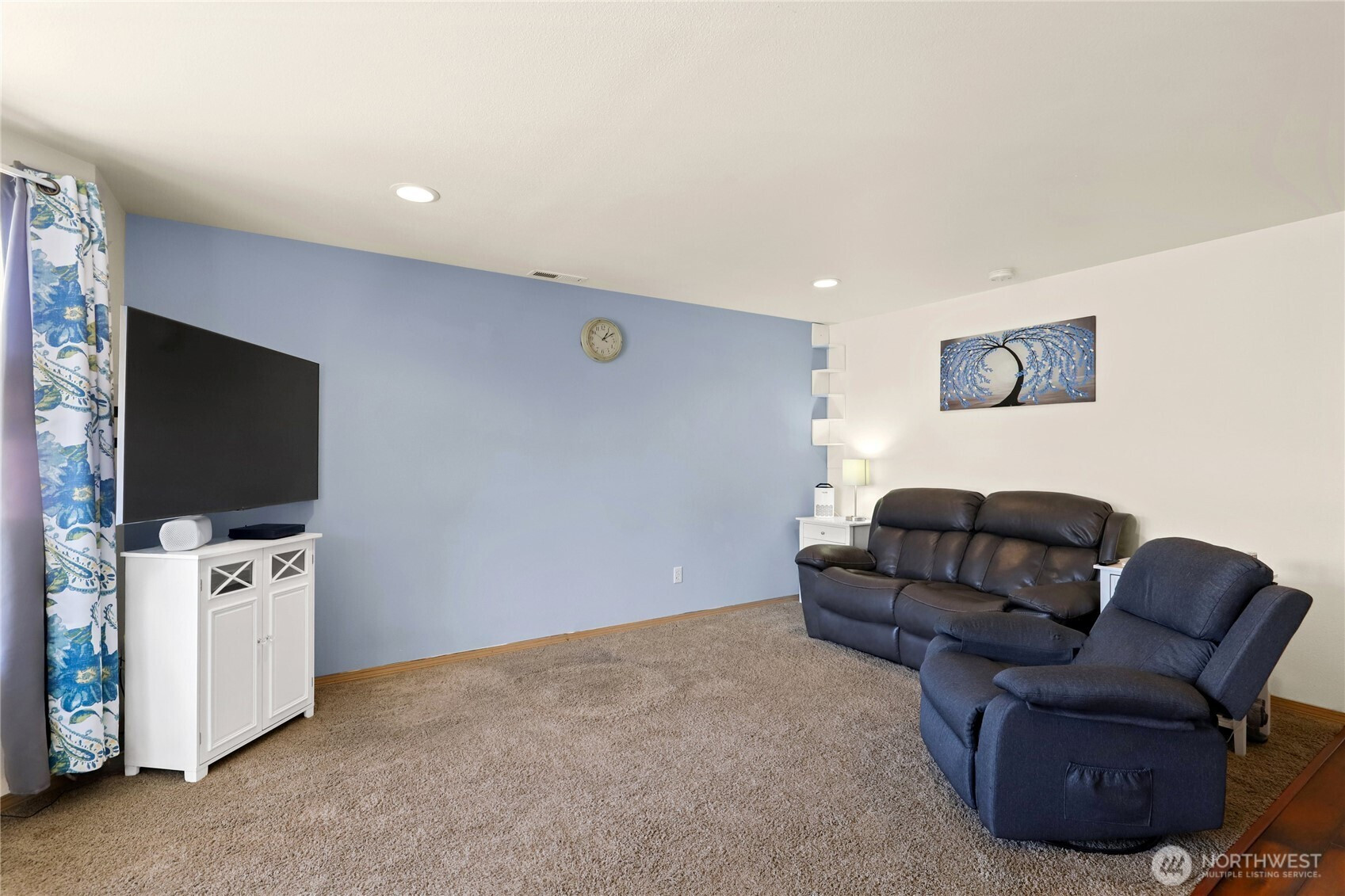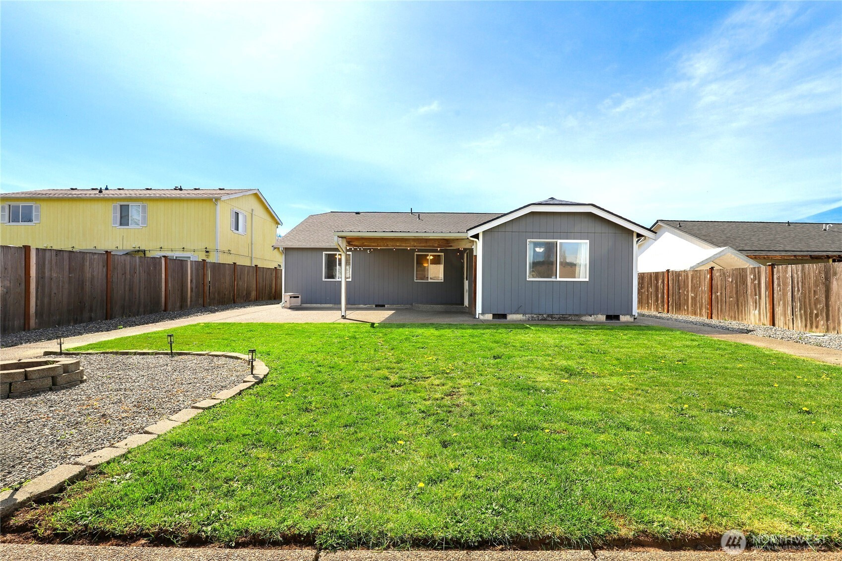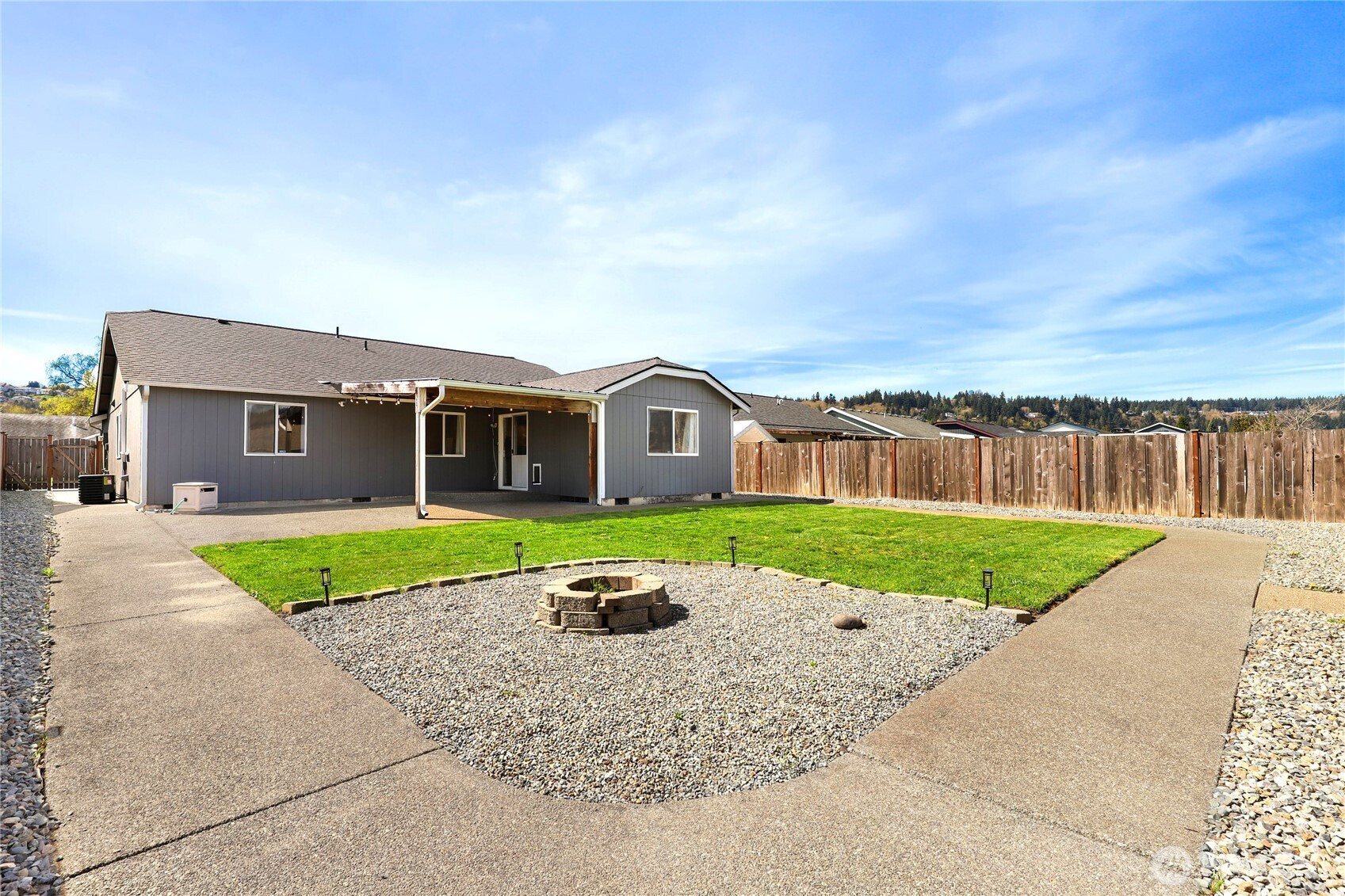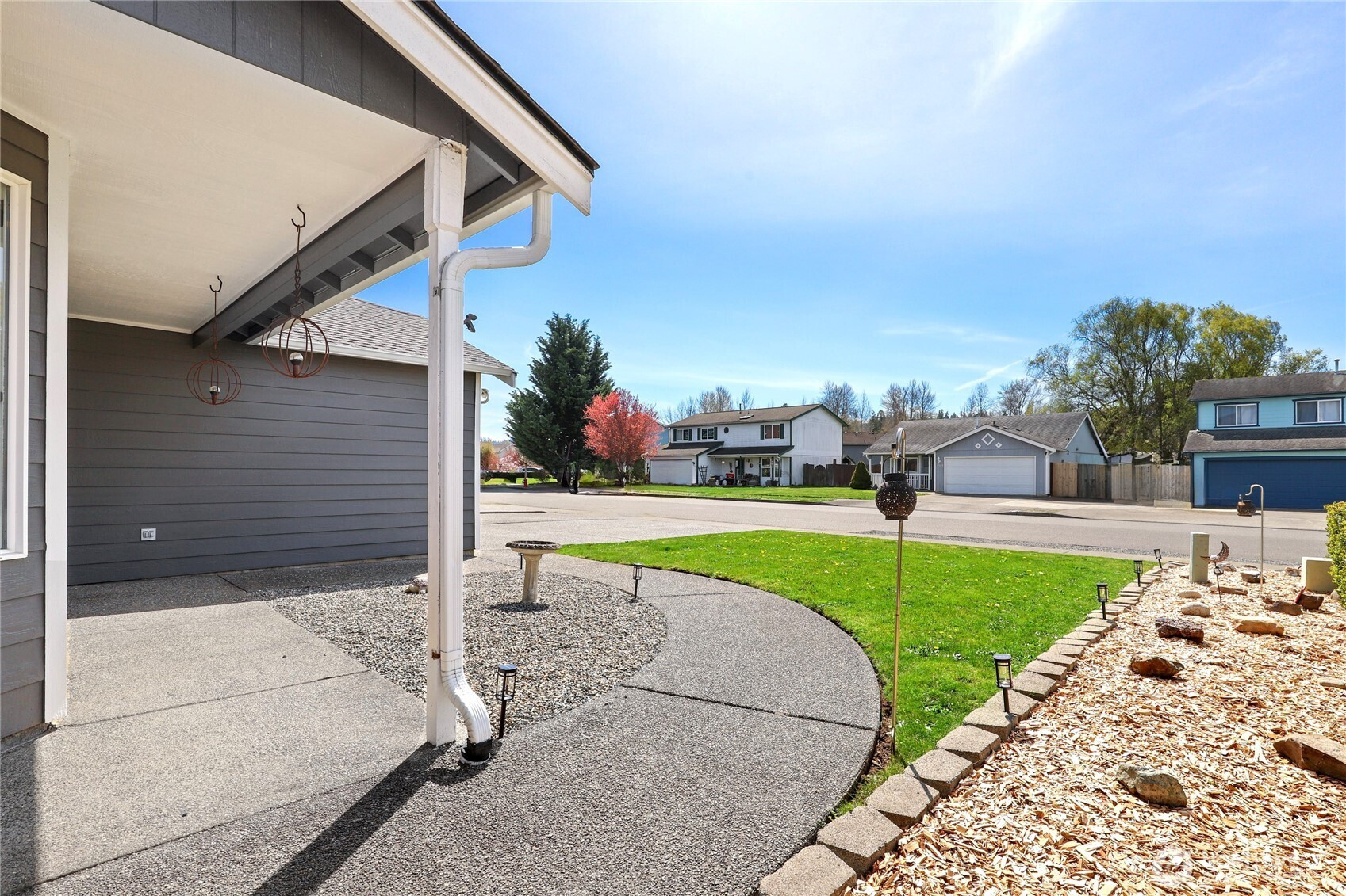 Enjoy the ease and convenience of single-level living in this exceptional rambler! This beautifully maintained home offers comfort, style, and stunning surroundings. Thoughtfully designed with low-maintenance landscaping, the curb appeal is truly exceptional. Inside, you’ll find 3 well-appointed bedrooms and 1.75 newly tiled baths, along with an oversized 2-car garage for added convenience. The cozy living room features a charming bay window that fills the space with natural light, creating a warm and inviting atmosphere. The spacious island kitchen is perfect for gathering and everyday living, complete with engineered hardwoods, carpeted rooms, and the added bonus of all major appliances included. Step outside to an extra-large patio designed for entertaining or relaxing while overlooking the fully fenced backyard. Enjoy ample space for outdoor activities, along with a fantastic campfire area ideal for memorable evenings. To top it all off, take in the breathtaking views of Mt. Rainier from your own property. Conveniently located near a golf course and with no HOA dues, this home blends comfort, functionality, and scenic beauty, ready to welcome its next chapter.