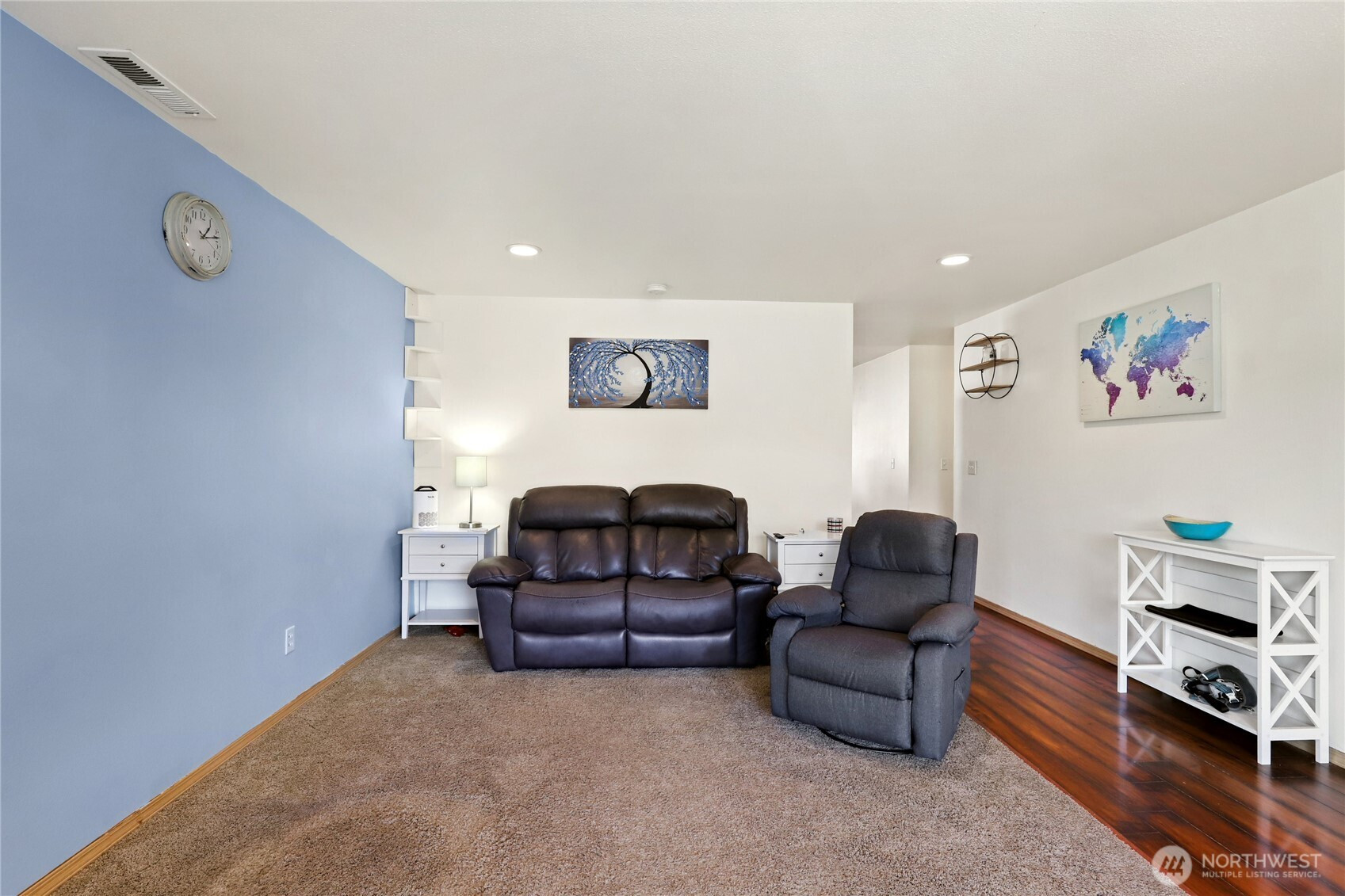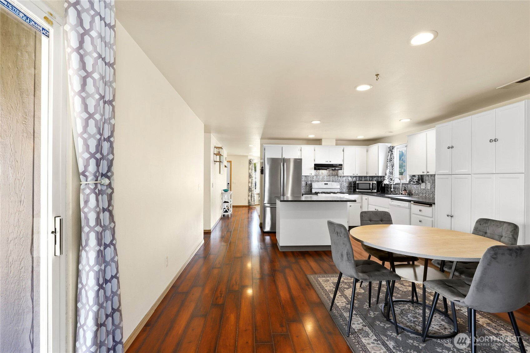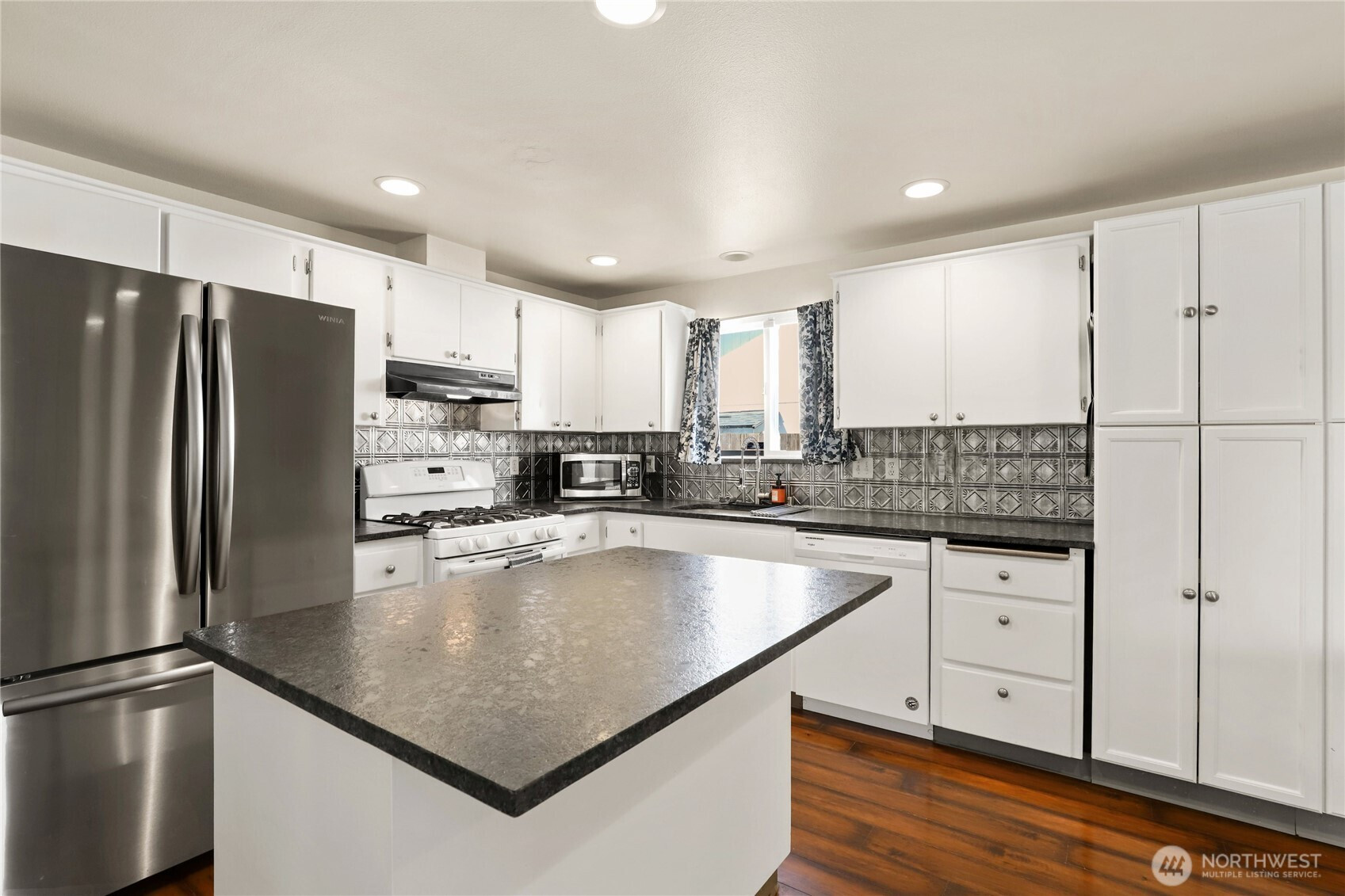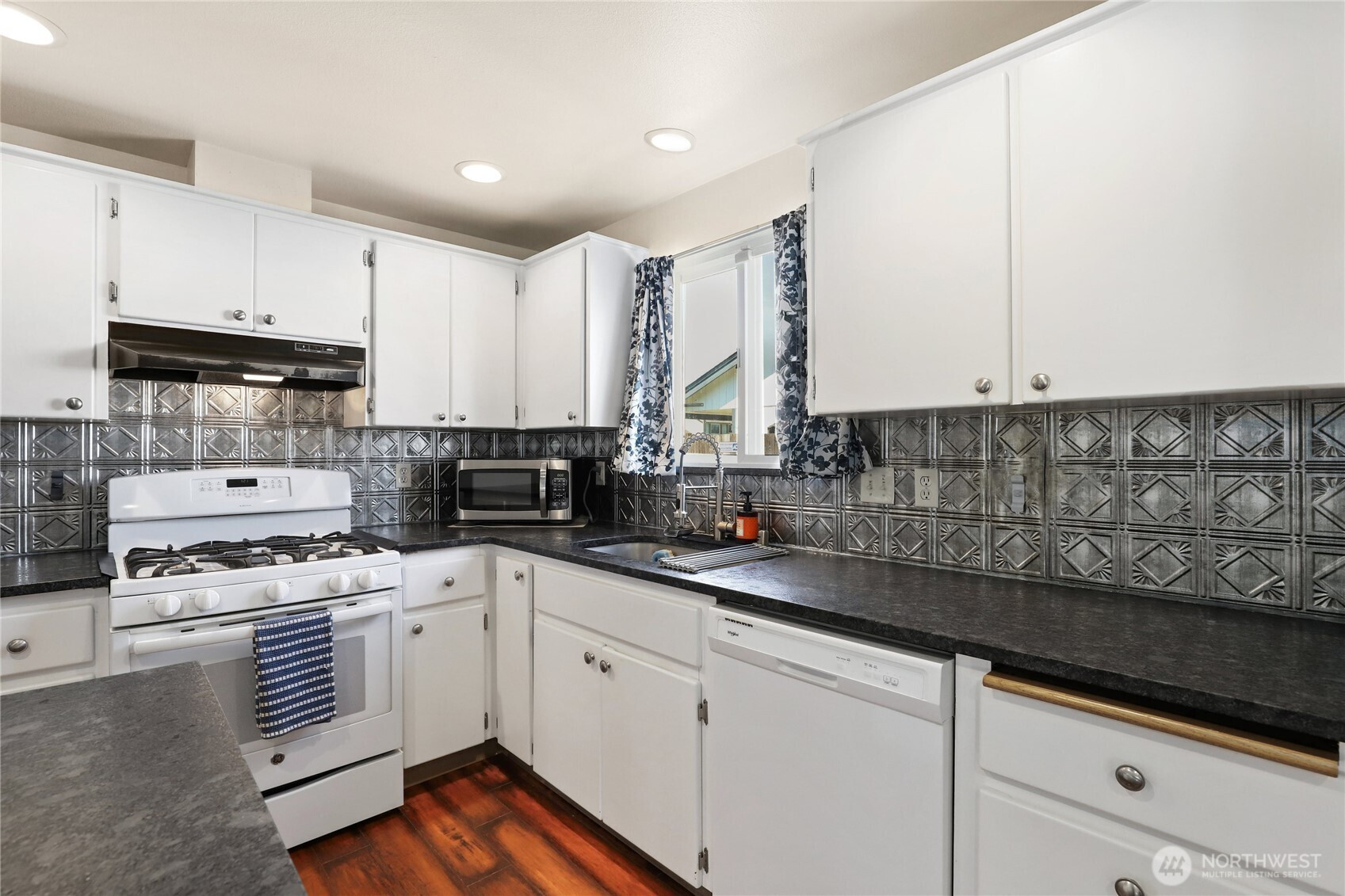 Enjoy the ease and convenience of single-level living in this exceptional rambler! This beautifully maintained home offers comfort, style, and stunning surroundings. Thoughtfully designed with low-maintenance landscaping, the curb appeal is truly exceptional. Inside, you’ll find 3 well-appointed bedrooms and 1.75 newly tiled baths, along with an oversized 2-car garage for added convenience. The cozy living room features a charming bay window that fills the space with natural light, creating a warm and inviting atmosphere. The spacious island kitchen is perfect for gathering and everyday living, complete with engineered hardwoods, carpeted rooms, and the added bonus of all major appliances included. Step outside to an extra-large patio designed for entertaining or relaxing while overlooking the fully fenced backyard. Enjoy ample space for outdoor activities, along with a fantastic campfire area ideal for memorable evenings. To top it all off, take in the breathtaking views of Mt. Rainier from your own property. Conveniently located near a golf course and with no HOA dues, this home blends comfort, functionality, and scenic beauty, ready to welcome its next chapter.