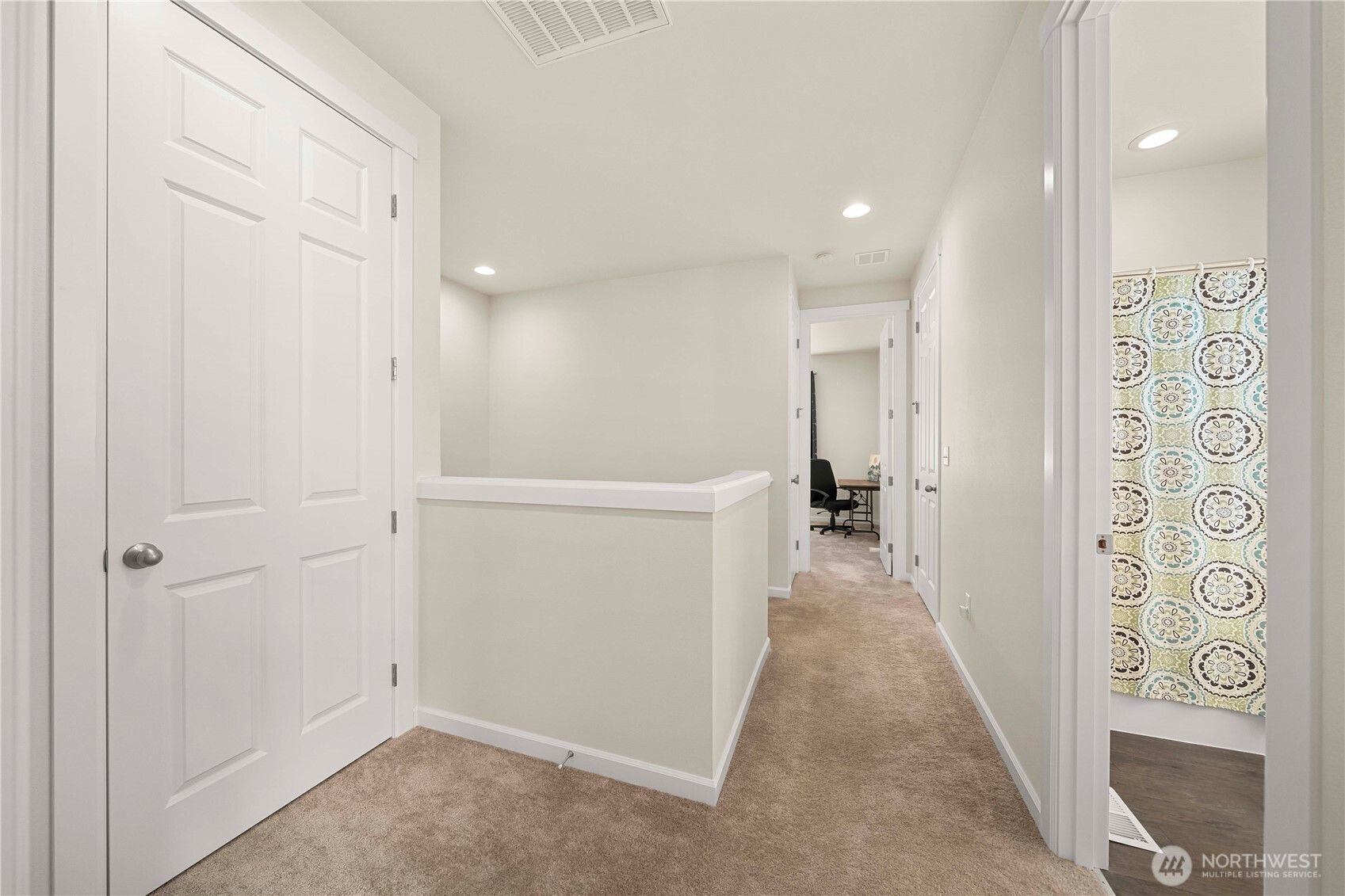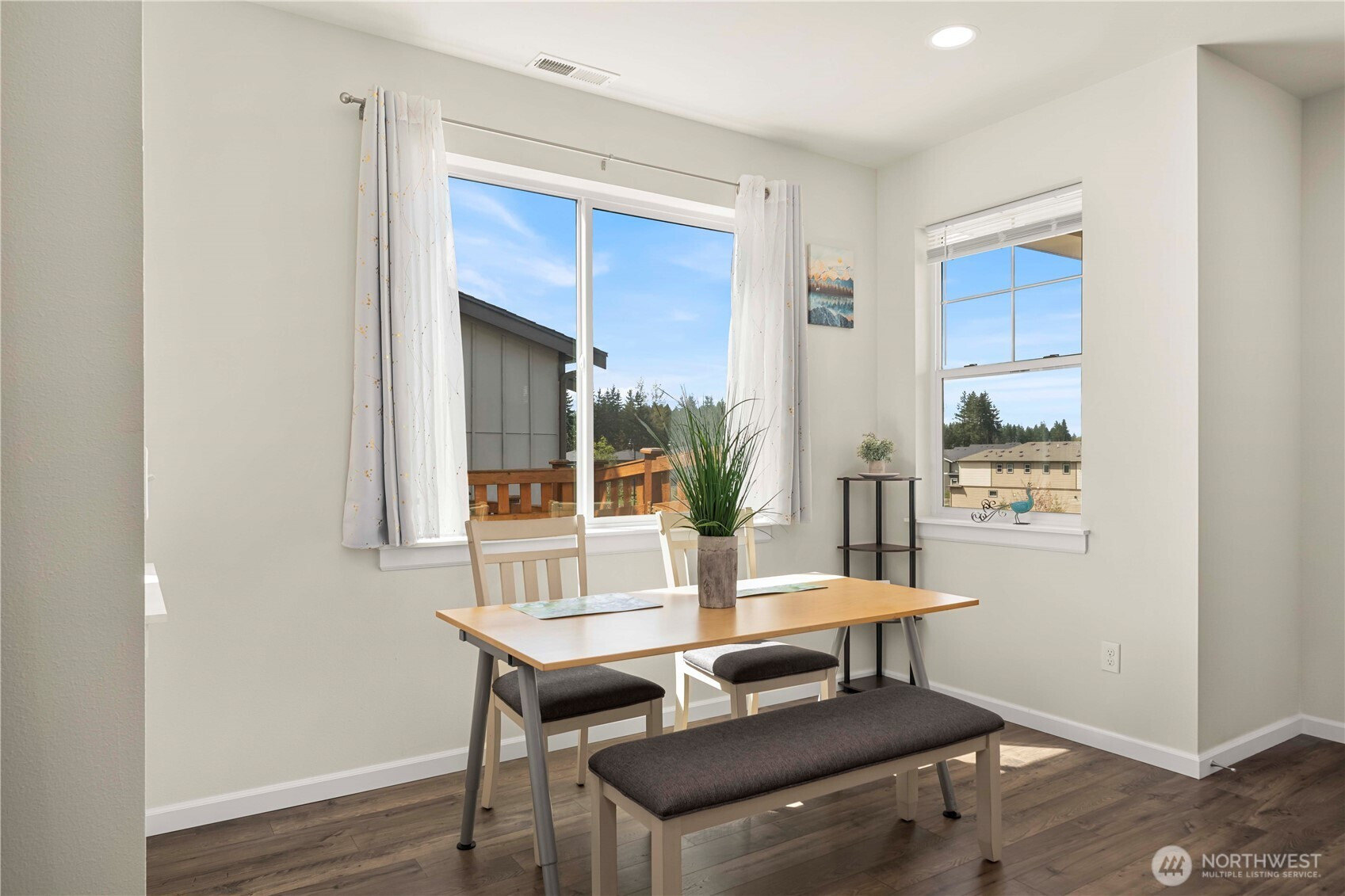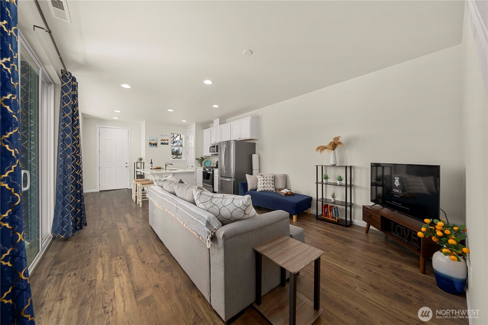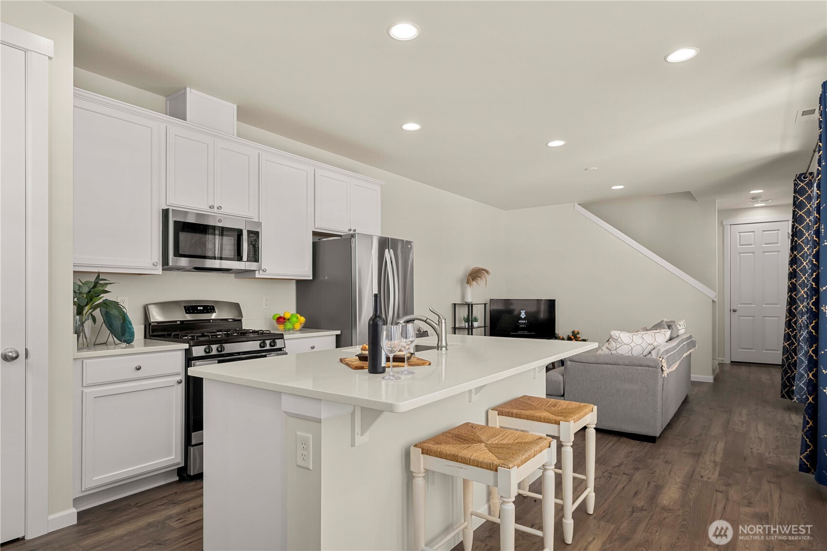 Stunning Richmond American Homes resale! The main floor of the beautiful Chicago plan offers soaring high ceilings, crisp white millwork, and oversized interior doors, creating an airy and upscale ambiance. Entertain with ease in the open-concept living and dining areas, or whip up gourmet meals in a well-appointed kitchen boasting quartz countertops, a large island, and a spacious pantry. The signature center-meet doors transition seamlessly to a private covered patio perfect for morning coffee or year-round BBQs, while the covered front porch offers a serene territorial view. Upstairs, retreat to a luxurious primary suite with a walk-in closet, alongside two additional bright bedrooms, a full bathroom, and a convenient laundry area. Complete with a 2-car garage. Situated in the top-rated Sumner-Bonney Lake School District, this home puts you minutes away from ALL that Tehaleh has to offer, from 40+ miles of trails and parks to local dining, playgrounds, shopping, and so much more!