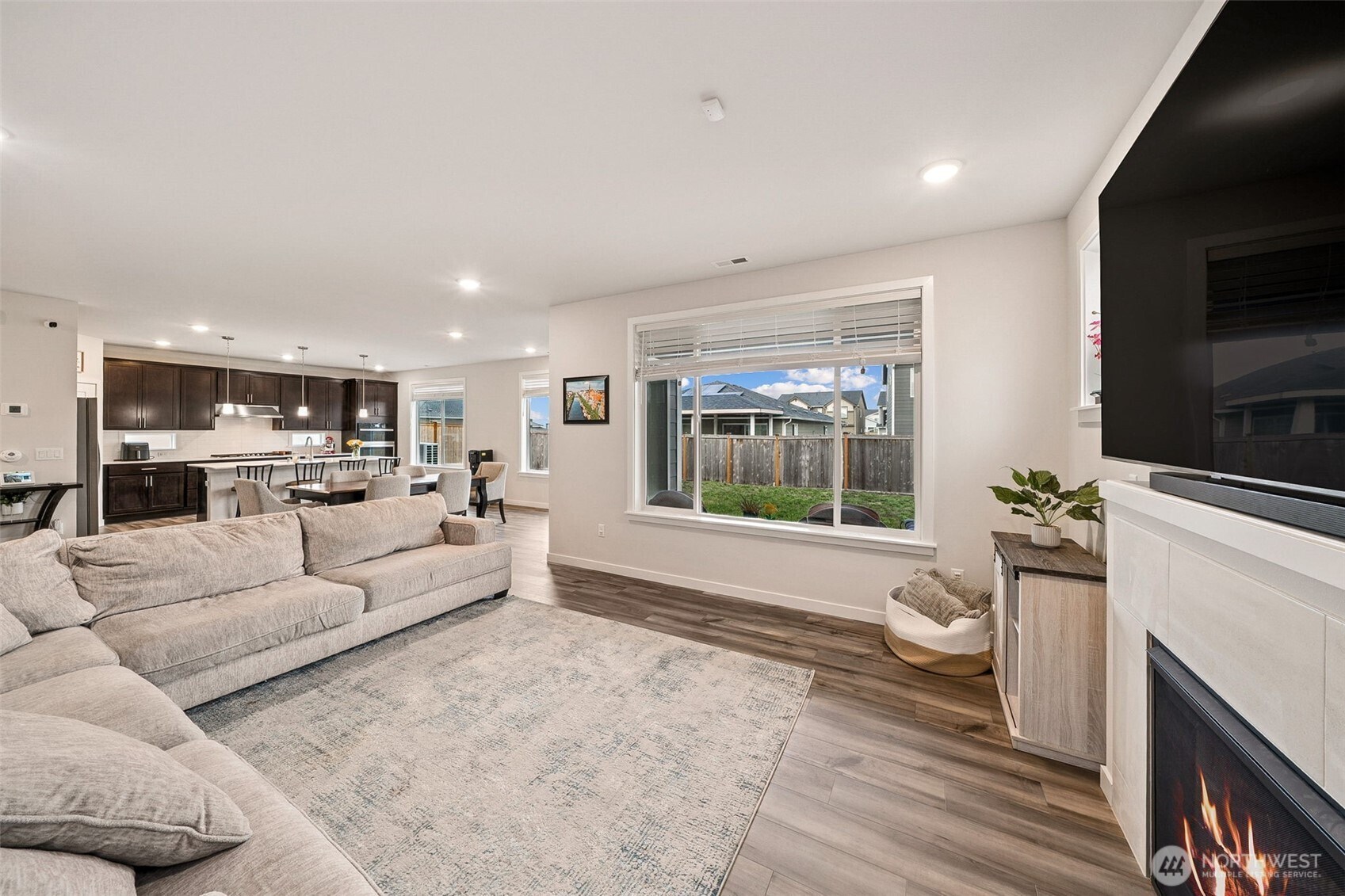 Better than new Century Homes resale offering the perfect blend of comfort & style. Nestled in a peaceful cul-de-sac, this spacious home ft. a welcoming living room W/cozy gas FP & stylish LVP flooring. The open concept layout is ideal for gatherings. The gourmet kitchen is a chef's dream, W/sleek quartz counters, dbl oven, gas range, & WI Pantry- all appliances stay! Versatile office/den on the main. Upstairs, you'll find a luxurious primary bedroom W/WIC & spa-like 5-piece en-suite bath. 3 additional guest rooms + full bath. Enjoy breathtaking views of Mt. Rainier from the bonus room. Laundry rm pre-plumbed for sink & W/D stay! Stylish faux wood blinds throughout! Private fully fenced back yard W/Patio space & A/C for year round comfort!