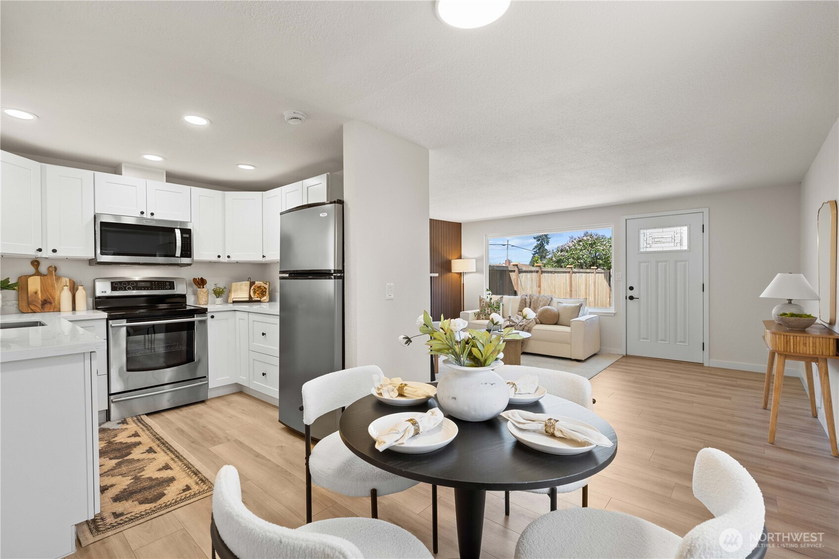 Fully remodeled 2-bedroom, 1-bath home in Lakewood offering modern updates and convenient access to local amenities. This move-in ready property features all-new wide plank vinyl flooring, a completely updated kitchen with stainless steel appliances, quartz solid surface countertops, and a well-designed layout for everyday functionality. The home also includes a refreshed bathroom and a comfortable living area with a stylish fireplace. A dedicated laundry room adds convenience, while the detached two-car garage provides additional storage and parking flexibility. Located just minutes from Joint Base Lewis-McChord (JBLM), this property offers close proximity to the base, major commuting routes, and everyday services. Thoughtfully updated with a balance of style and practicality, this home delivers strong value for buyers seeking quality finishes at an approachable price point. The fresh landscaping makes for a beautiful place to enjoy all seasons. If you need massive parking options this is the one to see!
