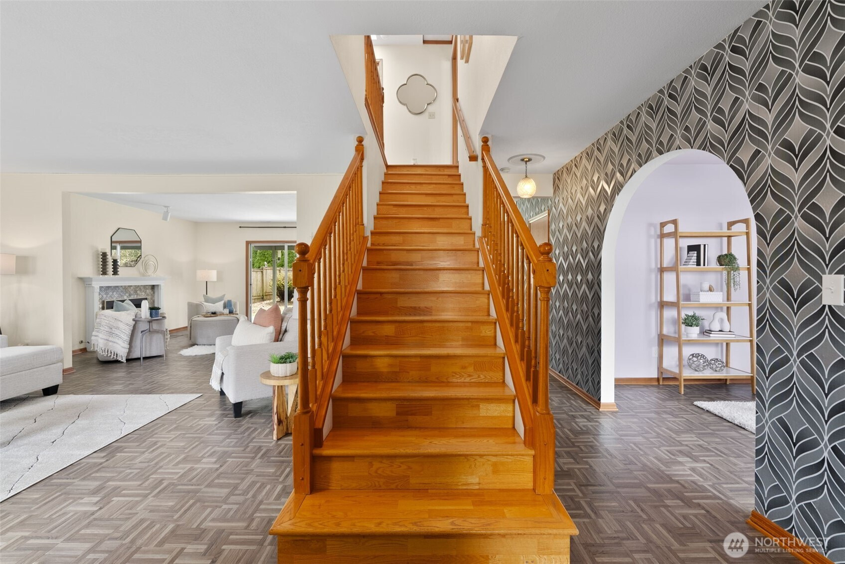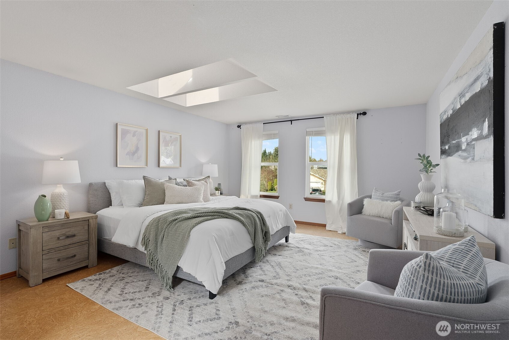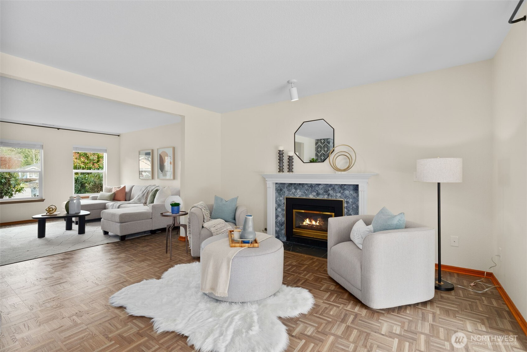 You'll love this Fircrest home in the coveted University Place School District! Situated on a private cul-de-sac, this contemporary home, built in 1990, has been lovingly updated. This includes very recent replacement of most front windows, which adds to the curb appeal of this Colonial-influenced home with charming masonry accents. The completely level property features a fully-fenced backyard with ample privacy provided by a beautiful living wall of arborvitae. Play yard games in this sizeable green space while you BBQ under the covered back patio. Inside, you enjoy the ultra-durable parquet LVP flooring throughout the main level, and the recently updated kitchen with new cabinetry, slab countertops, and high quality appliances. The main level offers an ideal flow between rooms with an open-concept kitchen-dining-living area and a spacious formal living room at the front of the house. And, the main level office provides the perfect space to work from home or use as a flexible area for any of your needs. The solid oak staircase and upstairs hallway lead you to the four bedrooms. In the spacious primary suite, you'll appreciate the skylights flooding the space with natural light and the updated en suite bathroom, which features a large tiled soaking tub and walk-in closet. The three other upstairs bedrooms vary in size and share a full bathroom. This welcoming property offers much to love, including the oversized, two-car attached garage. Don't wait to tour this special home!
