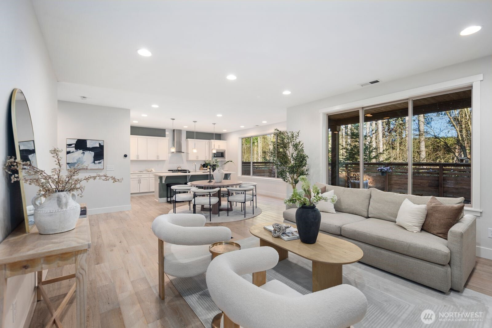 [Better than new] Built in 2020 and thoughtfully designed for modern living, this 4 bed, 3 bath home offers 2,532 sq ft of functional, inviting space in the highly sought-after Tehaleh community. The open-concept main level is perfect for both everyday living and entertaining, featuring a seamless great room that flows effortlessly to covered outdoor living with a cozy gas fireplace. The chef’s kitchen anchors the space, overlooking the dining and living areas for a true gathering hub. Tons of natural light get flooded into this home! A main-level bedroom with a full bath nearby offers ideal flexibility for guests, multi-gen living, or a private office. Upstairs, a spacious primary suite is complemented by additional bedrooms and a versatile bonus loft. Step outside to a beautifully remodeled backyard featuring mature landscaping, low-maintenance turf, and an extensive garden designed for year-round beauty. Perfectly positioned, this home enjoys rare privacy with a trail running alongside the property instead of a neighboring home, offering both added seclusion and direct access to Tahaleh’s expansive trail system. Backing to a serene greenbelt, the setting creates a peaceful, nature-filled backdrop while still being just minutes from parks, amenities, and everything the community has to offer. Great home, great schools, and great location.