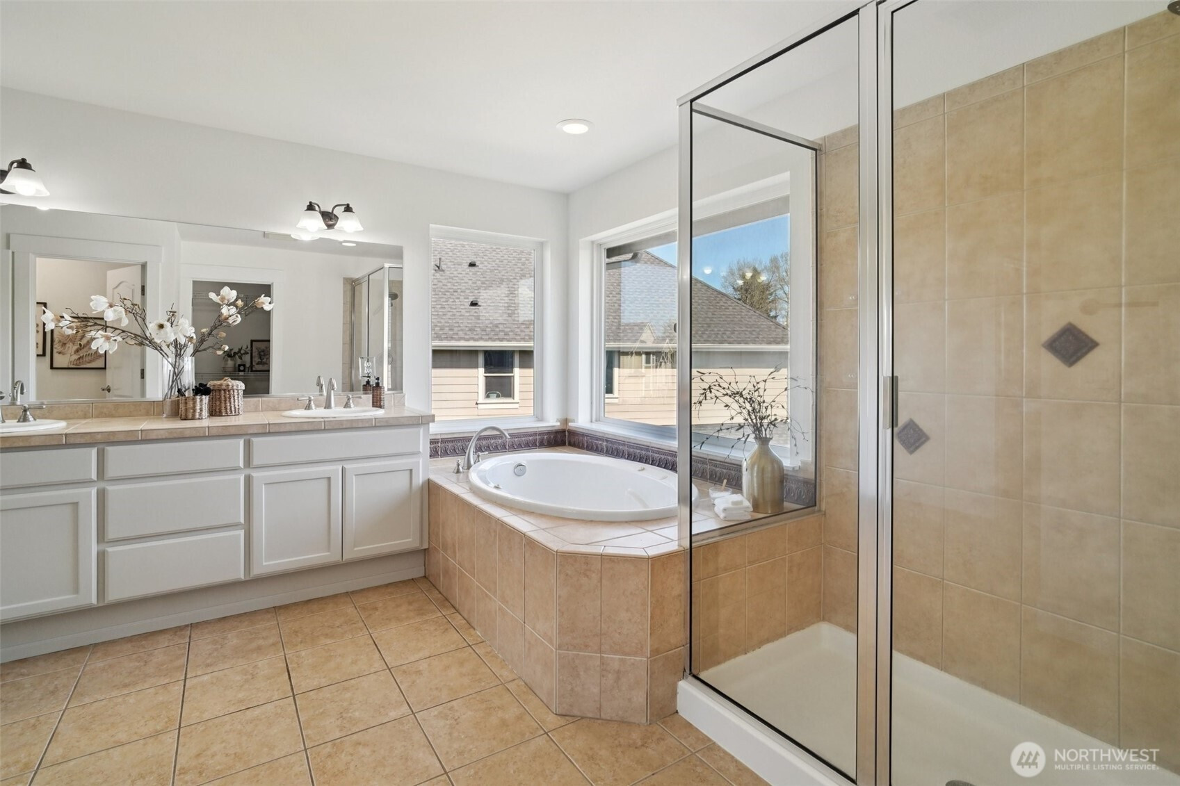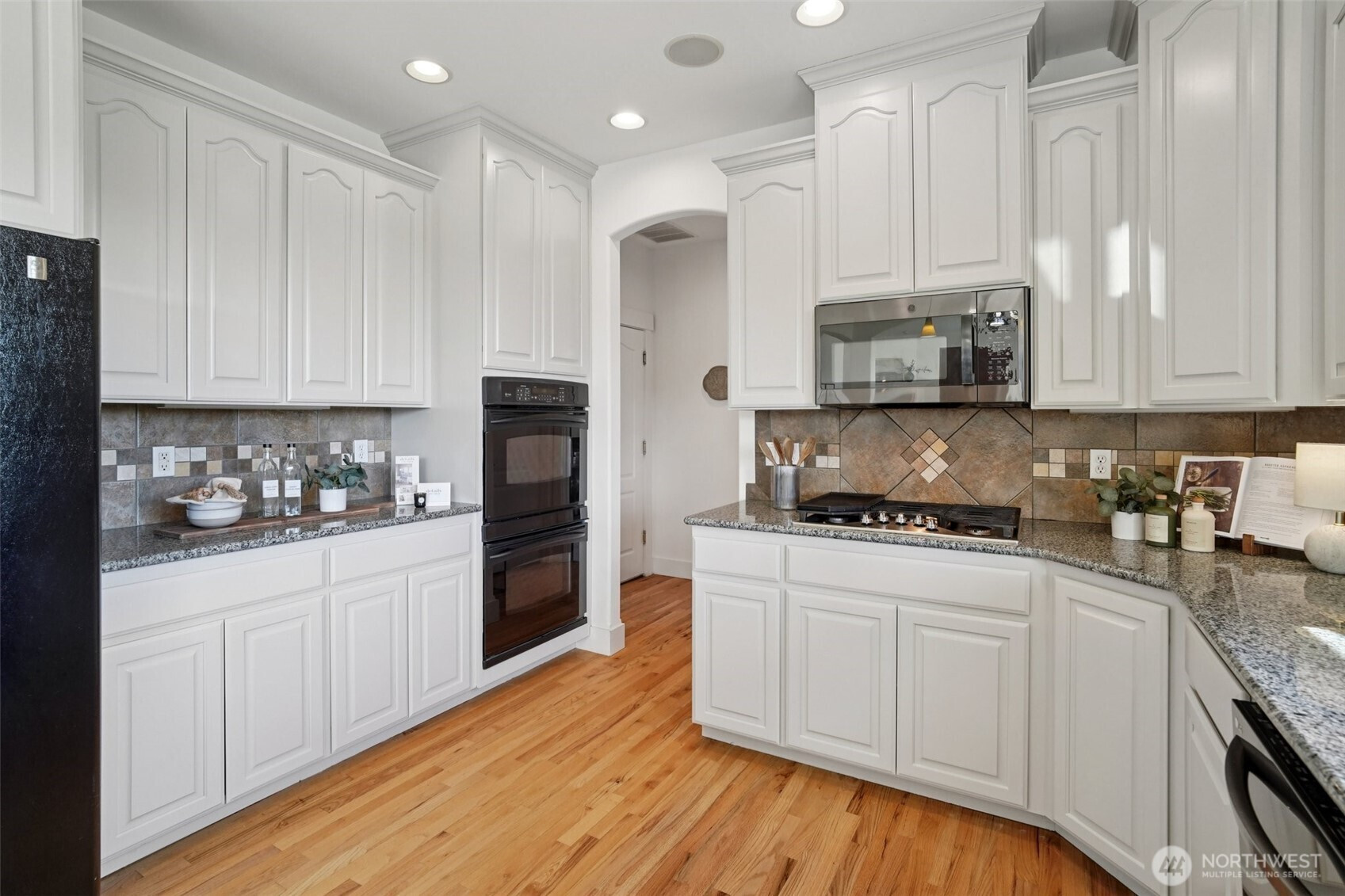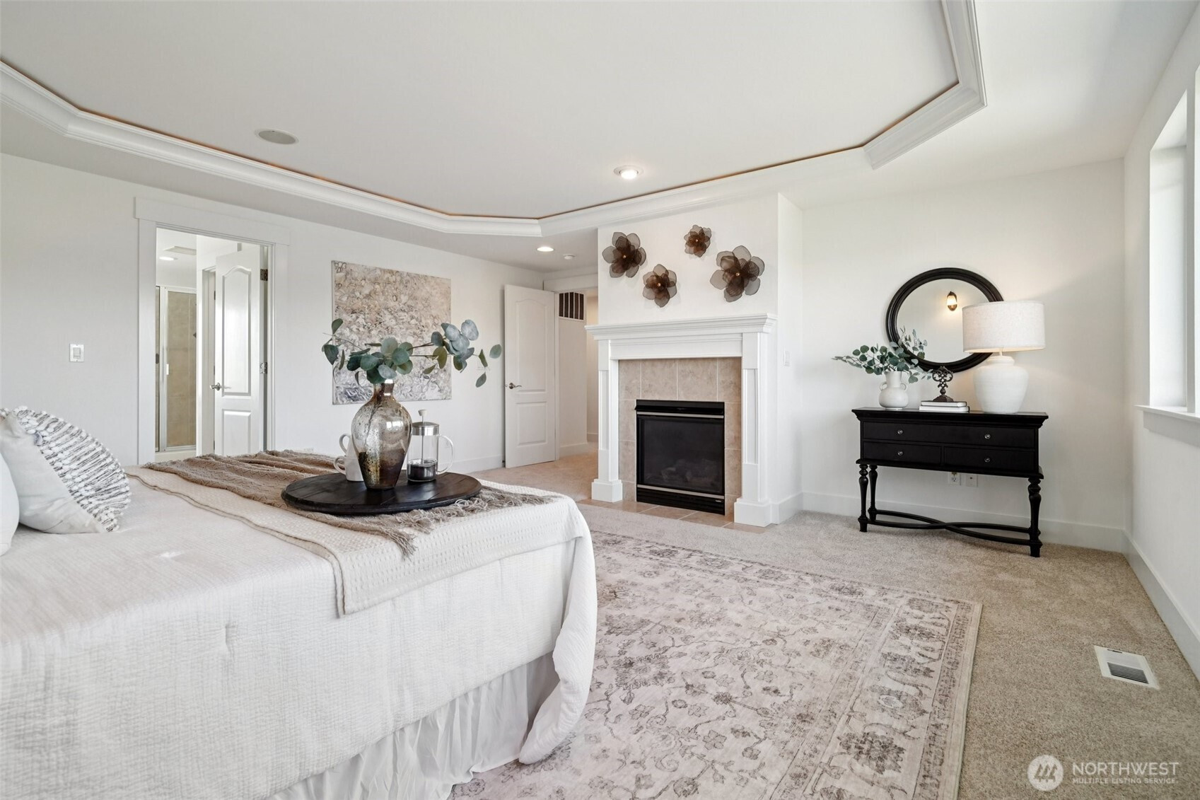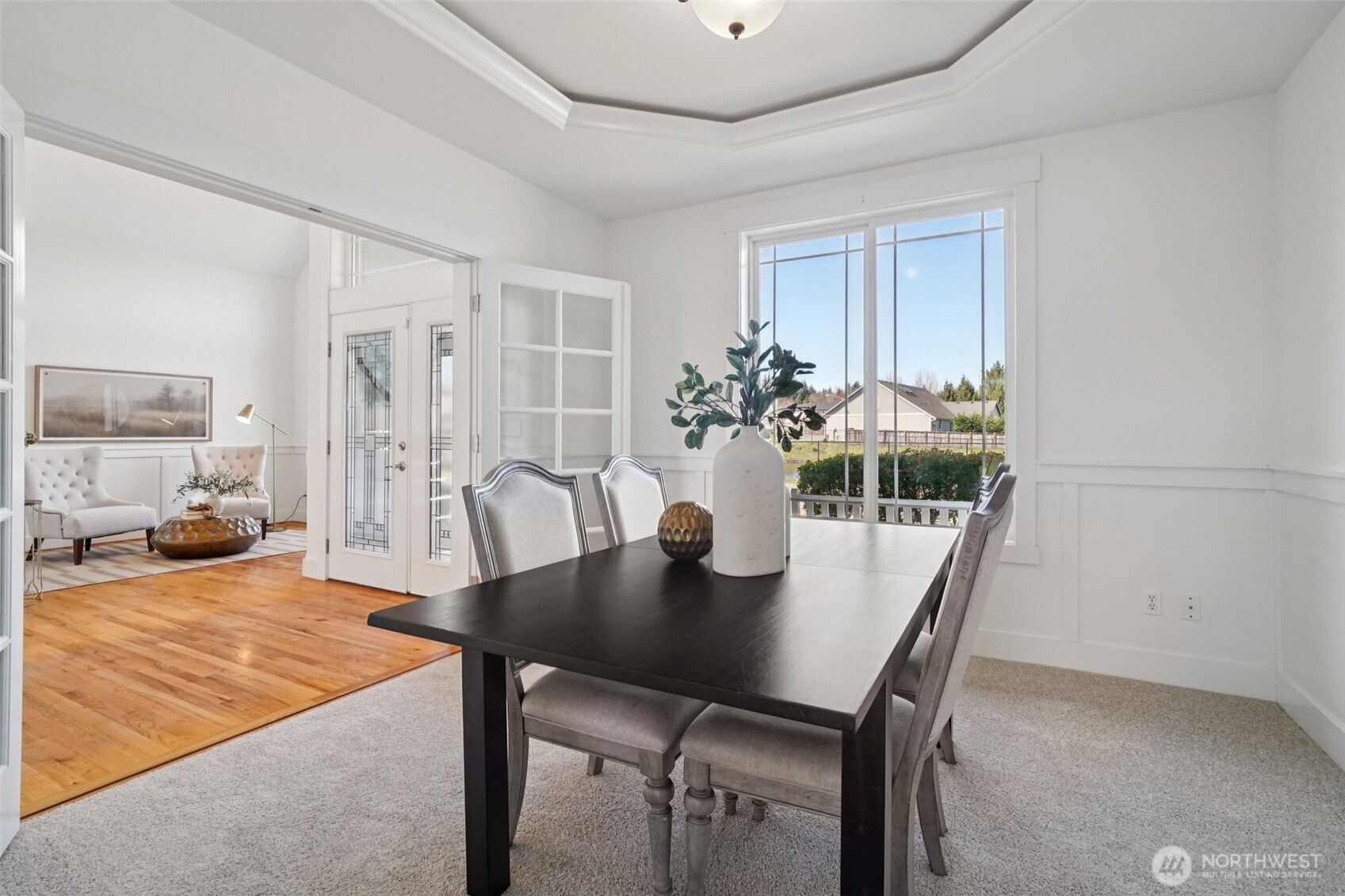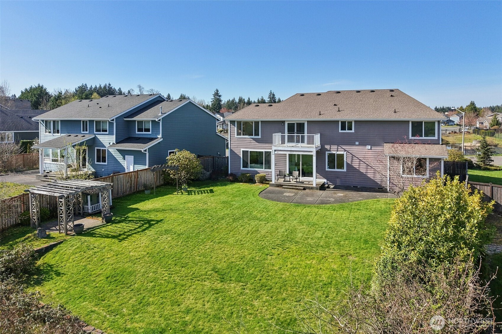 Majestic home with artistic glass doors opens to bright living spaces featuring hardwood floors, vaulted ceilings, fireplace, and coved windows. Formal dining room with French doors and statement ceiling flows into a butler’s pantry and refreshed chef’s kitchen with granite countertops, tile backsplash, and ample cabinetry. Main floor includes a parlor, formal dining room, living room, breakfast nook, kitchen, pantry and large office. Upstairs offers 5 spacious bedrooms and 2 full baths. The primary suite features a fireplace, recessed ceiling, scenic views, and a private ensuite with soaking tub, glass shower, and double vanity. Enjoy a sunny deck overlooking a large backyard with mountain views, plus a covered patio for year-round use. Complete with a 3-car garage in a great neighborhood.