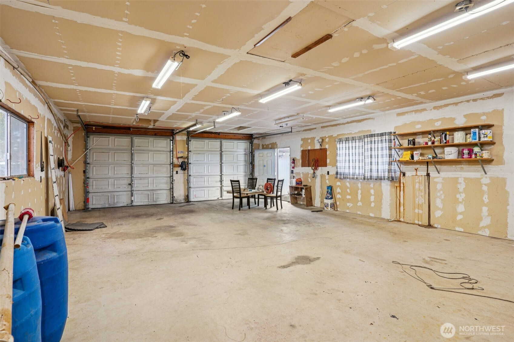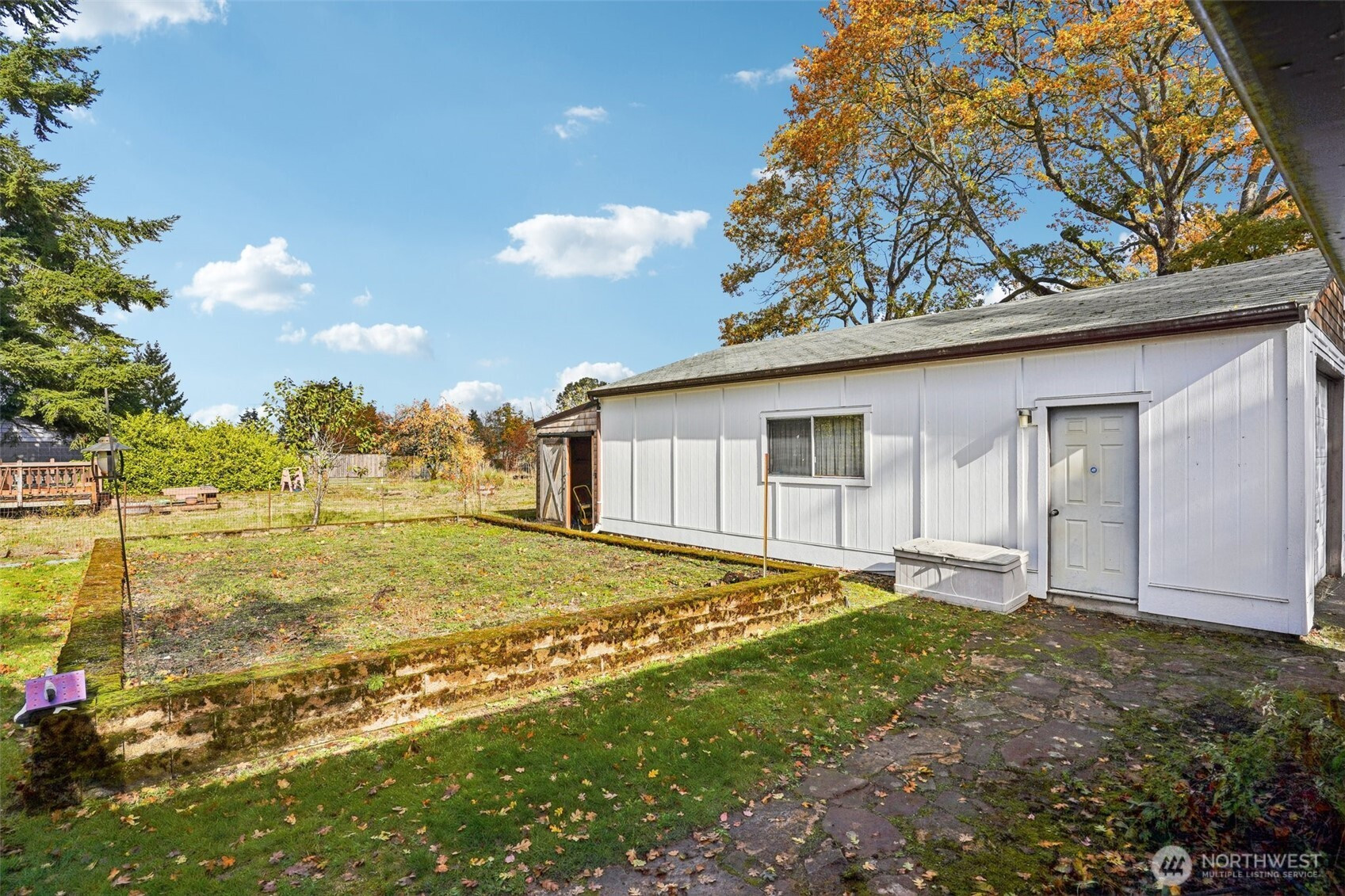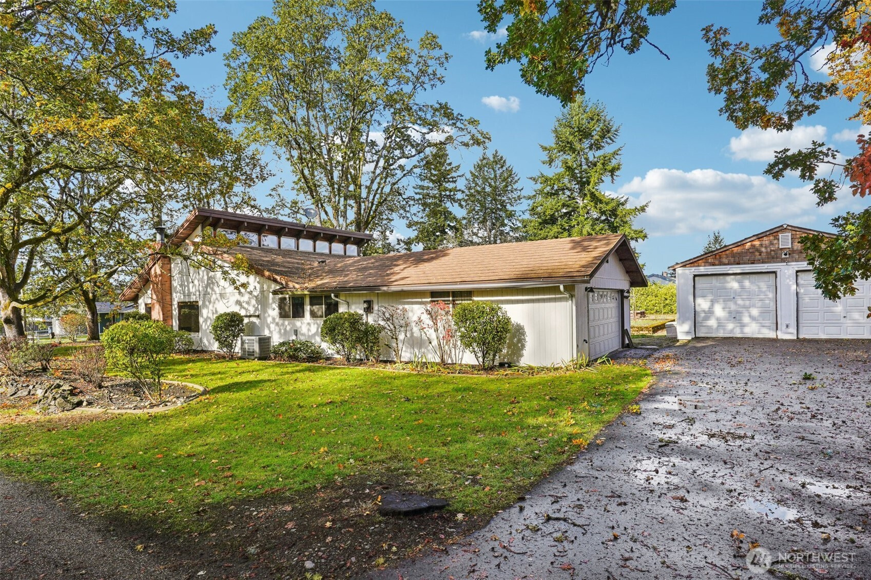 Fabulous Spacious Mid-Century Modern Open Concept Home! Custom Built emphasis on clean lines and user friendly spaces. Vaulted ceiling, skylights, built in vacuum system, fully equipped kitchen (all appliances and W/D stay) tons of cabinet space. Security System in place. Warmed by heat pump and pellet stove. Attached oversize garage, detached shop, storage shed, and garden beds on 15,000 sq. ft. corner lot! Private and Quiet! Move in ready for you and your possessions. Newer 50 year roof 2014. Close to JBLM, Schools, Universities,PLU, parks and shopping.Add your special touches and enjoy the coming Winter!
