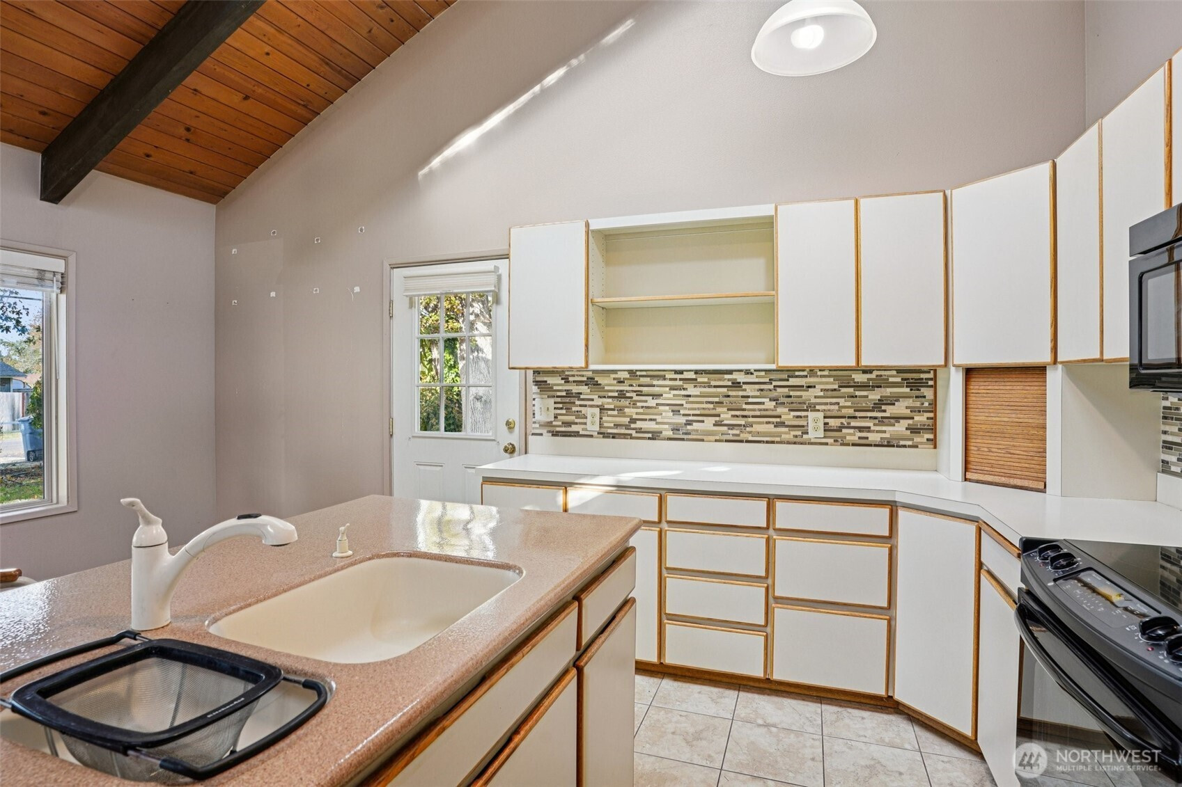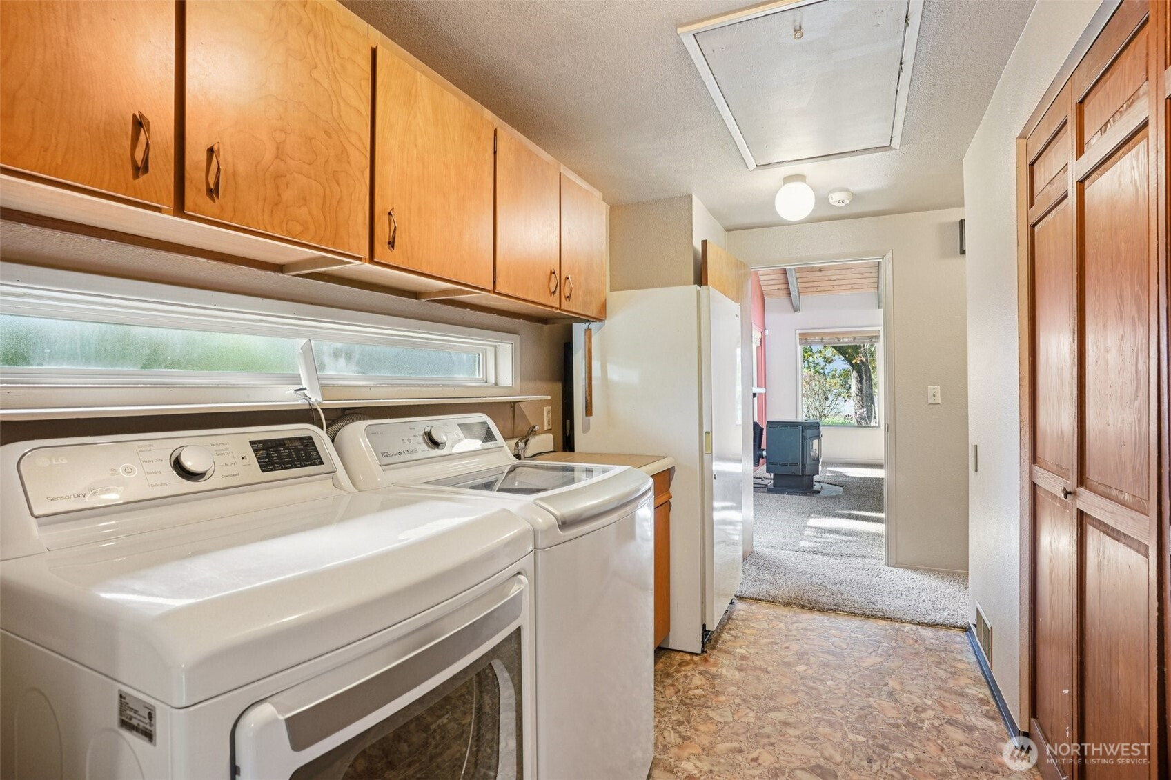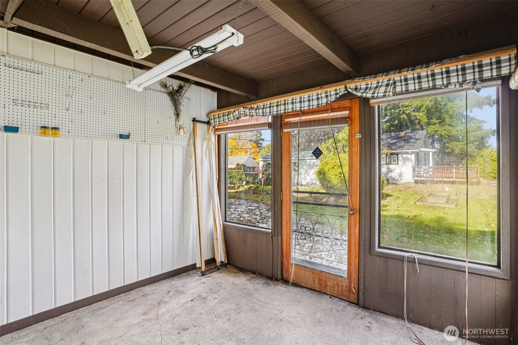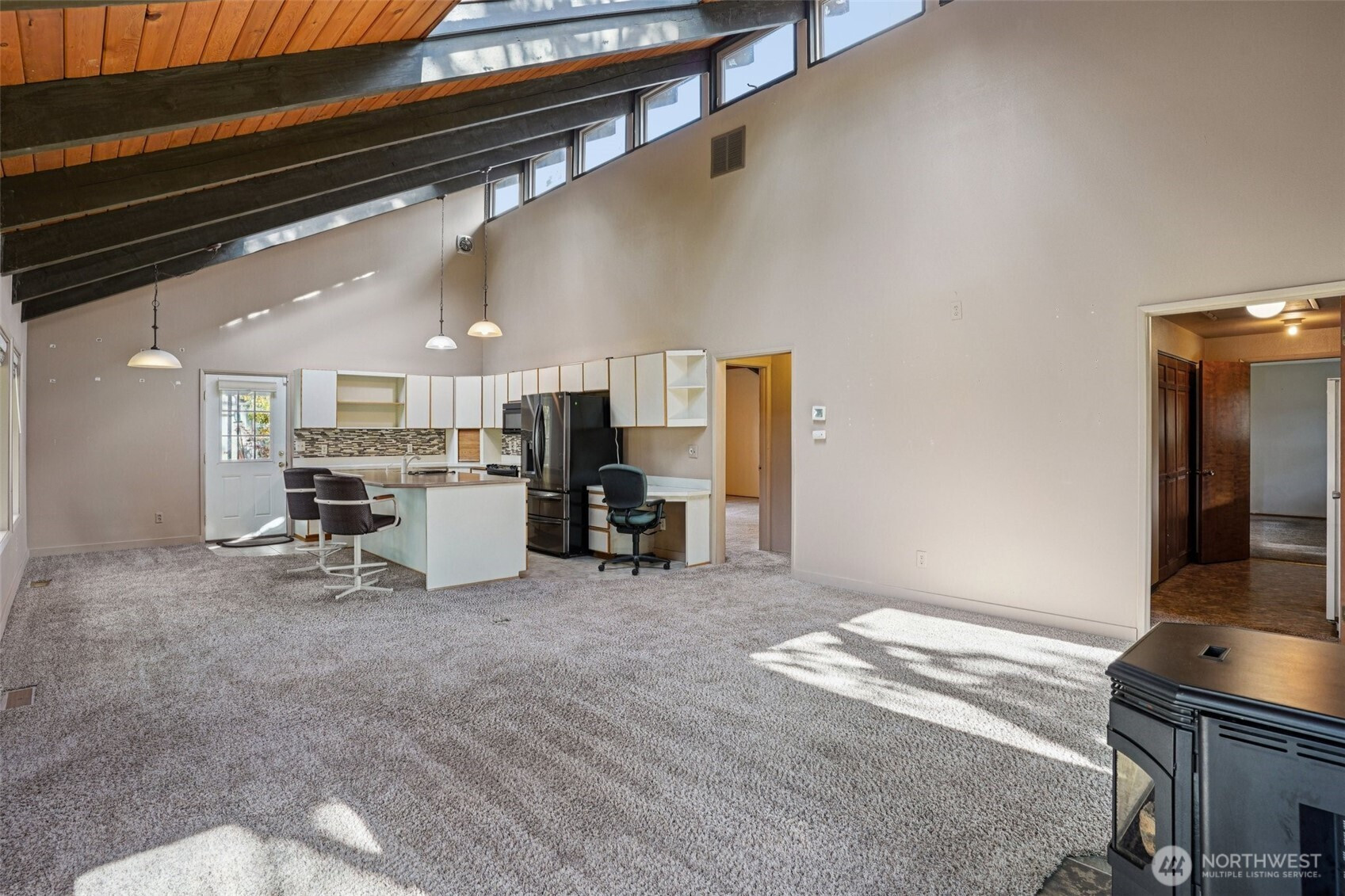 Fabulous Spacious Mid-Century Modern Open Concept Home! Custom Built emphasis on clean lines and user friendly spaces. Vaulted ceiling, skylights, built in vacuum system, fully equipped kitchen (all appliances and W/D stay) tons of cabinet space. Security System in place. Warmed by heat pump and pellet stove. Attached oversize garage, detached shop, storage shed, and garden beds on 15,000 sq. ft. corner lot! Private and Quiet! Move in ready for you and your possessions. Newer 50 year roof 2014. Close to JBLM, Schools, Universities,PLU, parks and shopping.Add your special touches and enjoy the coming Winter!