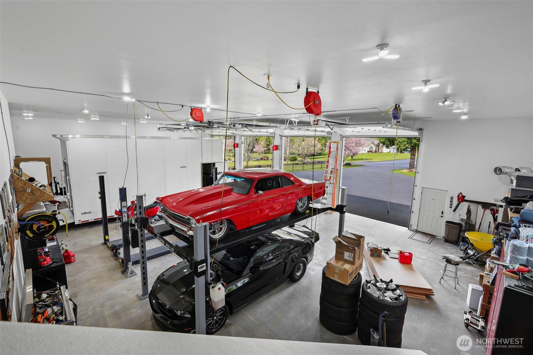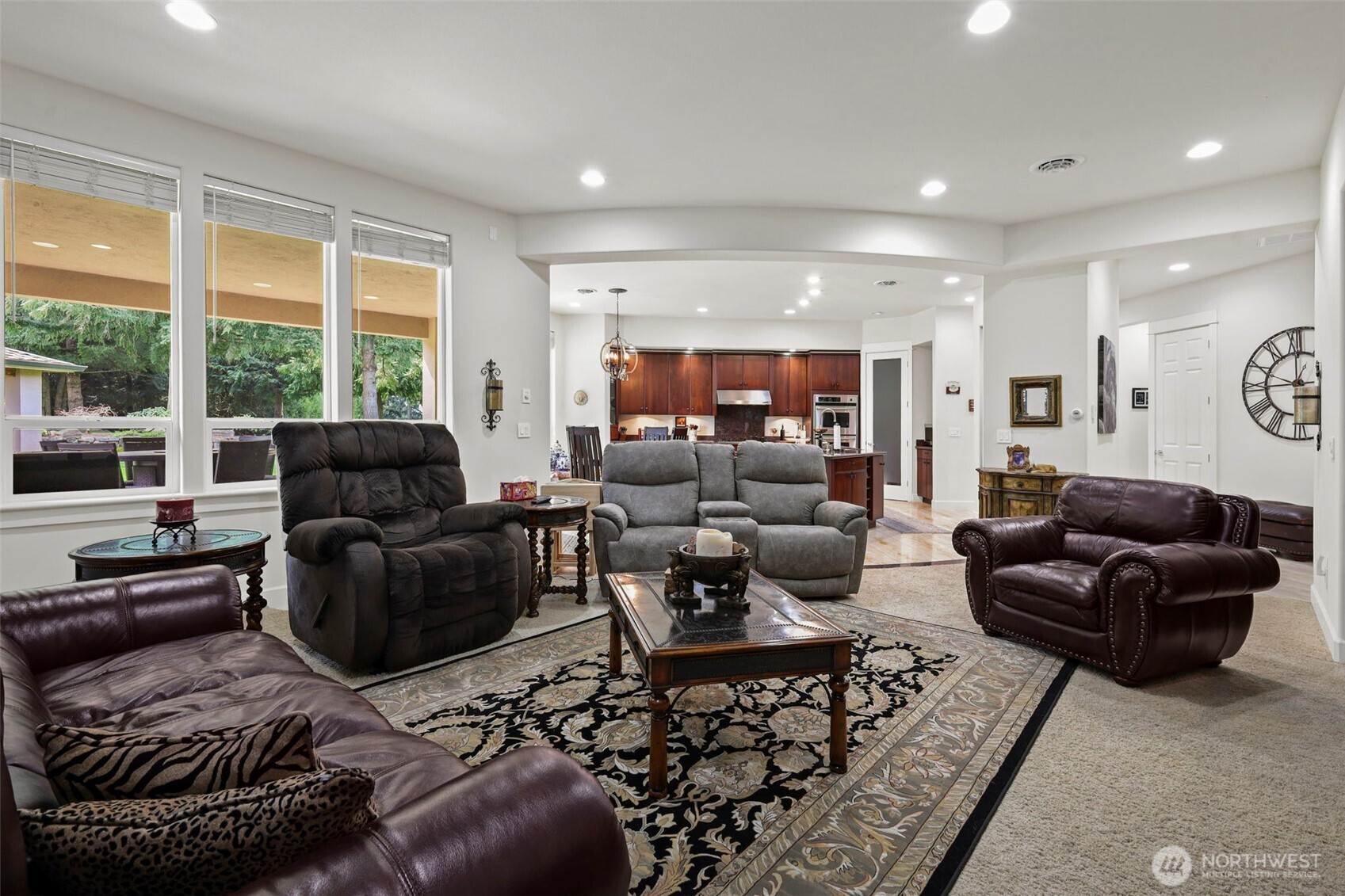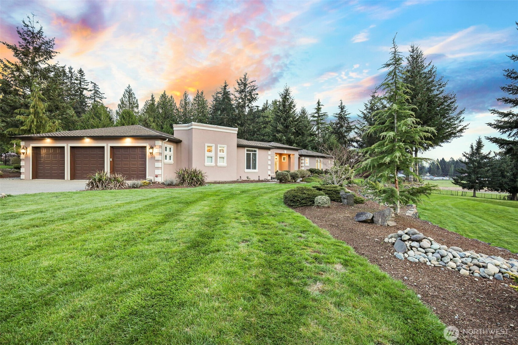 Stunning custom-built rambler on 2+ flat, dry acres showcasing quality craftsmanship and thoughtful design throughout. Gourmet kitchen features custom cherry cabinets, travertine tile, granite countertops, large island, ample storage & SS appliances, opening to a spacious great room ideal for everyday living & entertaining. Abundance of oversized windows fills the home with natural light while highlighting extensive architectural detail. Luxurious primary suite offers elegant double door entry, dual walk-in closets, tiled walk-in shower w/dual shower heads & jetted soaking tub. Generous living spaces provide flexibility for guests, office or hobbies. Enjoy the picturesque outdoor setting with lush, manicured landscaping, full-length covered patio, outdoor covered BBQ area with pizza oven & tranquil water feature, all perfect for year-round enjoyment. Attached 3-car garage w/ workshop. Property also boasts an impressive 72x50 shop w/ 4 12x14 roll-up doors for easy inside RV storage with soaring 16’ ceilings, polished floors, fully finished and insulated, 110V & 220V power with full HVAC system providing heat & A/C. Shop also includes 8x32 loft for additional storage or workspace. Room for 14+ vehicles! Plenty of room for toys & additional RV w/ a very large, paved area in front of the newly built shop for equipment or potential home-based business. A rare opportunity combining comfort, functionality & versatility. On a dead-end road, in a private gated community...a must see!