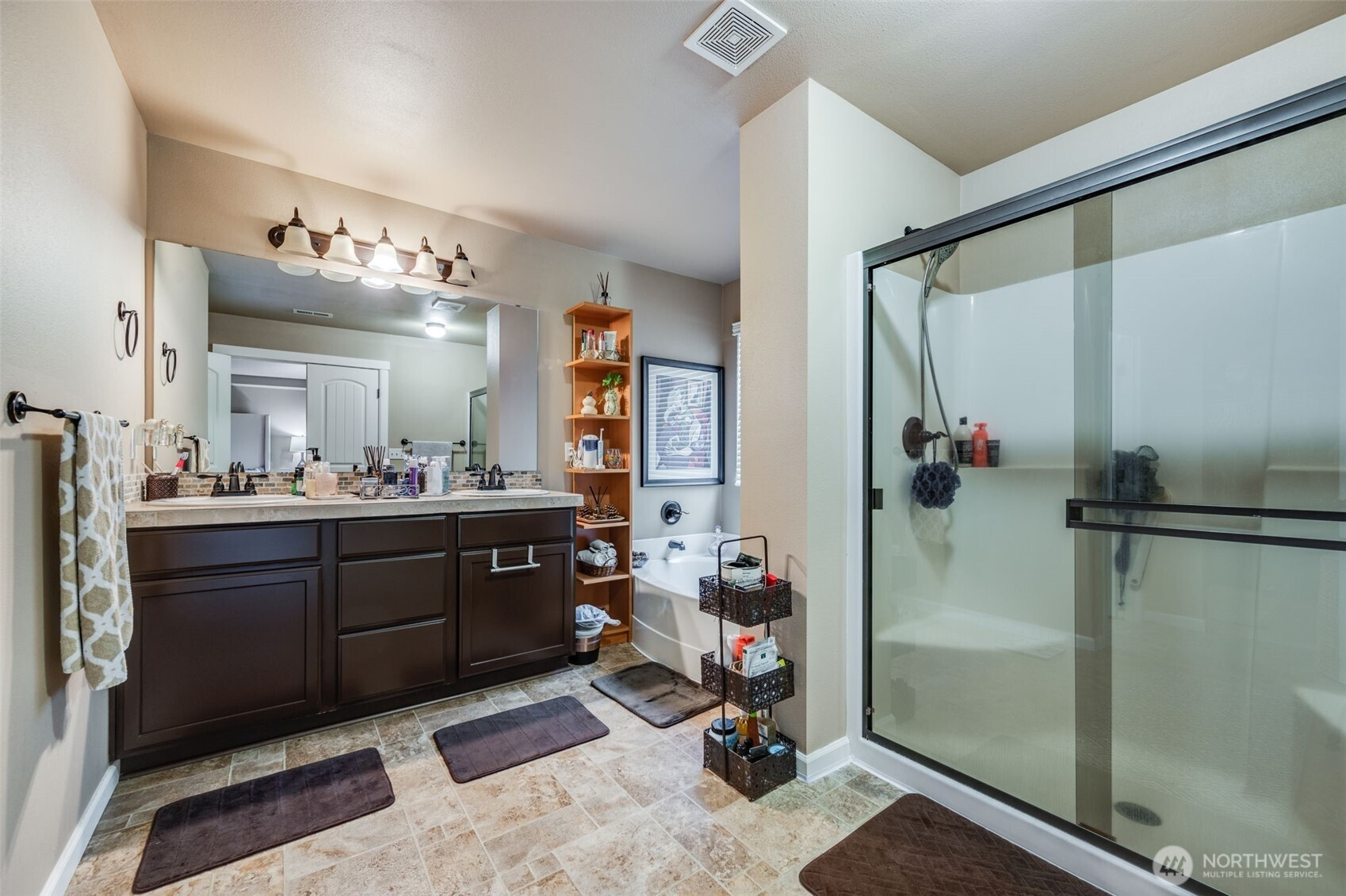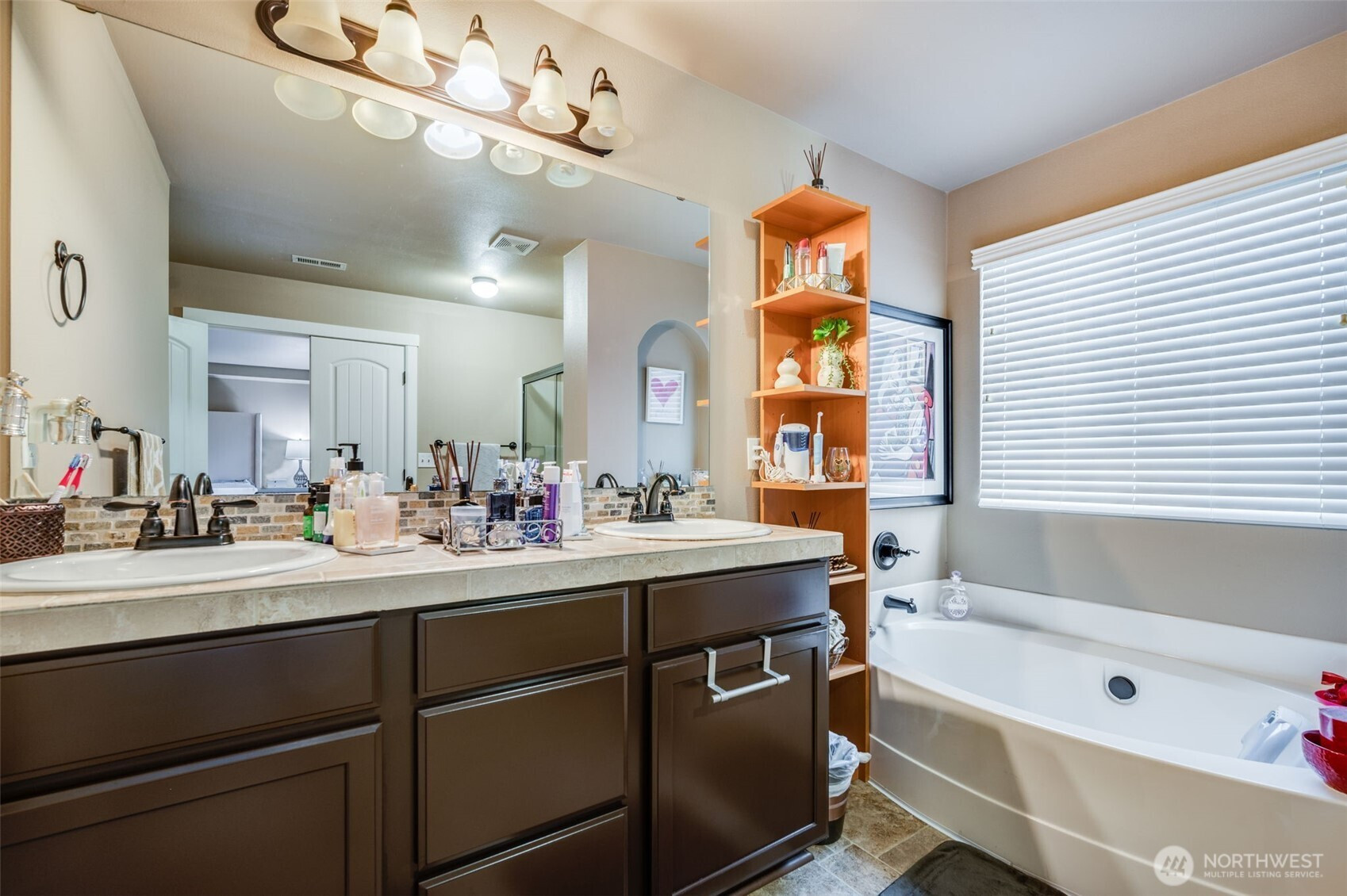 Welcome home to the gated community of Lancastle Estates! This spacious 5-bed 3-bath residence offers an exceptional blend of luxury and comfort. The heart of the home is the thoughtfully designed kitchen featuring granite countertops, a convenient breakfast bar, and a full suite of modern stainless-steel appliances perfect for entertaining. The inviting living room is highlighted by a cozy gas fireplace. Retreat through the classic french doors to the luxurious primary suite, an oasis of relaxation complete with jetted soaking tub and a massive walk-in closet. Built with quality in mind, the exterior boasts durable Hardie plank siding and a huge entertainment deck. Don't miss the opportunity to live in this sought-after neighborhood!