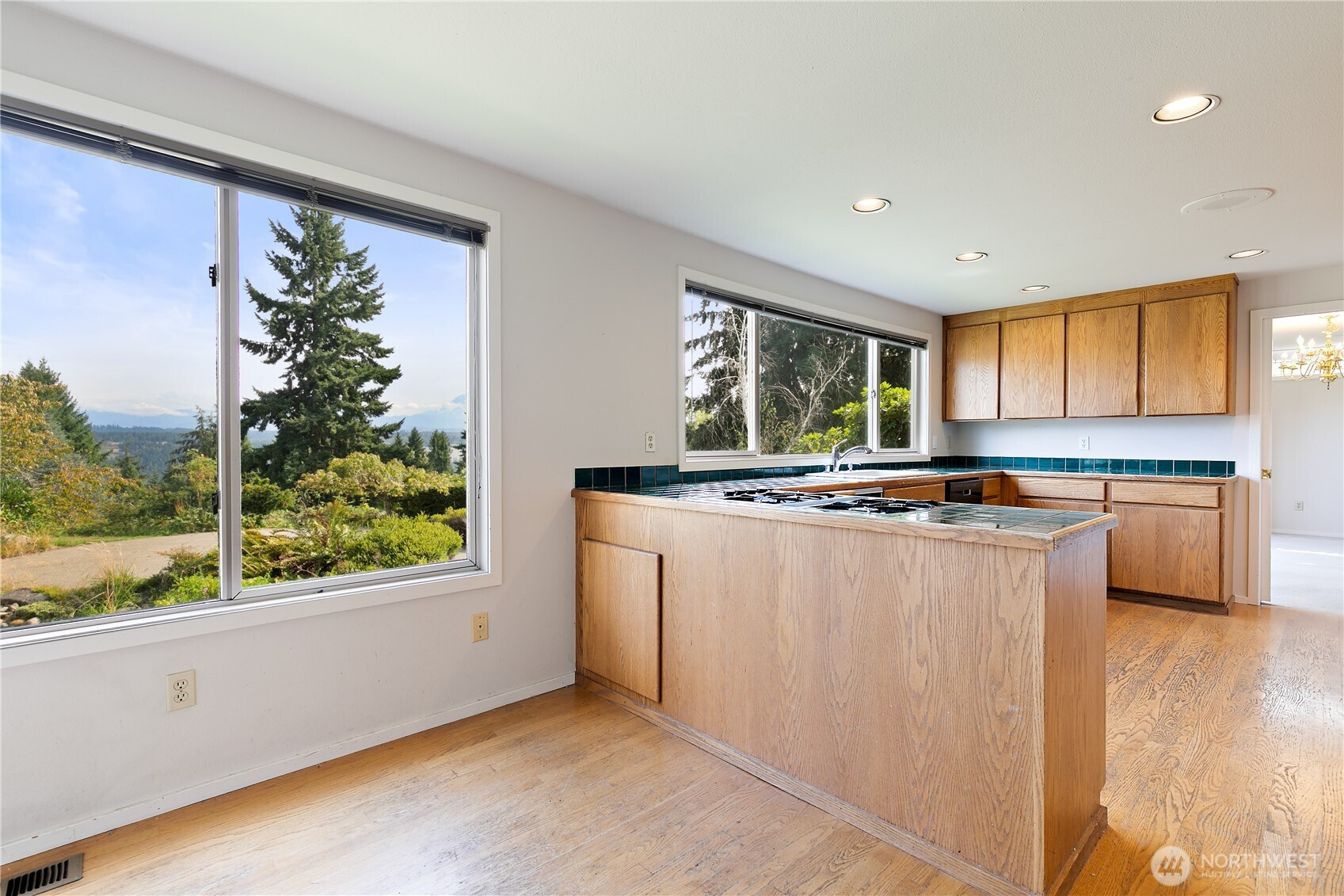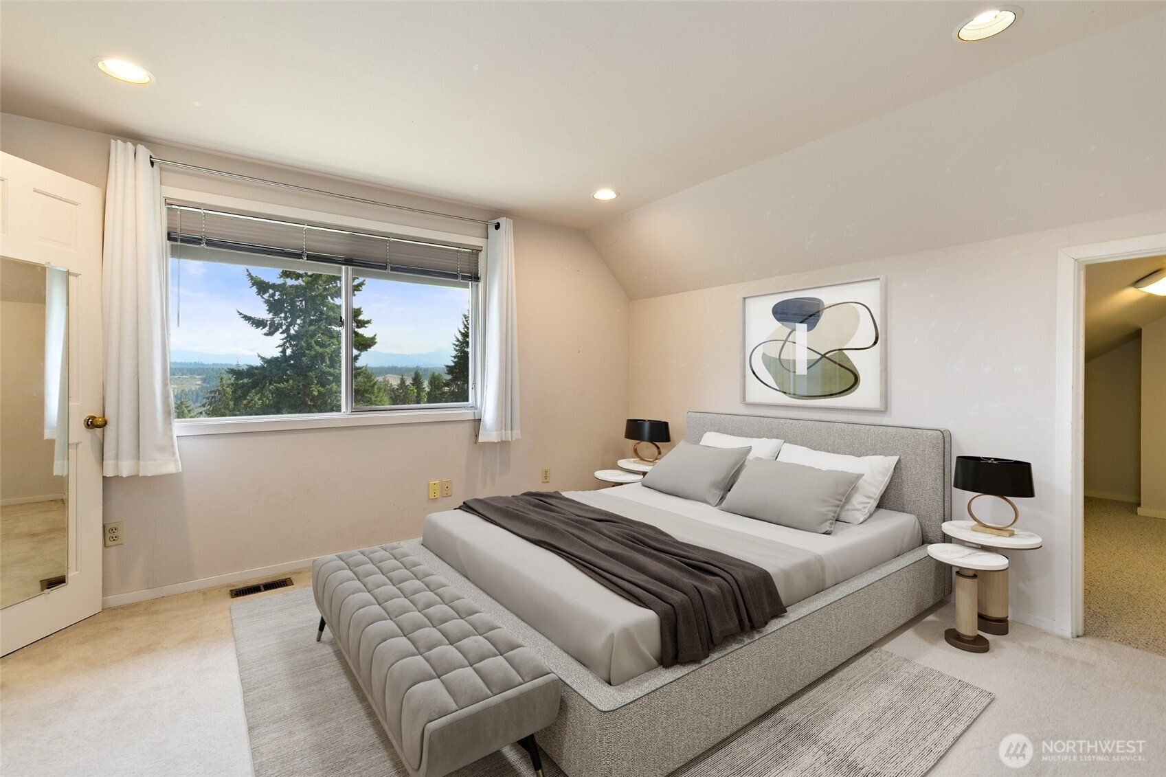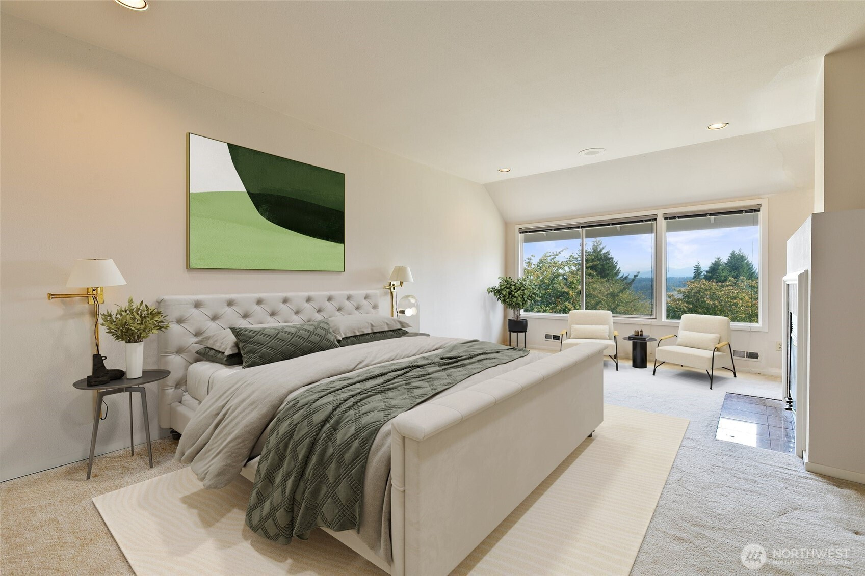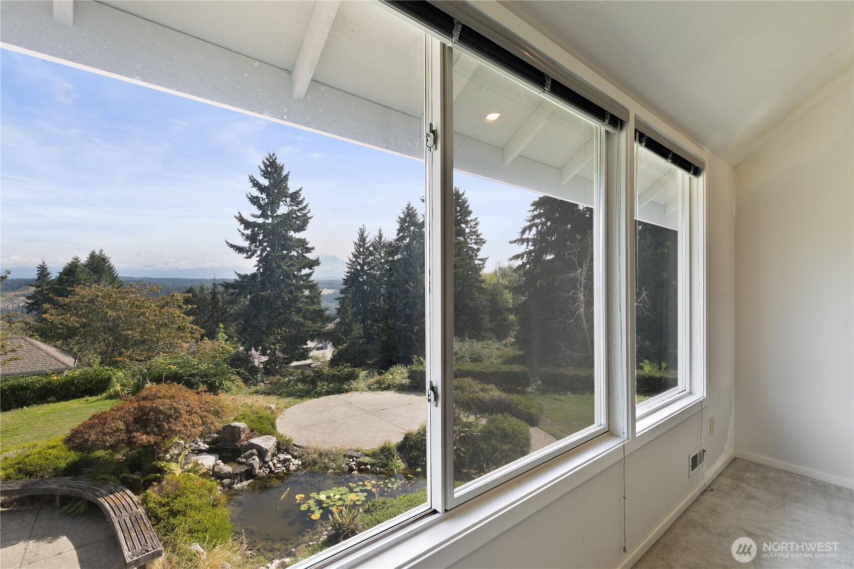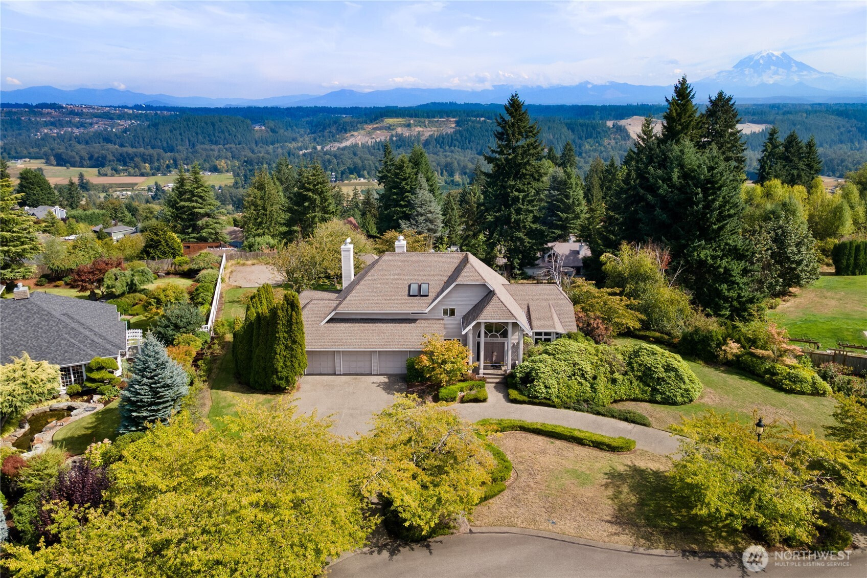 OPPORTUNITY ALERT! Wonderful, light-filled, truly grand home with stunning MTN and valley views on a shy acre in Sunrise View Estates. Beautiful grounds, mature landscaping, concrete edging, circular drive, patios, sparkling pond w/waterfall, sprinkler system front and back, 3-car garage, separate workshop and storage. Huge bonus room on main with its own private entrance, use your imagination! Office with French doors, oak hardwoods, big kitchen w/step-down great room, all appliances stay, spacious dining room. Upstairs: large bedrooms, laundry, primary suite w/fireplace, huge bath, walk-in closets. 50-year PABCO roof, Trane furnace w/heat pump, great storage. Home needs cosmetic updates, the potential is enormous, don’t miss this one!