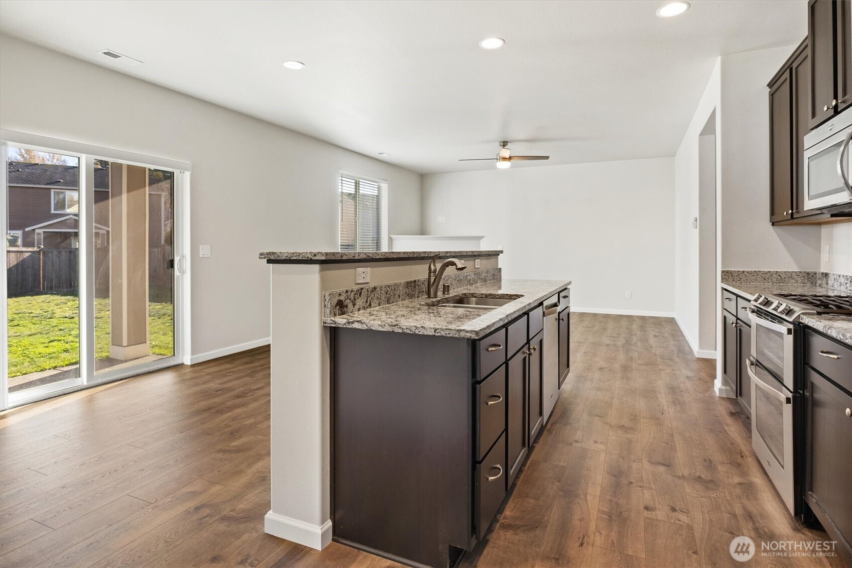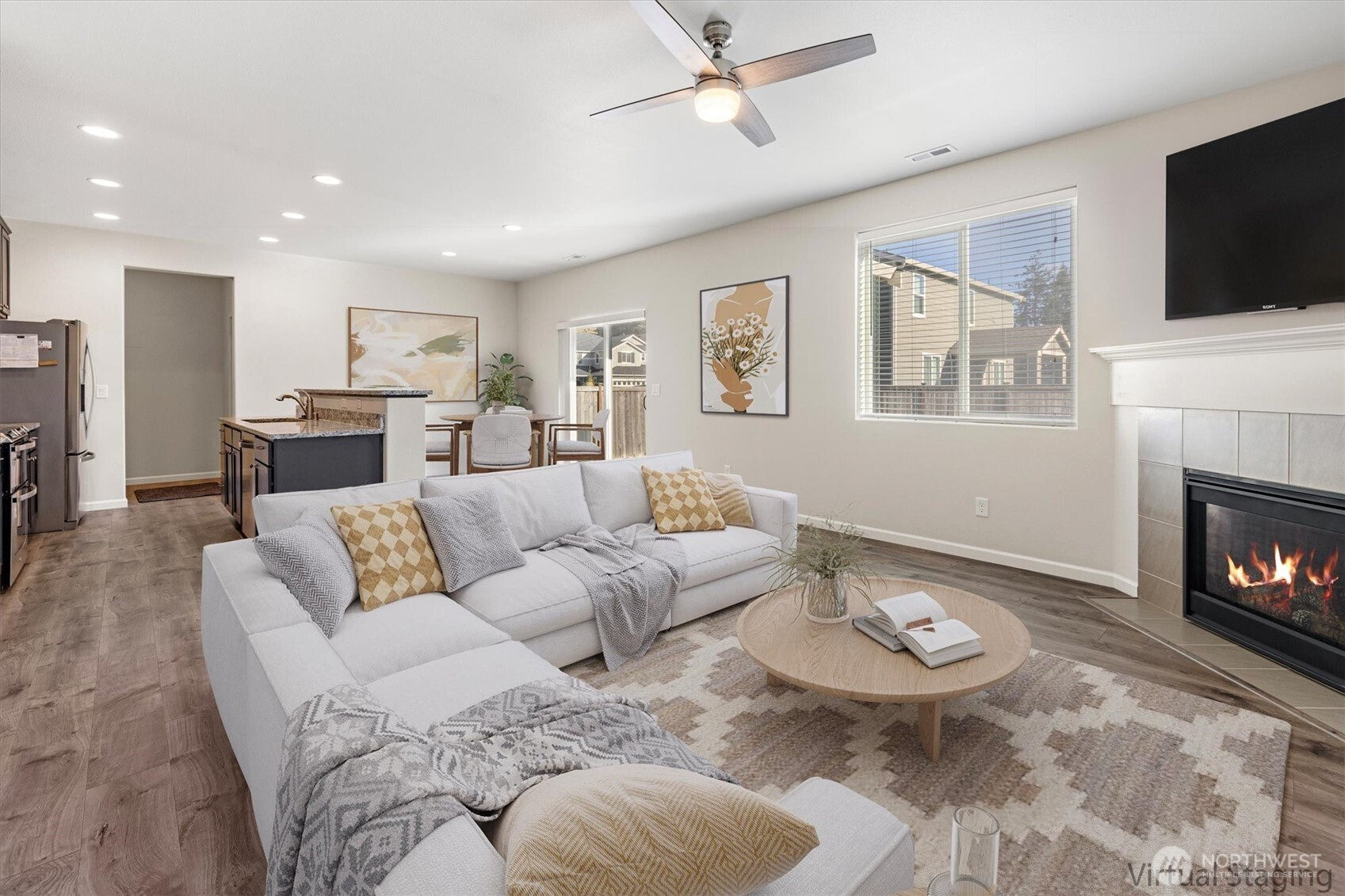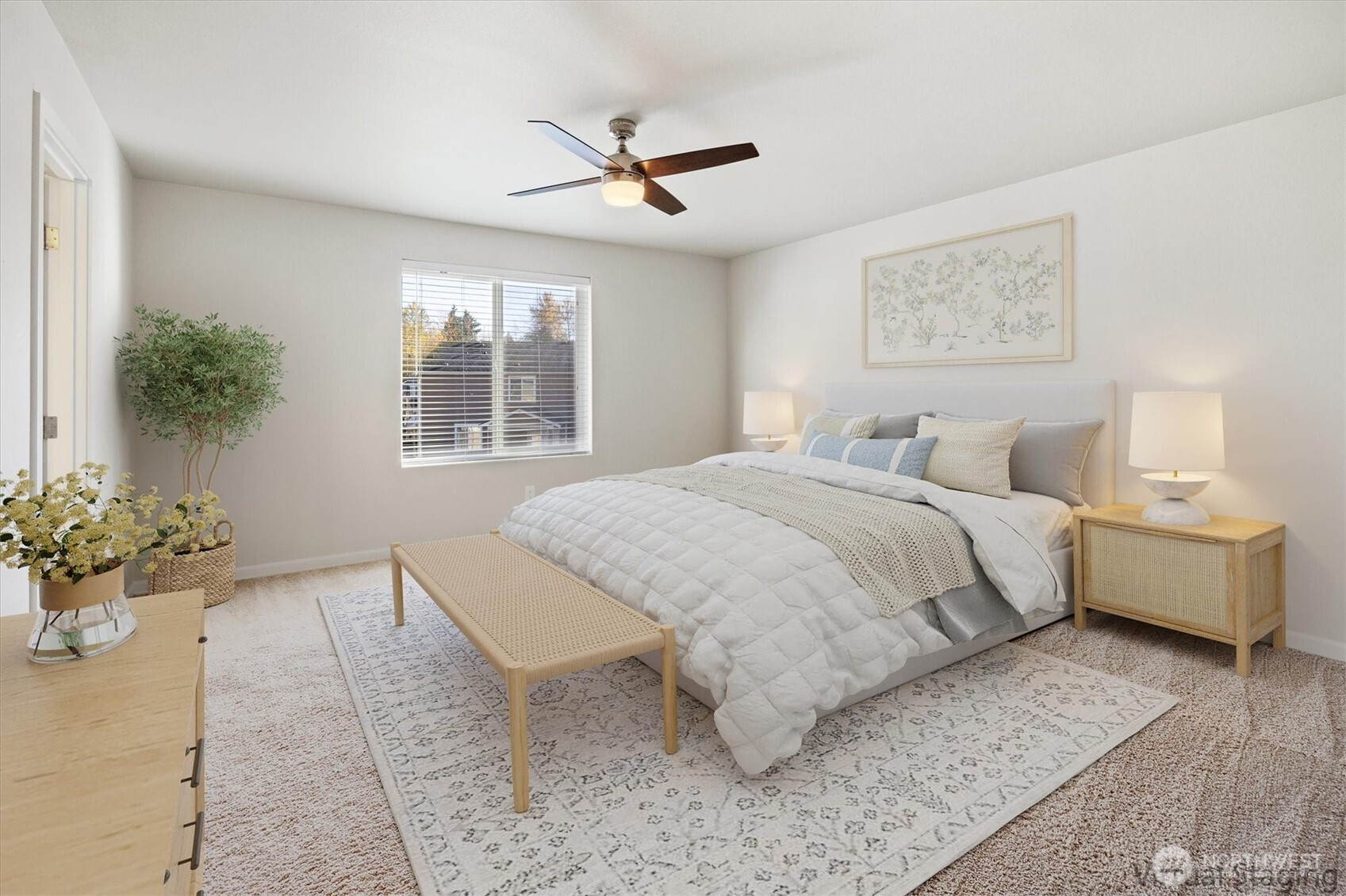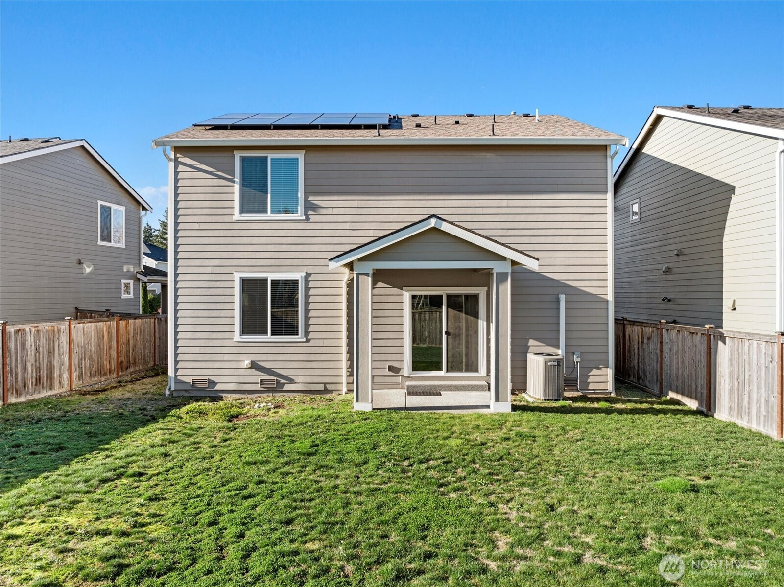 Thoughtfully designed and move-in ready, this 3-bedroom, 2.5-bath home offers comfort, style, and energy savings with AC and solar panels. The bright kitchen features granite countertops, gorgeous cabinetry, and an oversized pantry perfect for cooking and entertaining. The spacious primary suite boasts a large walk-in closet, while the attached 2-car garage adds convenience. Step outside to a fully fenced backyard with a covered patio, ideal for year-round gatherings. Located in a terrific neighborhood, just minutes from Costco, Amazon, Boeing, shopping, dining and much more! This home truly combines modern amenities with an unbeatable location!