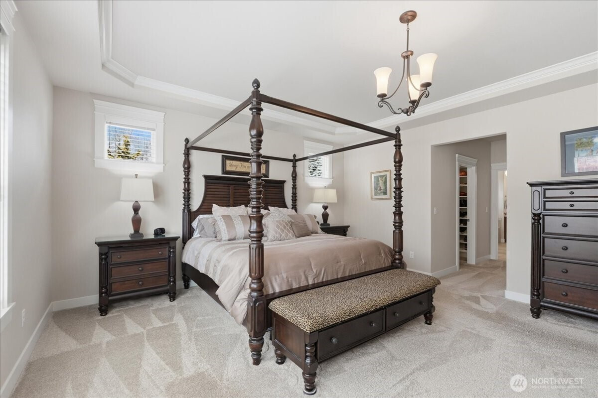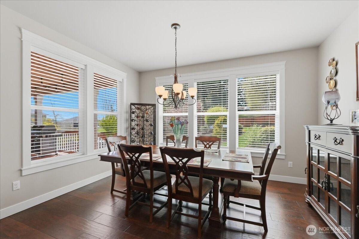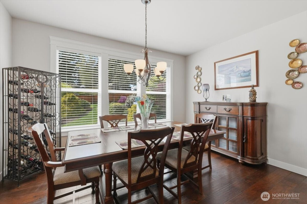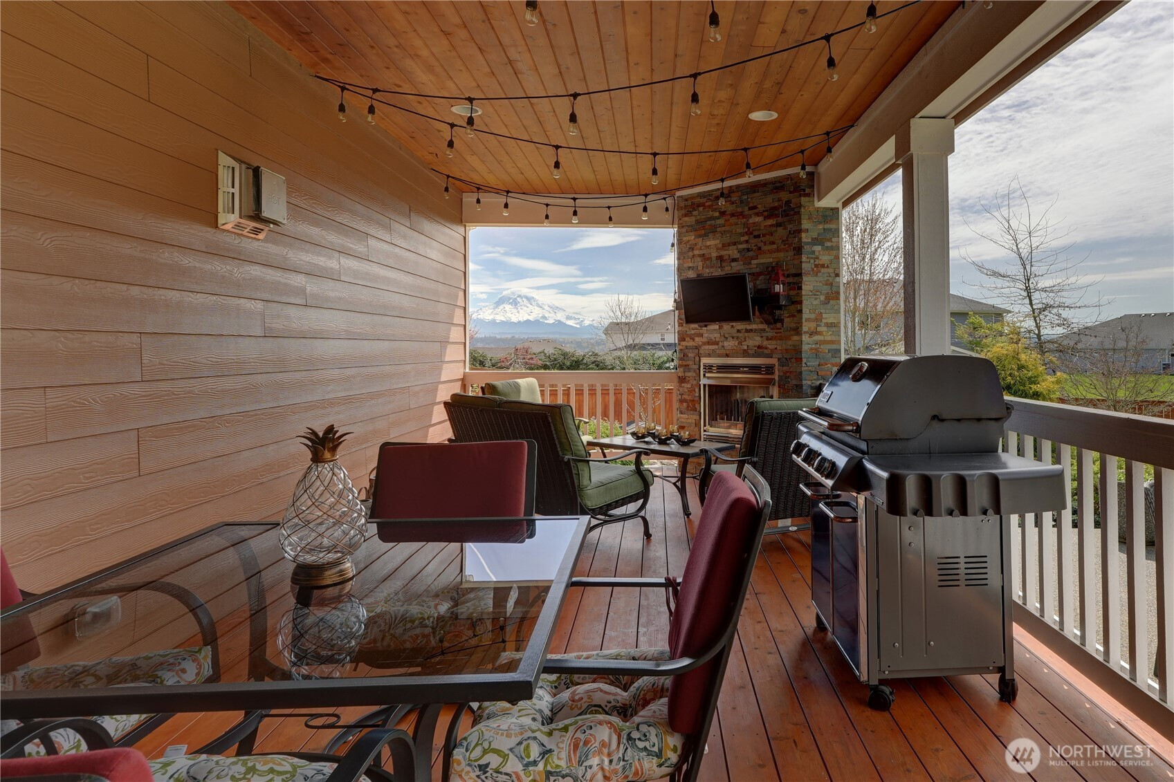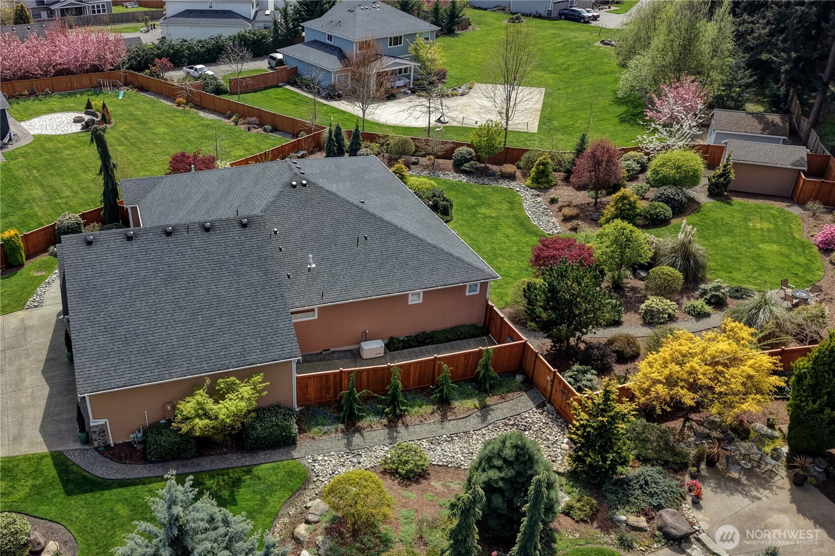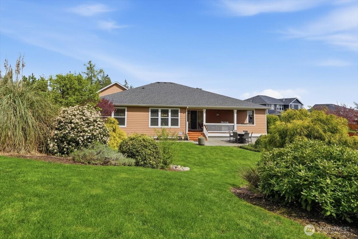 An exceptional offering in Puyallup’s coveted Shawnee Ridge, this luxury rambler pairs refined design with breathtaking mountain views on an expansive, 1/2 acre lot. Meticulously maintained, the home features 3 bedrooms, 3 baths ( 1 full, 1 3/4 & 1 powder), and a private den, with a thoughtfully designed layout that blends comfort and sophistication. The great room is anchored by a slate-surround gas fireplace & a wall of custom built-ins, creating an inviting yet elevated living space. The chef’s kitchen showcases engineered hardwoods that flow to the dining area, granite countertops, full tile backsplash, double ovens, a wine refrigerator, & custom soft close cabinetry with pull-outs. Throughout the home, generous storage solutions—including custom closets and built-ins—offer both beauty and functionality. The secluded primary suite provides a true retreat, complete with a spacious custom closet and a luxurious soaking tub. Outdoors, the fully fenced, park-like grounds impress with a covered deck featuring a gas fireplace, perfectly positioned to capture stunning mountain views, along with a large garden shed. Car collectors and hobbyists will appreciate the 1,300 sq ft, 4-bay garage with additional overhead storage. A whole-house automatic transfer generator ensures year-round comfort and peace of mind. Ideally located near Shaw Road for an easy commute and within the Puyallup School District, this is Pacific Northwest living at its finest. Welcome home!