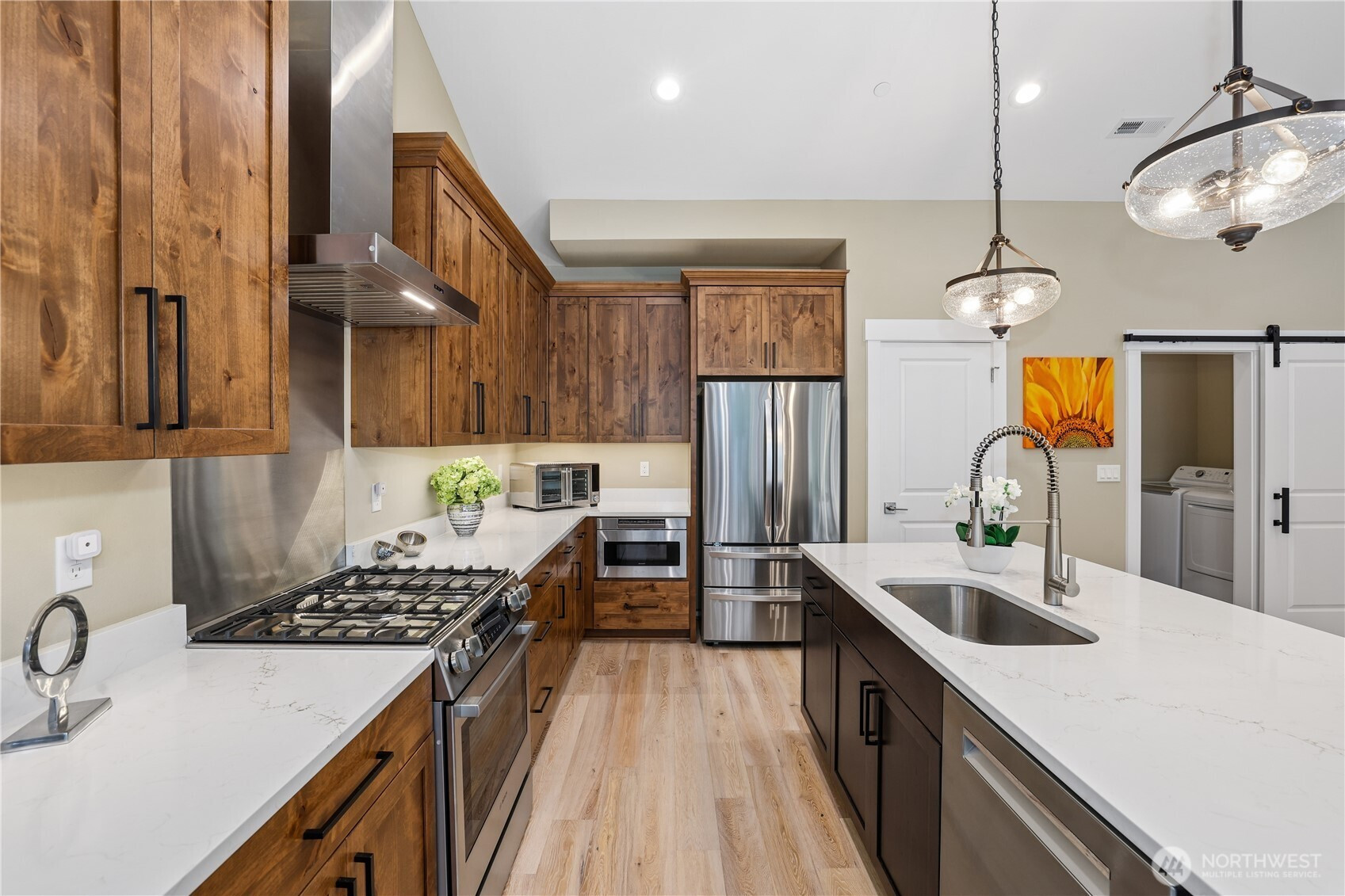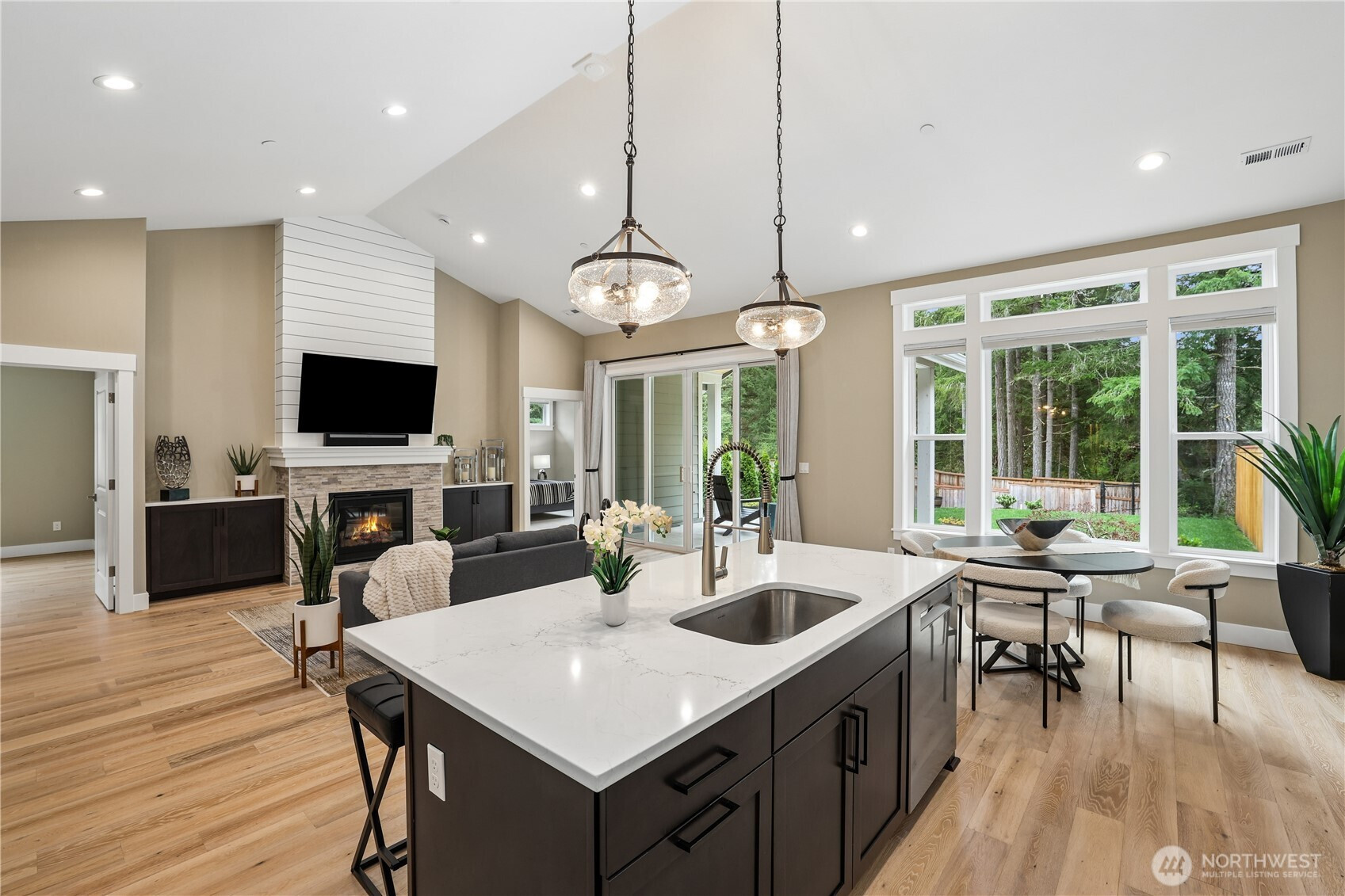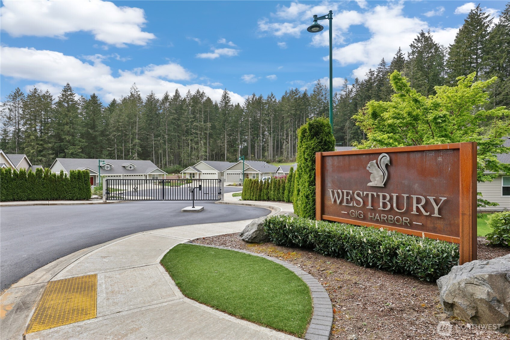 Welcome to Westbury, a gated 55+ community in Gig Harbor. A boutique enclave that features thoughtfully designed zero lot line homes. This beautiful home is individually curated with designer finishes and offers Accessible Living throughout, including a dedicated den, 2 nice bedrooms and wonderful upgraded flooring. The bright vaulted great room showcases a striking fireplace with stone and shiplap surround, complemented by custom built-ins. The spacious kitchen is designed to impress with soft-close cabinetry, designer quartz countertops, high end appliances for enjoyment. The primary suite is a true retreat, dual closets, cozy heated bathroom floors, illuminated mirrors, and a Zero-Entry Shower with a Grohe rain head and integrated grab bars. Enjoy outdoor living with an expanded & covered patio, BBQ hook up and a very private backyard. The insulated, finished garage includes an epoxy floor, an 18’ x 8’ door, and generator wiring for added peace of mind. Community features include street lighting. Prime location from Highway 16 and Key Peninsula Highway, with all the conveniences of Gig Harbor only minutes away. A must see today!